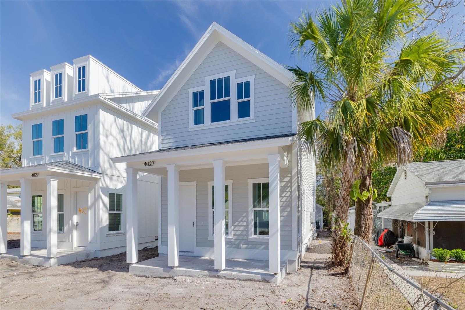 Under Construction. 4027 Haines Road North is a thoughtfully designed new construction home by Canopy Builders, located in the Allendale area of St. Petersburg. Designed as an efficient plan on a smaller lot, the home offers 1,826 square feet of air-conditioned living space, including 3 bedrooms, 2.5 bathrooms, and a dedicated upstairs study, with a layout that maximizes space while maintaining a strong focus on design. The exterior features Canopy Builders’ signature gas pendant, creating a warm and recognizable entry. Inside, the home is finished with engineered white oak hardwood flooring on both the first and second floors, reinforcing continuity and quality throughout. The main living space is arranged as an open kitchen, dining, and living area designed to feel open and well connected. The kitchen features custom shaker-style cabinetry, with upgraded quartz countertops and a full-height quartz backsplash at the perimeter, paired with a soapstone island that adds contrast and visual interest. A farmhouse sink, custom hood surround, statement island pendants, and wall sconces flanking the range contribute to a kitchen that feels layered, warm, and intentionally designed. Upstairs, the study provides a flexible space for working from home or quiet daily use, while the bedroom layout is thoughtfully arranged for comfort and privacy. The primary bathroom is finished with marble tile flooring and marble shower walls, including a recessed niche, along with wall-mounted faucets and carefully selected fixtures that create a spa-like experience. The secondary bathroom continues the same level of detail with marble mosaic flooring and cohesive tile and fixture selections throughout. The first-floor powder bath is designed as a moment of character, featuring custom designer grasscloth wallpaper and wall-mounted plumbing, adding texture and interest. Throughout the home, designer lighting, custom cabinetry, and curated material selections elevate each space and reinforce the home’s cohesive design. Conveniently located near neighborhood amenities, parks, and major corridors, 4027 Haines Road North offers easy access to downtown St. Petersburg, dining, and shopping, while remaining within one of the city’s established residential neighborhoods. Schedule an appointment to learn more about the selections made for this home and how to make it your own.