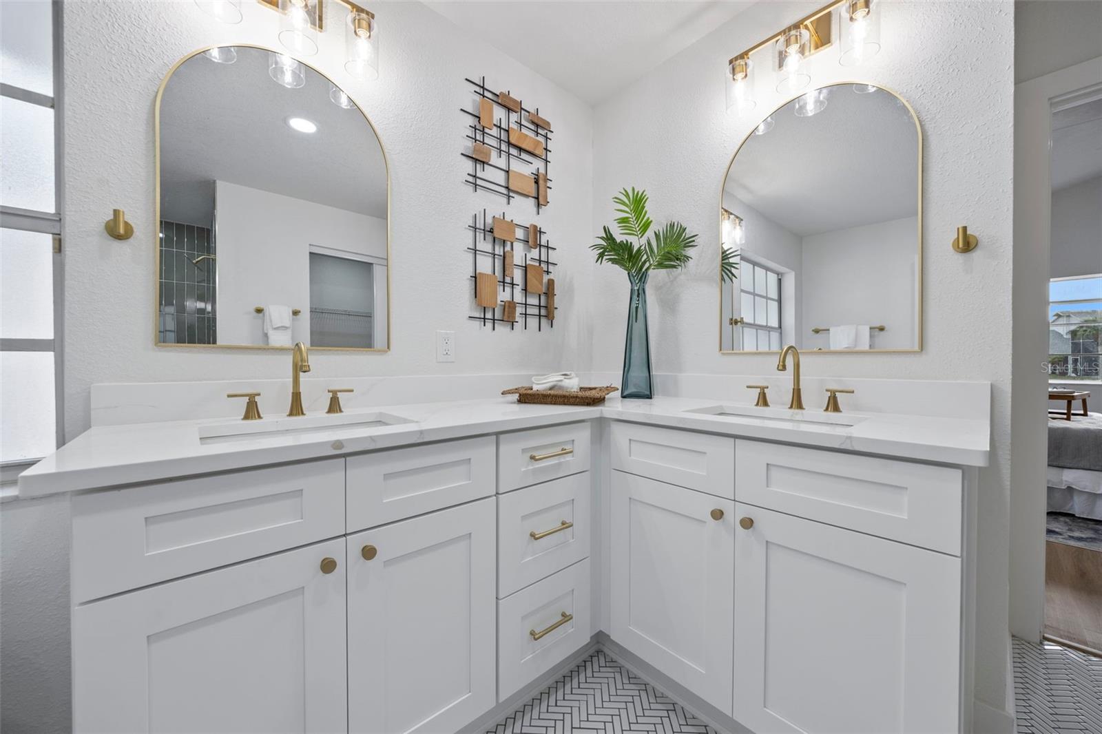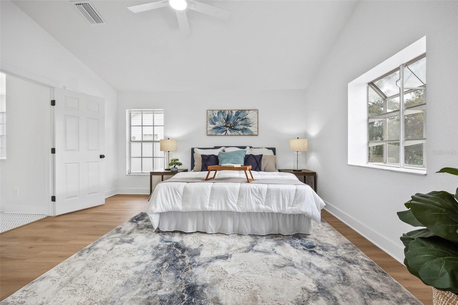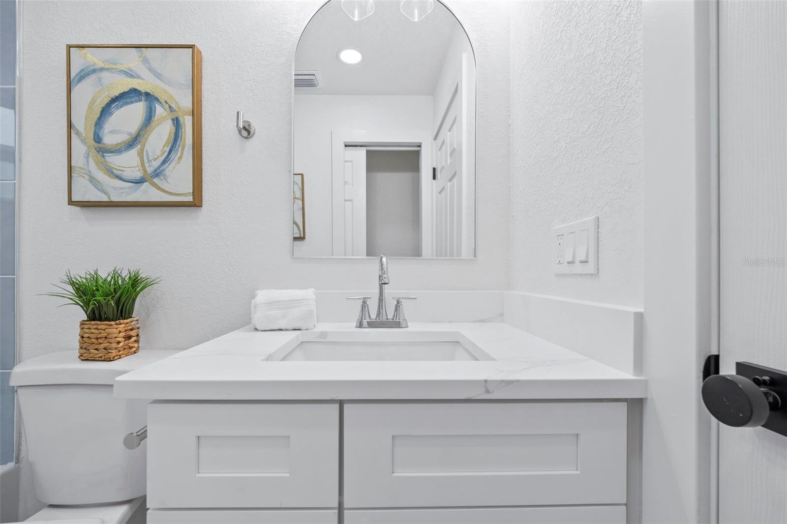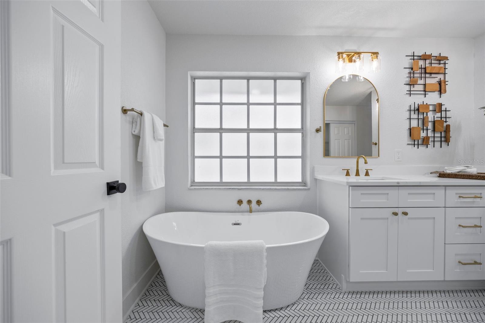 Welcome home! Come check out this amazing 3 Bedroom (plus office & study), 2.5 Bath Pool Home in Lakewood Estates! This home is located near the recently renovated St. Petersburg Country Club! Step inside this beautifully renovated home and you'll see the amazing pool and an open floor plan with high-end finishes in every room. Enjoy brand-new luxury vinyl flooring that flows seamlessly throughout the home, complemented by fresh interior paint and a bright, contemporary feel. The updated kitchen is stunning, offering new appliances, quartz countertops, marble backsplash, range hood, new kitchen cabinets with crown molding, and eat-in space on the island. The coffee bar overlooks the pool area and contains a wine fridge and cabinets for extra storage space. The split floor plan provides added privacy, with spacious bedrooms. The primary bedroom contains high ceilings, and his and her closets. The primary bathroom features quartz countertops, a beautifully tiled shower, and a stand alone bathtub that's nice and relaxing after a long day. Just off the primary bedroom is an office/nursery that has nice natural light. The second and third bedrooms have the second bathroom between them. Just off the kitchen, one will find a bright study/den that could be used as a 4th bedroom. The half bath has an exterior door and doubles as a pool bathroom. Other notable upgrades include new baseboards and trim, new interior doors, new exterior and interior paint, updated irrigation, and new sod. The two-car garage has storage closets. The roof was replaced in 2024. Move-in ready and thoughtfully upgraded, this home is perfect for modern living. Don’t miss your chance to make it yours!