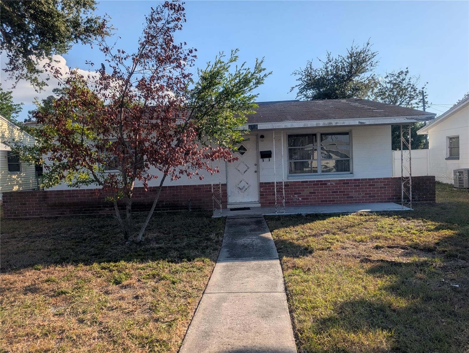 DIAMOND IN THE ROUGH (Estate) - CASH ONLY! 2 bedroom 1 bath mol 800 htd. sqft, 1966-built BLOCK home with screen back porch and carport (in backyard) on quaint street in desirable Disston Heights - NO FLOOD, NO EVACUATION ZONE, Mount Washington neighborhood, ideally located close to downtown St. Petersburg, I-275 corridor, nearby schools and restaurants (off 49th St.) and Tyrone Mall area. Terrazzo floors throughout, "Friedrich" wall A/C units (no HAV/AC), original windows, shingle roof in 2000, large eat-in kitchen, spacious laundry room (washer/dryer convey), additional shed off the carport - back alley access into deep 50x127 ft lot. Ideal starter or retirement home, and/or suitable investment - rental property. No information on insurance or ages of components - SOLD AS IS WITH RIGHT TO INSPECT (no repairs to be made by the seller, Personal Representative). Hurry, purchase - remodel - and become a proud home owner!