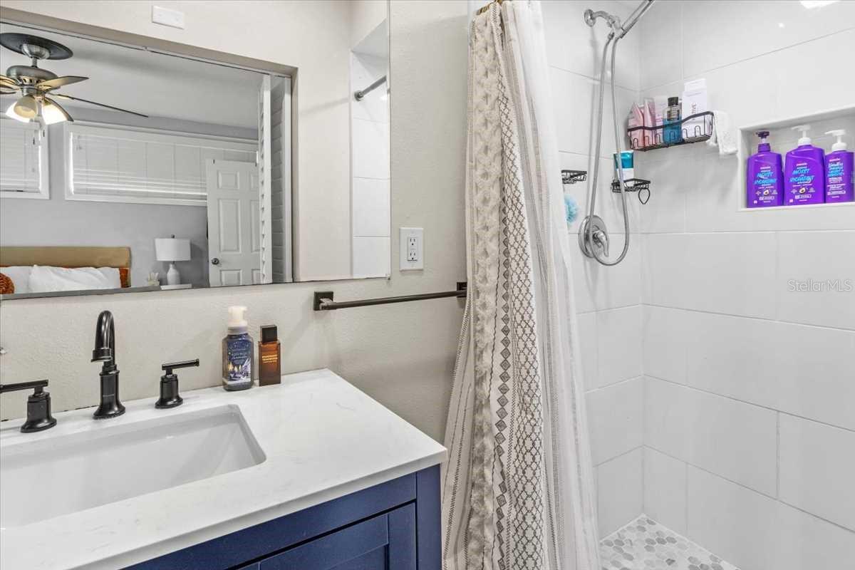 Priced to sell! Location! Location! Discover this charming 3-bedroom, 2.5-bath home ideally situated between the stunning Gulf Beaches (7 minutes) and the vibrant heart of downtown (15 minutes) St. Pete! With 1,257.94 sq ft of living space and a large fenced-in backyard, this home offers the perfect blend of comfort, function, and flexibility. Enjoy peace of mind with several major updates, including a newer HVAC (2022), updated electric panel, and a tankless hot water heater. The home also features an added laundry room and a spacious primary bath. The split floor plan includes a rear bedroom with its own private entrance from the side and backyard, a full en-suite bath, and sliding glass doors—ideal for guests, in-laws, or rental income potential. The open-concept living area is centered around a beautifully updated kitchen featuring stainless steel appliances, quartz countertops, and a long breakfast bar—perfect for entertaining. The roof was replaced in 2013, and there's plenty of off-street parking. Nestled in a prime location close to shopping, restaurants, and entertainment, this home offers convenience and lifestyle in one fantastic package. Don’t miss this one! Check out the Matterport video and take a walk through tour of the house and property.