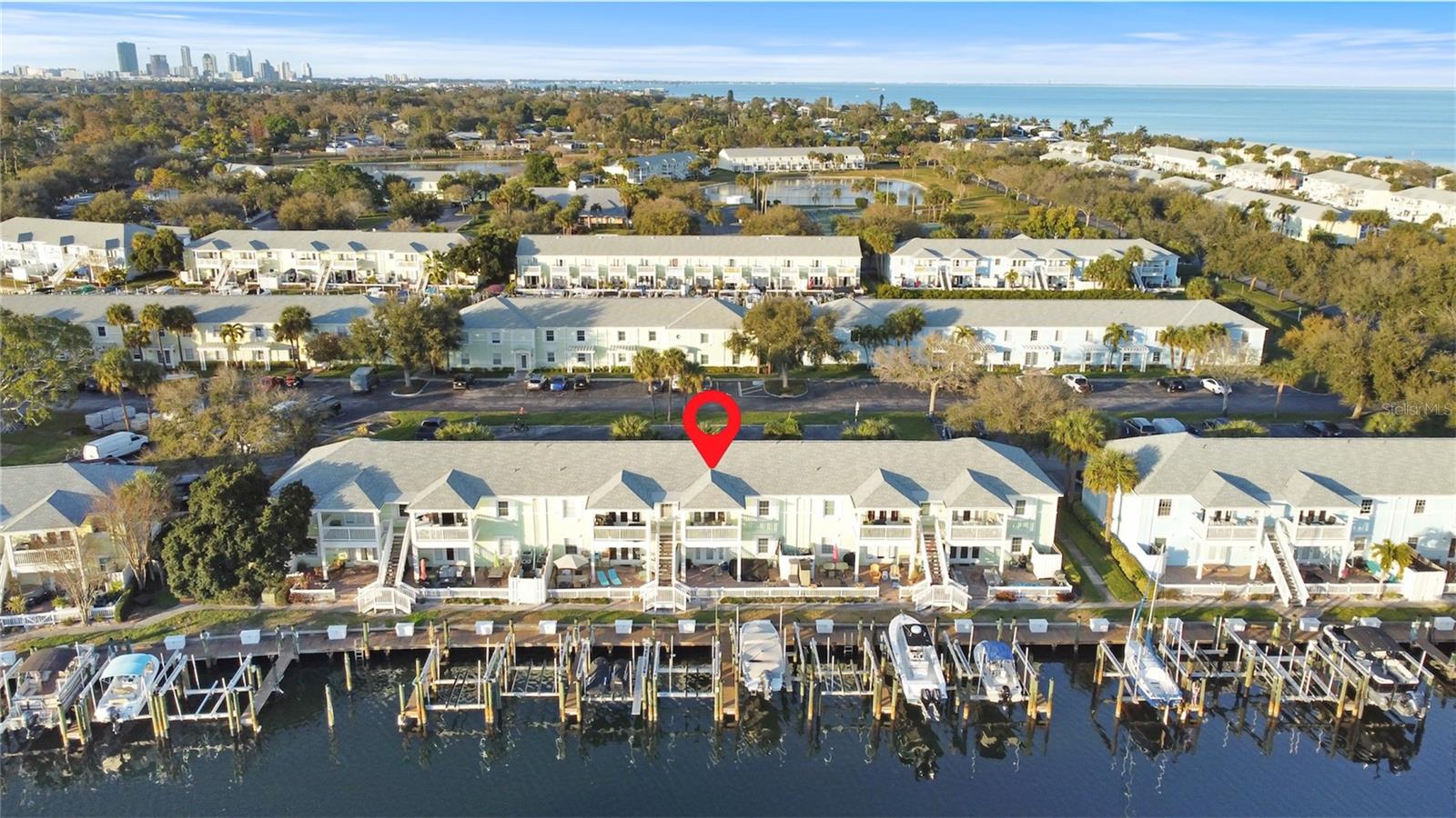 Waterfront sunsets and resort-style living await. This charming coastal two-bedroom, one-bath condo is turn-key and move-in ready. It is located in the desirable gated community of Waterside at Coquina Key and boasts its own private balcony overlooking the magical evening sunsets over Little Bayou. This 733 square-foot condo is fully furnished with brand new coastal furnishings and features all new kitchen appliances, together with a new washer and dryer. Freshly painted and meticulously decorated, this condo creates the perfect backdrop for relaxing evenings and true coastal living. The French door leads onto a comfortable rear balcony located directly on the large canal with dockage and boardwalk within steps of your back patio. The balcony offers panoramic views of the nearby waterfront and Little Bayou. While this unit does not include a dock, dockage and boat lifts are available for rent and/or for sale right behind your condo and only steps from the rear balcony. This location offers easy and quick boating access to open water and Tampa Bay restaurants and nightlife. Waterside at Coquina Key South is known for its resort style amenities, including two large swimming pools, spa, and sauna, fitness center, tennis and pickleball courts, shuffleboard, kayak storage, boat trailer storage, and miles of scenic seawall walking paths across 88 acres of tropical waterfront paradise. Waterside is an active community with music and social events offered at the clubhouse, community pool and bar areas. Enjoy easy access to downtown St. Petersburg, beaches, dining, and entertainment, while coming home to a peaceful waterfront community. HOA fees include guarded security, cable TV, pest control, water utilities, garbage, and recreational facilities, all of which add exceptional value and peace-of-mind. Please contact Therese Pike (Owner/Broker) for additional details on this exceptional property.