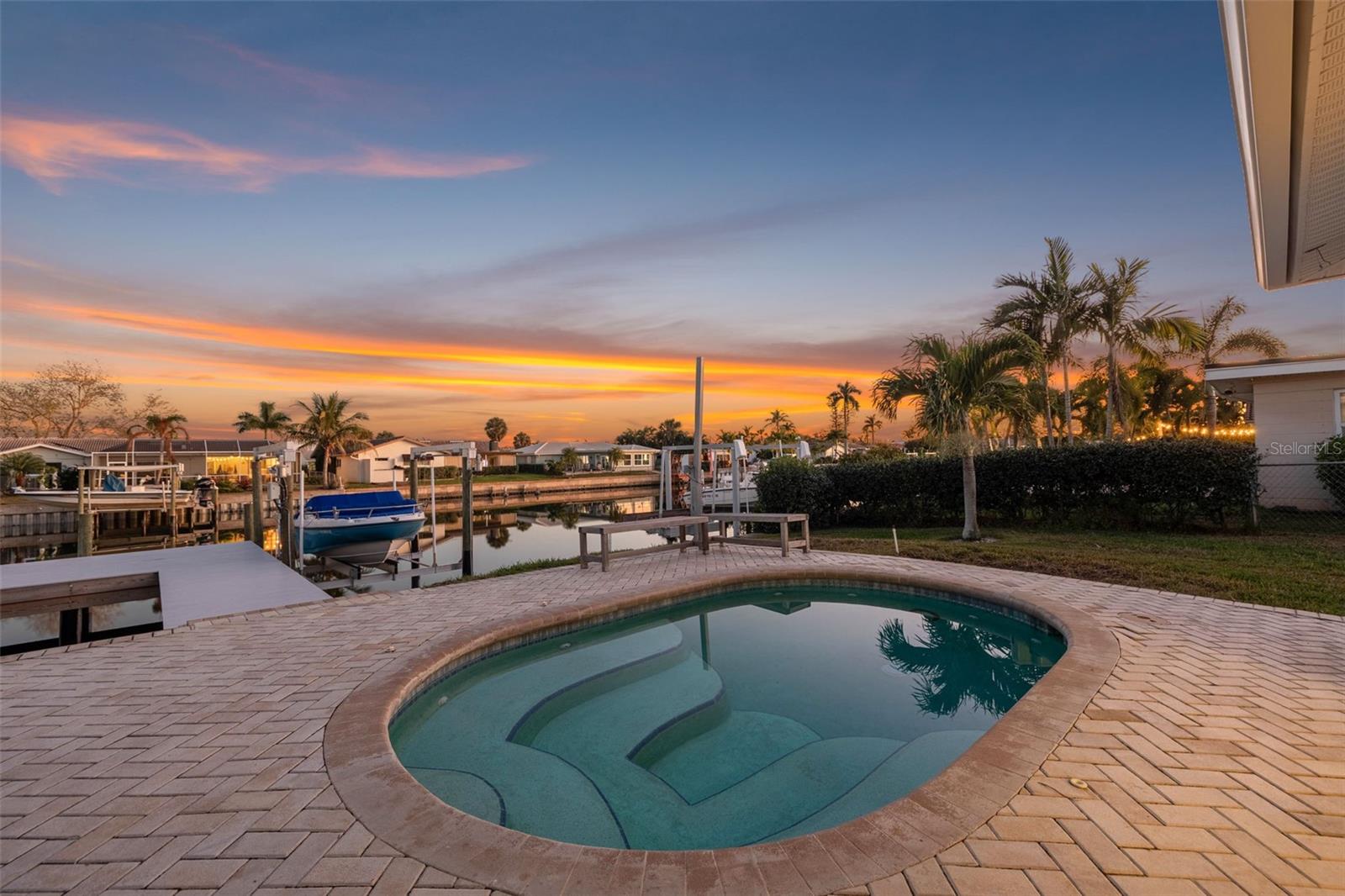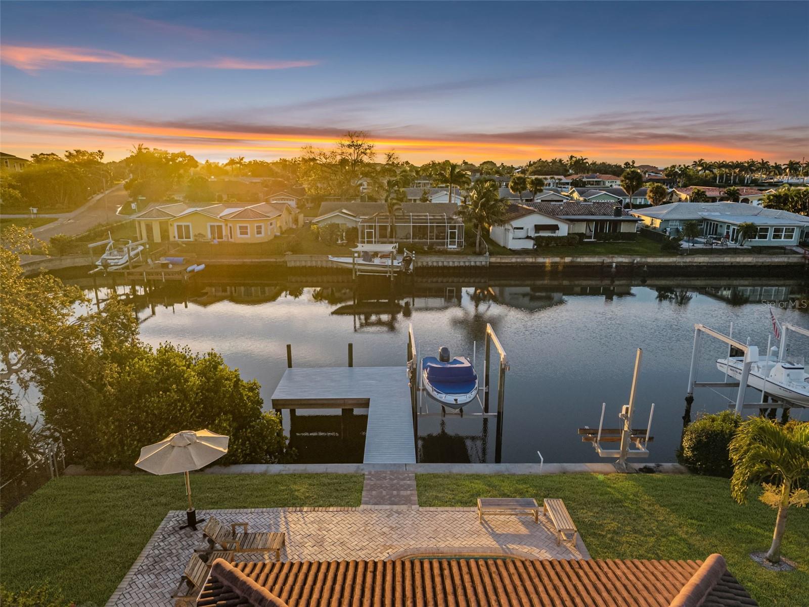 An extraordinary waterfront sanctuary in Venetian Isles—where enduring construction, elevated positioning, and uncompromising design converge to create a residence of exceptional distinction. Set among one of St. Petersburg’s most coveted boating communities, this refined coastal home is a true rarity: one of the very few properties in Venetian Isles that has NEVER experienced water intrusion or hurricane damage. Elevated higher than neighboring homes and constructed of solid block, this residence offers a level of confidence, resilience, and serenity seldom found in waterfront living. Thoughtfully enhanced with high-caliber upgrades throughout, the home blends timeless sophistication with modern performance. The chef’s kitchen is a statement of understated luxury, featuring quartz countertops, a farmhouse sink, bespoke two-tone soft-close cabinetry handcrafted by St. Pete Custom Cabinetry, a Bosch dishwasher, and a premium Thermador appliance suite—including a refrigerator/freezer and a four-burner natural gas range, supported by a newly installed gas line. Designed for seamless indoor-outdoor living, the property’s private dock was comprehensively reimagined in 2023 with new pilings, wrap, steps, decking, and a 10,000-lb boat lift—offering effortless access to Tampa Bay and the Gulf beyond. Whether hosting sunset gatherings or embarking on sunrise cruises, this waterfront setting is both elegant and functional. Modern infrastructure upgrades ensure the home performs as beautifully as it presents, including a new Rheem HVAC system (early 2024) with professionally cleaned ductwork, a 200-amp electrical panel (2022), EV charging post, and impact-rated windows and doors for ultimate peace of mind. The garage rivals luxury showrooms with a MyQ LiftMaster system, impact-rated side garage door (2024), and double epoxy flooring. This residence stands apart as a once-in-a-generation opportunity—a home that offers not only refined waterfront living, but enduring value and absolute confidence. This is Venetian Isles at its most elevated.