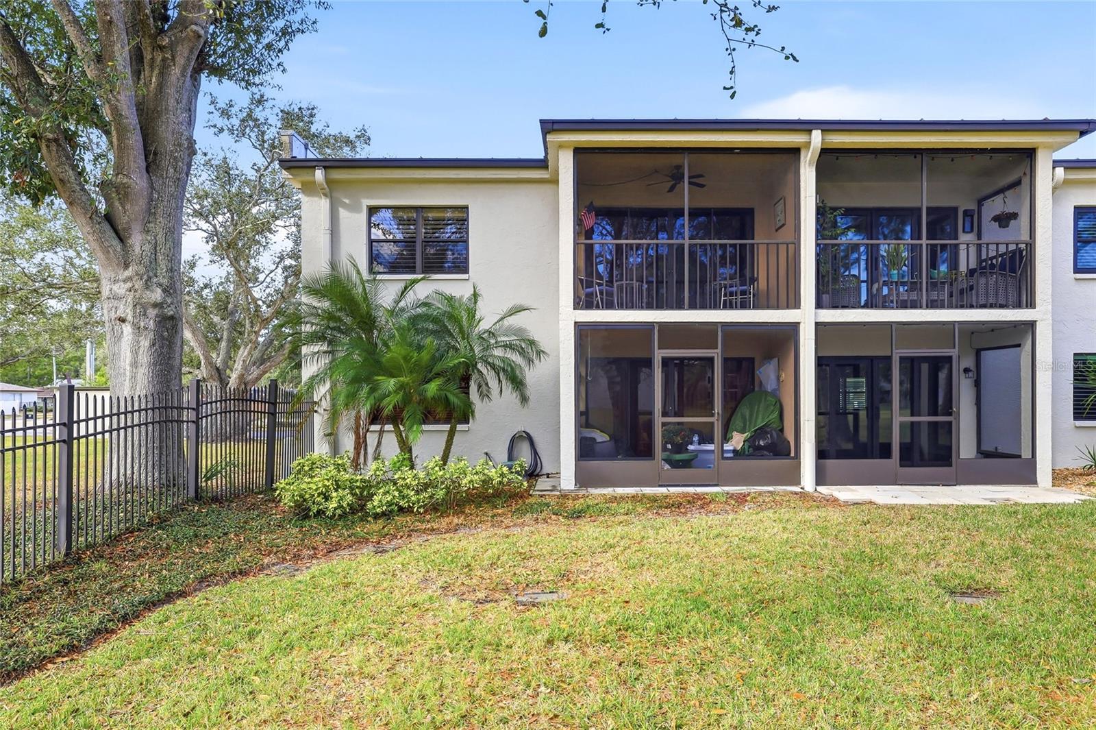 Welcome to a rare opportunity to own an end-unit condominium located in the desirable Winston Park Northeast. This spacious 2-bedroom, 2-bath second-floor condo offers one of the largest floor plans in the community with split bedrooms and bathrooms, ideal for privacy and hosting guests. Enjoy a large screened-in lanai overlooking lush greenspace and the community pool, perfect for relaxed Florida living. Inside, laminate flooring runs throughout, complemented by large closets and two separate living areas that allow flexibility for a second family room, dining area, or home office. The kitchen features stainless steel appliances, an island, pantry cabinetry, and ample storage, with sliding doors that open directly to the screened lanai for seamless indoor-outdoor living. Located in one of the few two-story buildings in the community, this unit has no neighbors above, with convenient stair access near the assigned carport and guest parking, as well as elevator access and on-site laundry at the end of the building. The HOA fee for this 55+ community includes a heated pool, shuffleboard courts, exterior maintenance, building insurance, water, sewer, and trash, providing low-maintenance condo living. Ideally situated near Publix, Whole Foods, shopping and dining along 4th Street, this condo also offers easy access to Coffee Pot Bayou, downtown St. Petersburg, and nearby bike and walking paths, making it a great option for an active adult lifestyle. Schedule your showing today!