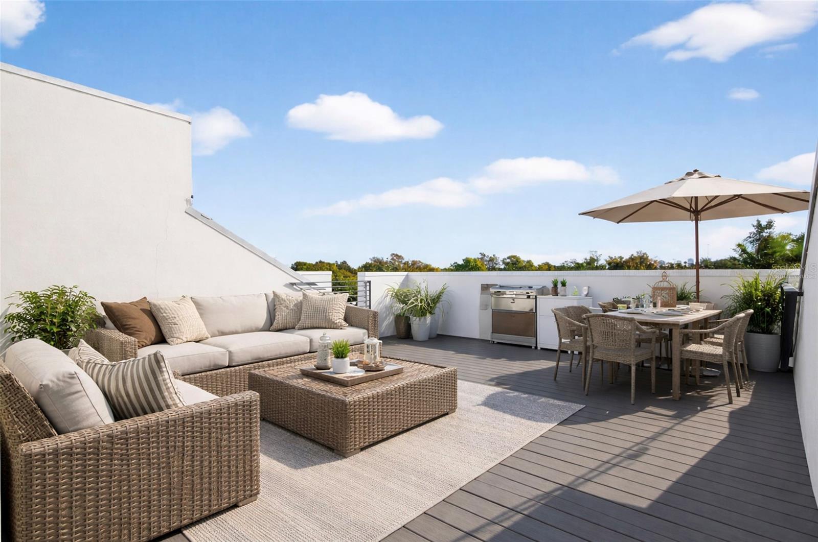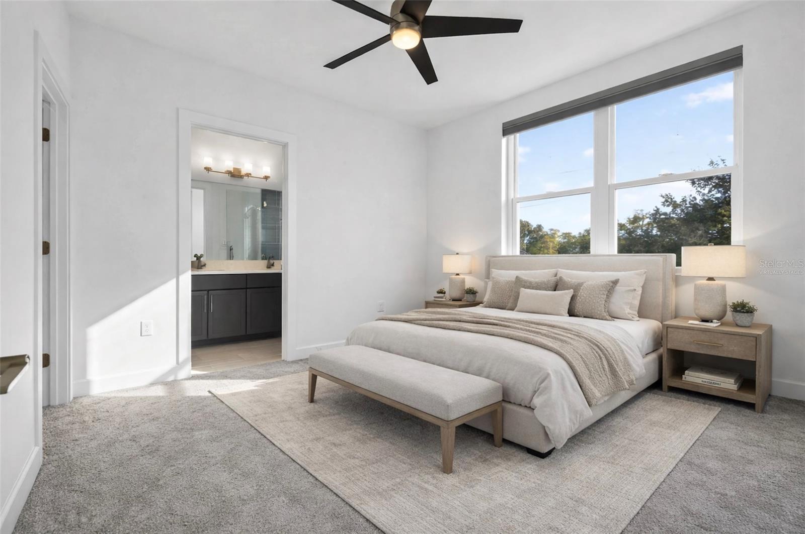 One or more photo(s) has been virtually staged. Welcome to 104 26th St N, a sophisticated four-story townhome completed in 2022 that exemplifies contemporary luxury and effortless urban living. Built with solid block construction and situated in a non-flood zone, this residence offers both refined design and enduring peace of mind. Spanning three beautifully curated levels of interior living space and crowned by a private rooftop deck, this home is thoughtfully designed for elevated entertaining and everyday indulgence. From the moment you enter, you’re greeted by soaring ceilings, wide-plank luxury LVP flooring, and recessed LED lighting, creating a clean, modern aesthetic bathed in natural light. The chef’s kitchen is a true centerpiece, featuring soft-close shaker cabinetry, quartz countertops, and a premium KitchenAid stainless steel appliance suite. A stunning picture window floods the space with sunlight, enhancing the kitchen’s open, airy feel while making it an ideal setting for both casual mornings and elegant gatherings. Private living quarters are equally refined, highlighted by custom closet systems throughout, designer window treatments, and seamless functionality. Everyday luxury is elevated with a Samsung washer and dryer, security doorbell system, and smart-home conveniences throughout. The oversized one-car garage rivals those found in single-family residences, offering overhead storage, a MyQ smart garage door, and a dedicated EV charging station. Enjoy a truly lock-and-leave lifestyle with an HOA that covers water, sewer, trash, exterior maintenance, roof, and grounds, along with access to a private community dog park—allowing owners to focus on living rather than maintenance. Ideally positioned steps from the vibrant Grand Central District, this exceptional residence offers walkable access to some of St. Petersburg’s finest dining, boutique shopping, galleries, and nightlife. This is not simply a townhome—it is a statement of modern luxury, intentional design, and urban sophistication, crafted for those who expect more.