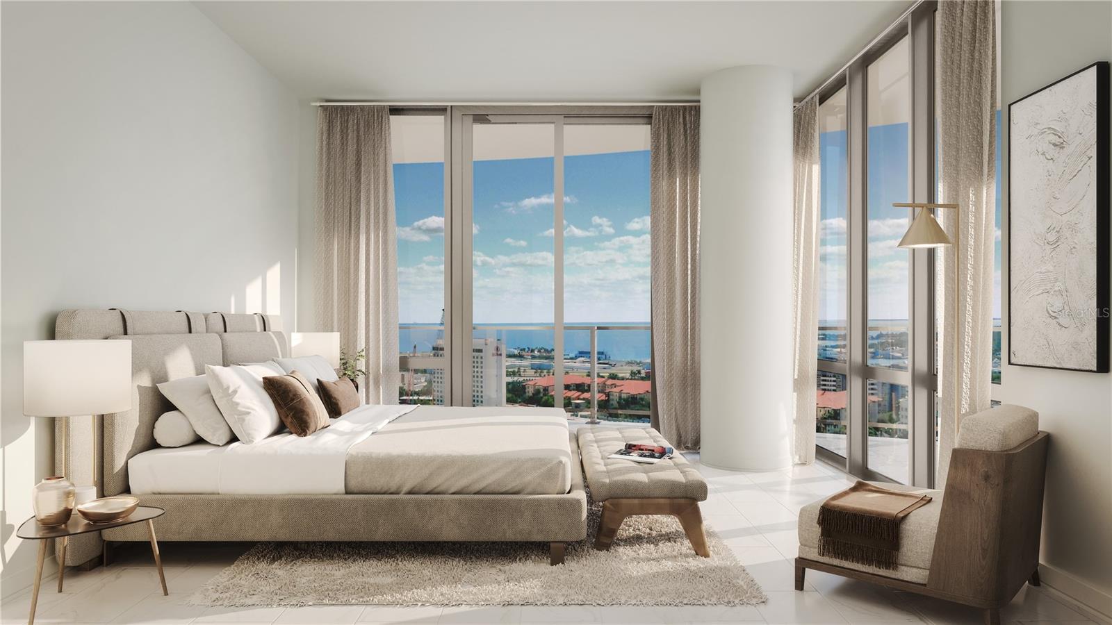 An iconic design from award-winning firm Arquitectonica with interiors and amenities by New York based Celano Design Studio. 400 Central offers an elevated approach to luxury city living, unlike anything seen before in St. Petersburg. Enjoy 10’ ceilings with walls of glass allowing for an abundance of natural light in this well-designed 3-bedroom 3.5-bath residence. The extensive terrace runs the entire length of the residence, providing outdoor living and panoramic views from the living/dining room and every bedroom. The gourmet kitchen features Italian cabinetry with undercabinet lighting, quartz countertops in Desert Silver, and stainless-steel JennAir appliances, including a 36" gas cooktop, wall oven/microwave, dishwasher, and a 36" refrigerator with bottom freezer. Other highlights include generous owners’ suite bathrooms with enclosed glass showers, multiple shower heads with bench seats, Grohe plumbing fixtures, and a Calacatta Gold pattern accent wall. Whirlpool washer/dryer. Along with Prestige Dolomiti porcelain tile. On the 7th level, an amenity deck with over 36,000 square feet of indoor and outdoor opportunities for health and wellness plus a theater lounge and private dining room. Enjoy the resort-style heated pool or the state-of-the-art fitness center. Lounge in the zen garden or in a poolside cabana. On the 45th floor, the Sky Lounge and Observatory showcase an unobstructed 360-degree view of the city, Tampa Bay, and the Gulf of Mexico. Residences at 400 Central provides the convenience of the maintenance-free, lock-and-leave, condominium lifestyle in the heart of St. Petersburg.