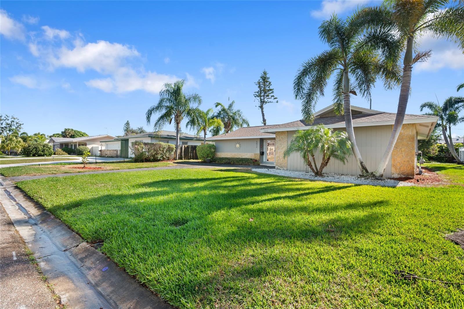 Located in the desirable Maximo Moorings community, this charming, fully furnished home offers the perfect Florida lifestyle – ideal for snowbirds or full-time residents alike. The single-level split floor plan has two bedrooms and two bathrooms. The spacious living room features three-panel sliding glass doors that fully open to a generous covered lanai (12’6” x 20’) creating a seamless indoor-outdoor experience that is great for entertaining. A bright, inviting kitchen includes an eat-in breakfast nook, direct lanai access, and gas stove favored by cooking enthusiasts. The primary bedroom suite offers a walk-in closet and private bathroom with walk-in shower. Outside, enjoy a beautifully maintained lawn with mature topical trees supported by a five-zone irrigation system that uses reclaimed water. Additional highlights include an oversized one-car garage, energy efficient double-pane storm windows, custom plantation shutters in the dining room and kitchen, and brand-new lanai screens (installed in 2026). No damage or flooding during the unprecedented 2024 storms and No HOA. Roof replaced in 2013. Perfectly position with easy access to I-275 and the Pinellas Bayway (SR-682), this property is close to world-class Gulf beaches, vibrant downtown St. Petersburg, stunning Fort De Soto Park with its beloved dog beach, Maximo Marina, and the Pinellas Trail – bringing the best of coastal living right to your doorstep!