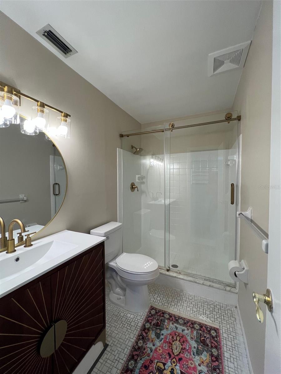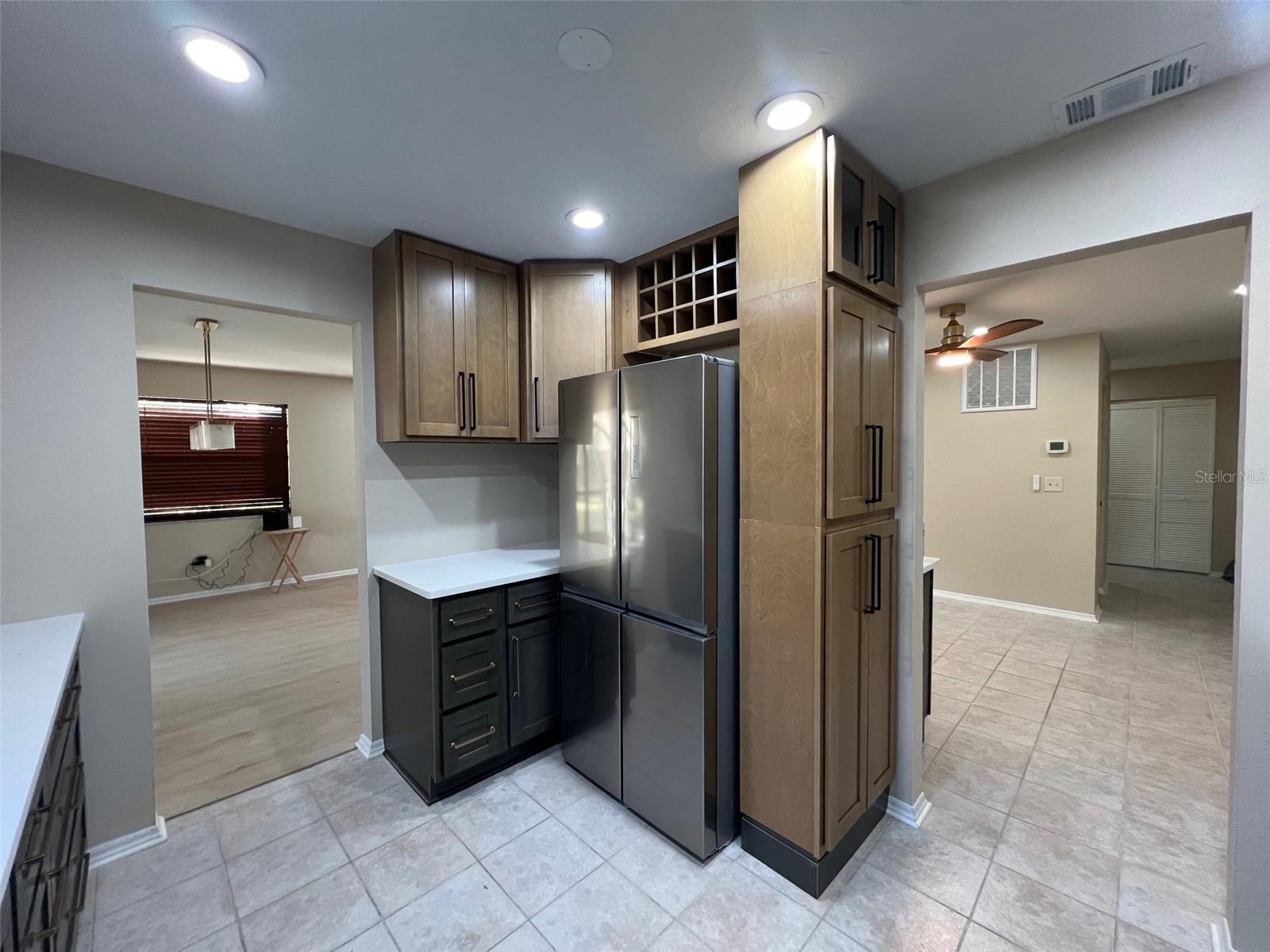 Renovated in December 2025; new luxury vinyl flooring, new shaker kitchen cabinets, laundry room, all new recessed ceiling lights, new dining room & living room lights, all new ceiling fans, freshly painted walls, doors, trim & ceilings; all new bathroom vanities & faucets, new vanity lights; all new stainless steel appliances; new kitchen faucets, new Quarts countertop; new tub & shower trim in both bathrooms; new bathroom mirrors; bar area with plenty of wine racks, new wine cooler, living has new wood look tile wall; kitchen backsplash has the same wood look tiles. Waterfront ground floor two bedroom. Parking space 68, next to the front door. Screened enclosure overlooks the lake - water. Two full bathrooms. Primary bathroom features a step-in shower. Five Towns is an active 55+ community and offers six swimming pools, athletic courts for tennis, pickleball, bocce, and shuffleboard, several patios & picnic areas, 2 clubhouses with libraries, fitness centers, billiards rooms, and card rooms. Explore the variety of cultural attractions nearby including the Salvador Dali Museum, Palladium Theatre, and St. Petersburg Museum of Fine Arts. Located close to shopping, restaurants, beaches, golf and 25 minutes to the airport. Staging furniture (including electric fireplace) not included in sale. Current 36-inch gas stove is not included; similar 36-inch gas stove will be provided prior to closing.