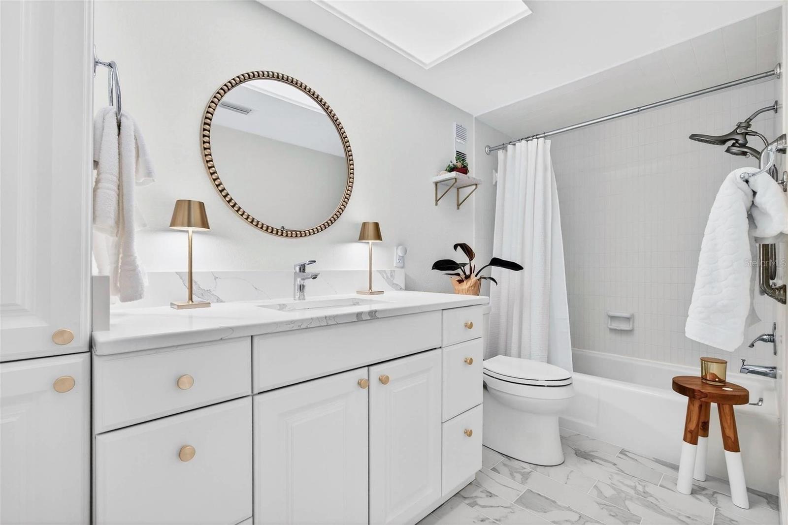 There is something very intimate and relaxing about waking up and being able to walk out onto your patio to greet the day with dolphins, manatees, and a nest of Florida doves at your feet. This is a rare waterfront designer’s model condo with patio living! Welcome home to your 30-acre tropical island paradise. This is the active, 55+ resort club living you’ve dreamed about. Surrounded by water, the meticulously maintained grounds lead to the secure, gated entrance of the MOST DESIRABLE building in the complex. Park in your assigned space in its secure GARAGE with easy access to your unit, roll up the convenient ramp into the building--no waiting for the elevator, ever! This RARE opportunity for PATIO living is on the waterfront side of the building with easy access to each of the pools. Move right into this luxuriously detailed one-of-a-kind Condo. REMODELED in Japandi style featuring tile and plush carpet, kitchen with stainless-steel appliances, self-closing cabinets, pull out shelves, and a new huge primary ensuite bedroom featuring built-ins, closet system, and dual sinks. Enjoy WATER VIEWS, lush greens and SUNSETS from your patio just 50 feet from the water. Relax by one of four heated pools, stroll on the lighted seawall walking path, take your boat for a cruise in the Bay and onto the Gulf (BOAT SLIPS available on a first come basis), workout in the modern fitness center, fish from the well-lit fishing piers, play some tennis or pickle ball, or launch your kayak with the new kayak launching system. Enjoy numerous clubhouse activities (see calendar in MLS), walk to the onsite country store and medical facility--or just be! Bring the dog, he or she will love patio living! Plenty of guest parking, many golf clubs nearby, super-easy I-275 access, near Fort DeSoto Park and just 5 minutes to the beautiful downtown St. Pete, 10 min to the BEACH; 20 min to the airport. Come explore your new home today!