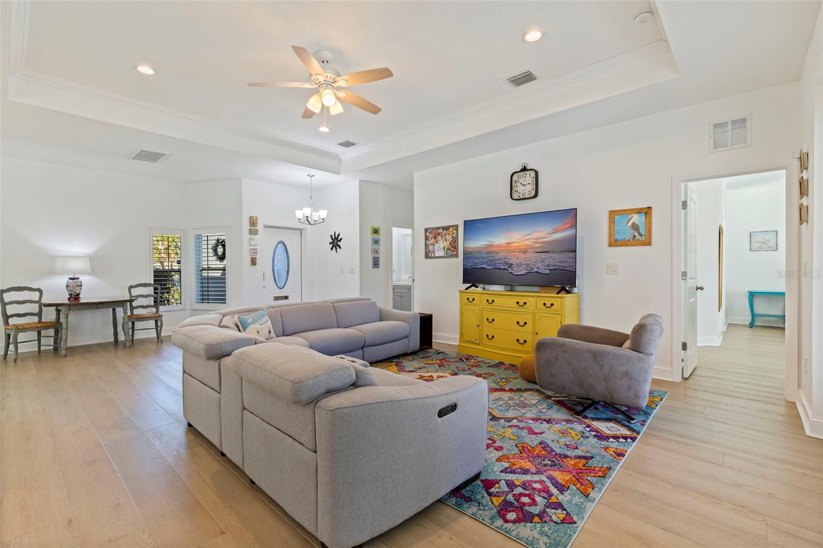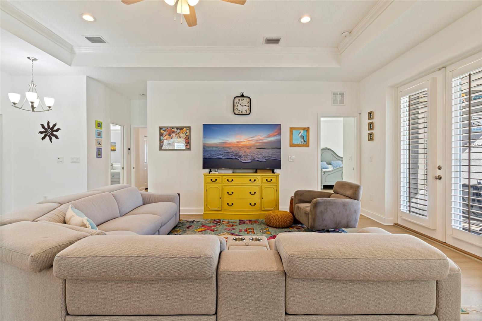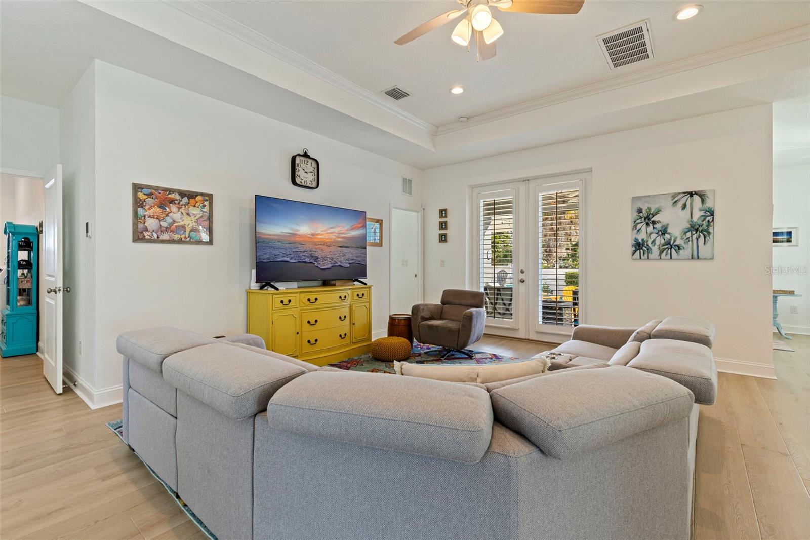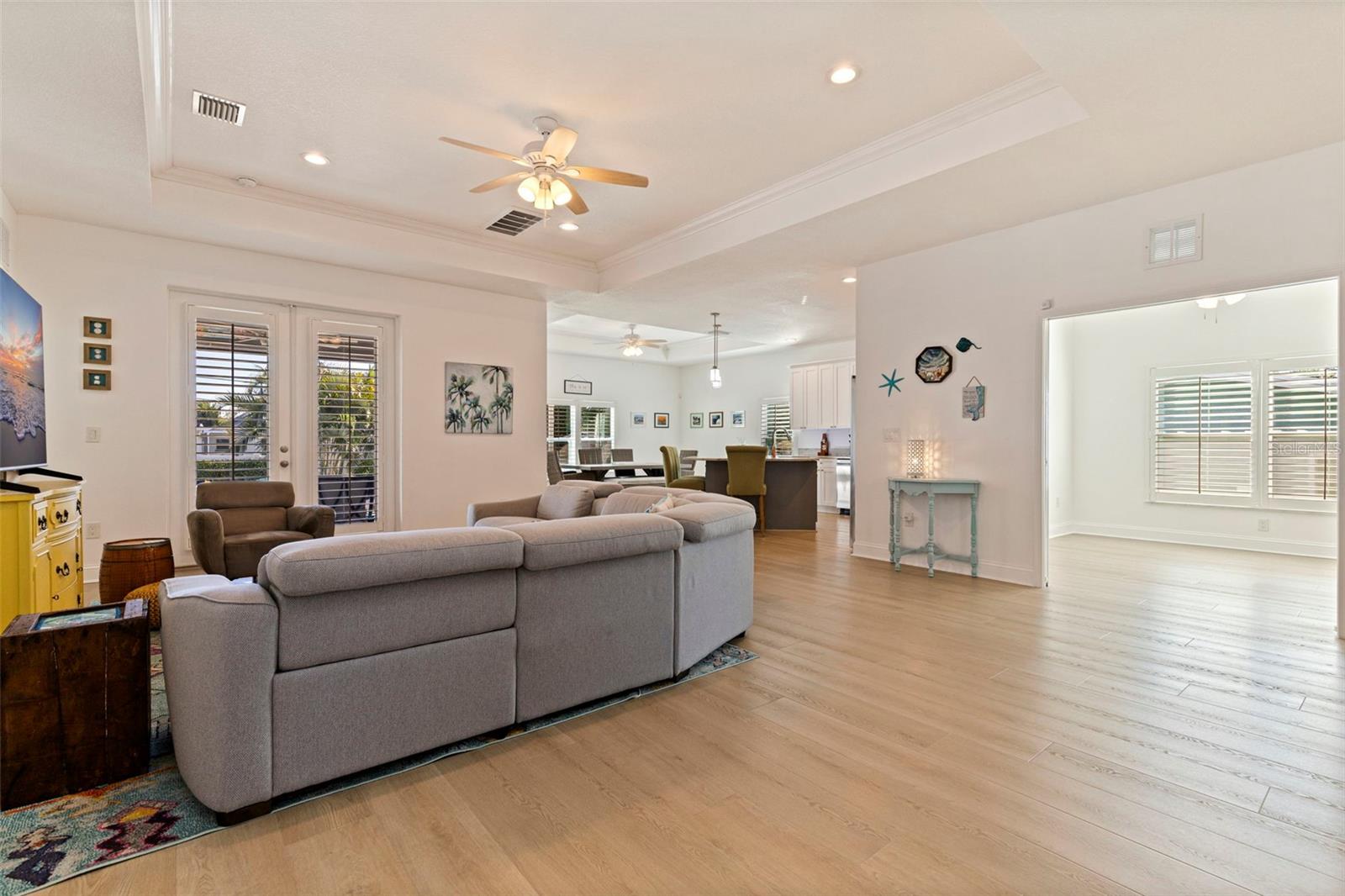 Beautifully Upgraded Elevated Home in Pinellas Point just blocks from Maximo Park. The “Sunshine House” is a 2020 custom home with 4 beds and 2.5 baths. Built to hurricane standards, impact windows and elevated to 13 feet, this home offers peace of mind along with exceptional indoor/outdoor lifestyle. The private primary suite is thoughtfully positioned on one side of the home with a spa bath, freestanding soaking tub, water closet, walk-in shower, and an impressive 12’ x 8’ walk-in closet with a security system panic button. The opposite wing offers three generously sized bedrooms. Spacious guest bath with double vanity. The great room, family room, and primary bedroom showcase tray ceilings with crown molding, while the remaining areas feature 9’4” ceilings, creating an open and airy feel throughout. Eight-foot French glass doors open to a covered rear porch overlooking a backyard with an oasis of greenery and an alleyway for added privacy. Interior features include impact-rated windows and doors. Guest half bath features pocket door as well as several other well placed pocket doors throughout the home. The kitchen features granite countertops, a large center island, walk in pantry, under cabinet lighting, stainless-steel farm-sink, garbage disposal, microwave, LG appliance package including stainless flat-top range/oven, and fridge with ice and water dispenser. Significant owner upgrades elevate this home well beyond new construction. Luxury CALI High Tide vinyl plank flooring, along with whole-house plantation shutters, upgraded USB charging outlets, and a state-of-the-art 2024 Daikin high-efficiency HVAC system, 4 ton, 18 Seer, advanced air purification using ultraviolet technology to reduce mold, viruses, and bacteria. Spacious indoor laundry. The backyard has been transformed into a private resort-style retreat, custom designed concrete salt water pool and spa with tile and pebble-tech finish, fountain, seating shelf areas, electric heat pump, travertine paver deck, and Wi-Fi-controlled Pentair system. Smart app available to instantly control pool heater before you dip in! A retractable screened back porch to shade you and keep bugs away, covered patio and pergola, and a fully equipped outdoor bar with sink, refrigerator, water service, string lights dimmable with Alexa, and fans make this space ideal for entertaining year-round. Additional exterior enhancements include a 6-foot vinyl privacy fence with oversized rolling gate and dual side gates, professional landscaping with sod, fox tail palms, areca palms, private wells for irrigation, solar-powered security cameras, outdoor hose reels, pool storage Suncast shed mounted on a hurricane pad, and thoughtful stepping stones. Outdoor shower with privacy. For recreational flexibility, the property includes dedicated RV, boat or Jet Ski parking with concrete tire pads, a 30-amp RV outlet, and additional exterior electrical and USB outlets. Water Leak defense system installed with auto shut off. A two-car finished garage with opener, storage shelving, painted floor and a brick paver circular driveway. This meticulously maintained home combines modern construction, extensive custom upgrades, smart technology, and exceptional outdoor living in one of St. Petersburg’s most sought-after neighborhoods. Take a short stroll to O’Neills Marina, Loggerhead Marina, Sunshine Skyway Bridge and Maximo Park that provides 7 boat ramps, playground, disc golf course, trails, and shoreline fishing.
