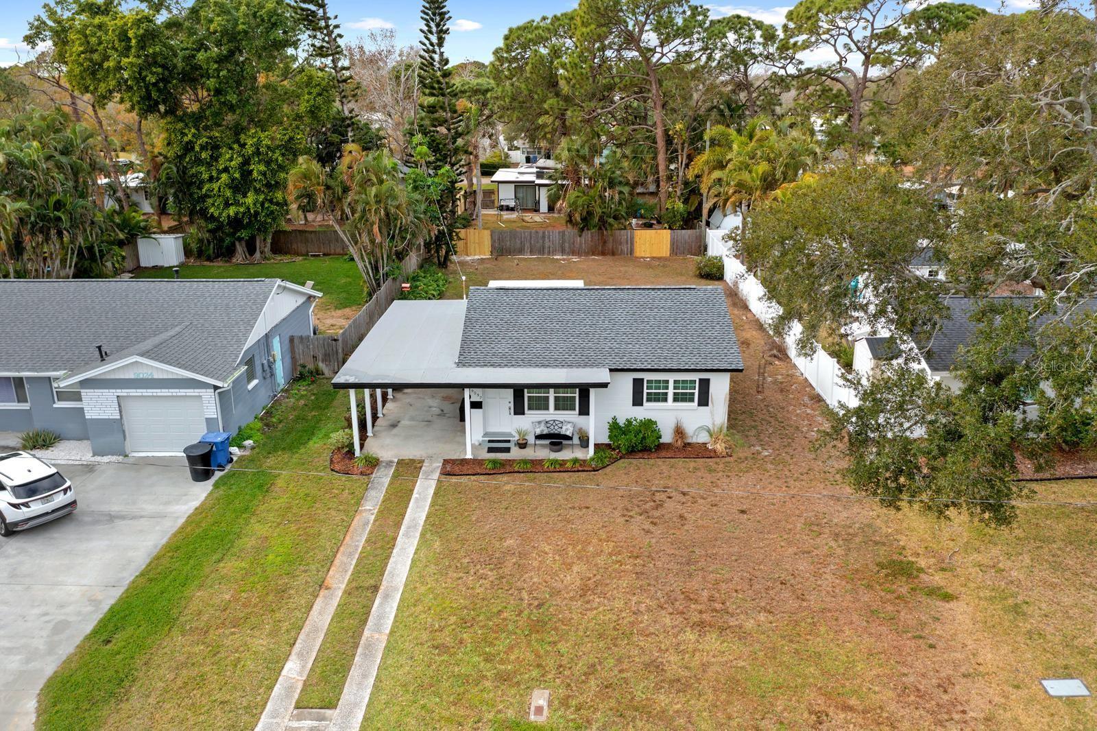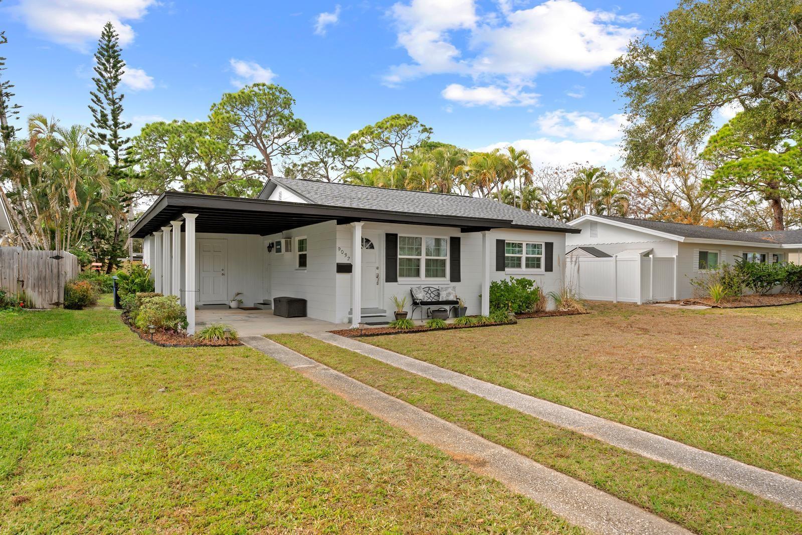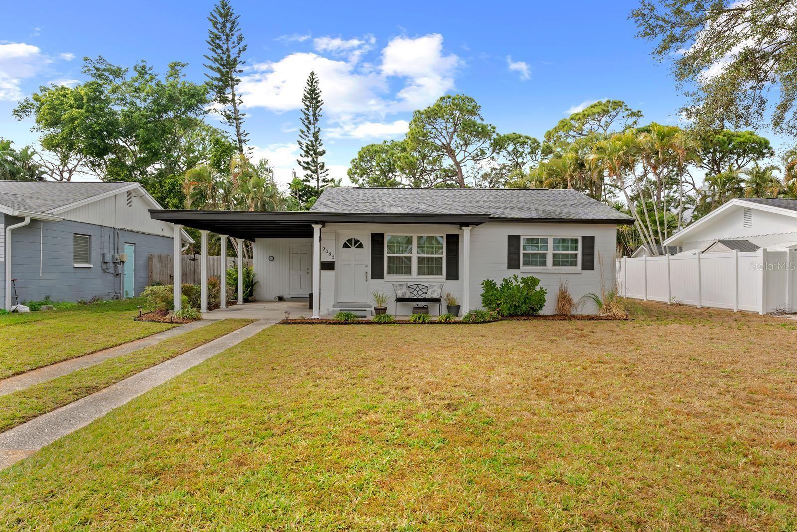 One or more photo(s) has been virtually staged. Welcome to this super-cute and thoughtfully updated 2-bedroom, 1-bath home offering easy Florida living with room to grow. Upon entry, you’re welcomed into a bright and comfortable living area that flows effortlessly into two well-sized bedrooms and a separate bathroom featuring a brand-new vanity and sink. The newer roof, windows and main A/C provide piece of mind. Terrazzo flooring runs throughout the main living spaces—an ideal Florida feature known for staying cooler underfoot—while the sun-filled Florida room is finished with vinyl plank, creating the perfect bonus space for relaxing, working, or entertaining. The kitchen has been completely renovated and is a true highlight, showcasing crisp white shaker cabinetry, sleek white countertops, stainless steel appliances, and a clean subway tile backsplash—fresh, modern, and ready to enjoy. Fresh interior and exterior paint paired with newly refreshed landscaping make this home feel truly move-in ready and beautiful from the inside out. Additional conveniences include a covered carport, attached storage space, and laundry hookups already in place. Step outside and you’ll find a huge backyard with endless potential—virtually staged to showcase possibilities like a pool, fire pit, and outdoor entertaining areas. Location is a major plus: hop onto the Gandy Bridge in under five minutes, enjoy quick access to 4th Street, and reach downtown St. Petersburg in less than 15 minutes. Outdoor enthusiasts will love being just minutes from Weedon Island Preserve, offering fishing, kayaking, paddleboarding, scenic trails, and peaceful waterfront views. With easy access to I-275, getting to beaches, shopping, dining, and more is effortless. Priced under $300,000, this home is an incredible opportunity for first-time buyers, couples, or anyone looking to downsize into a low-maintenance home with an unbeatable location and room to personalize!