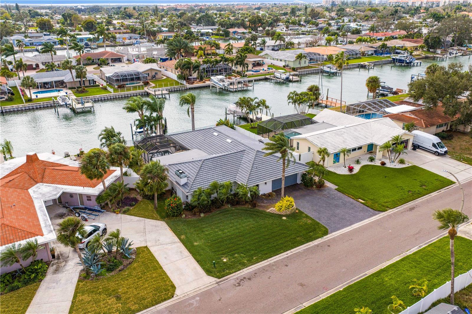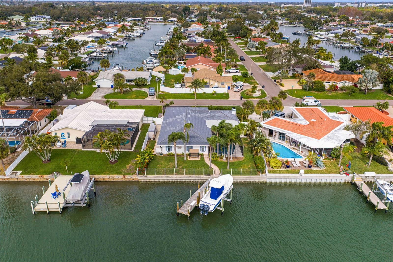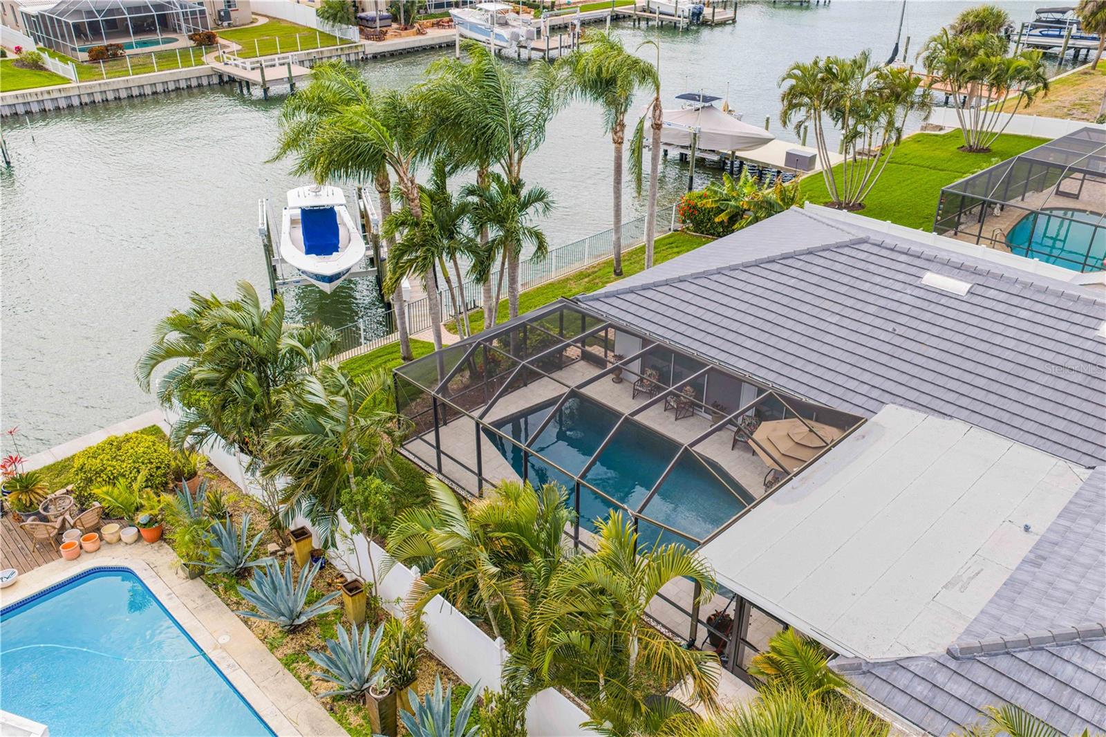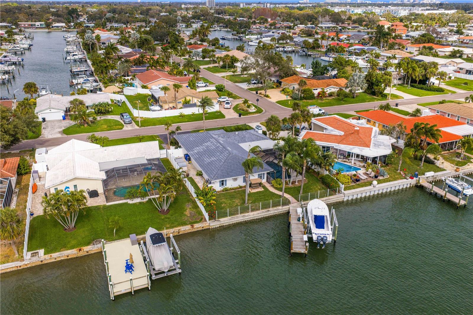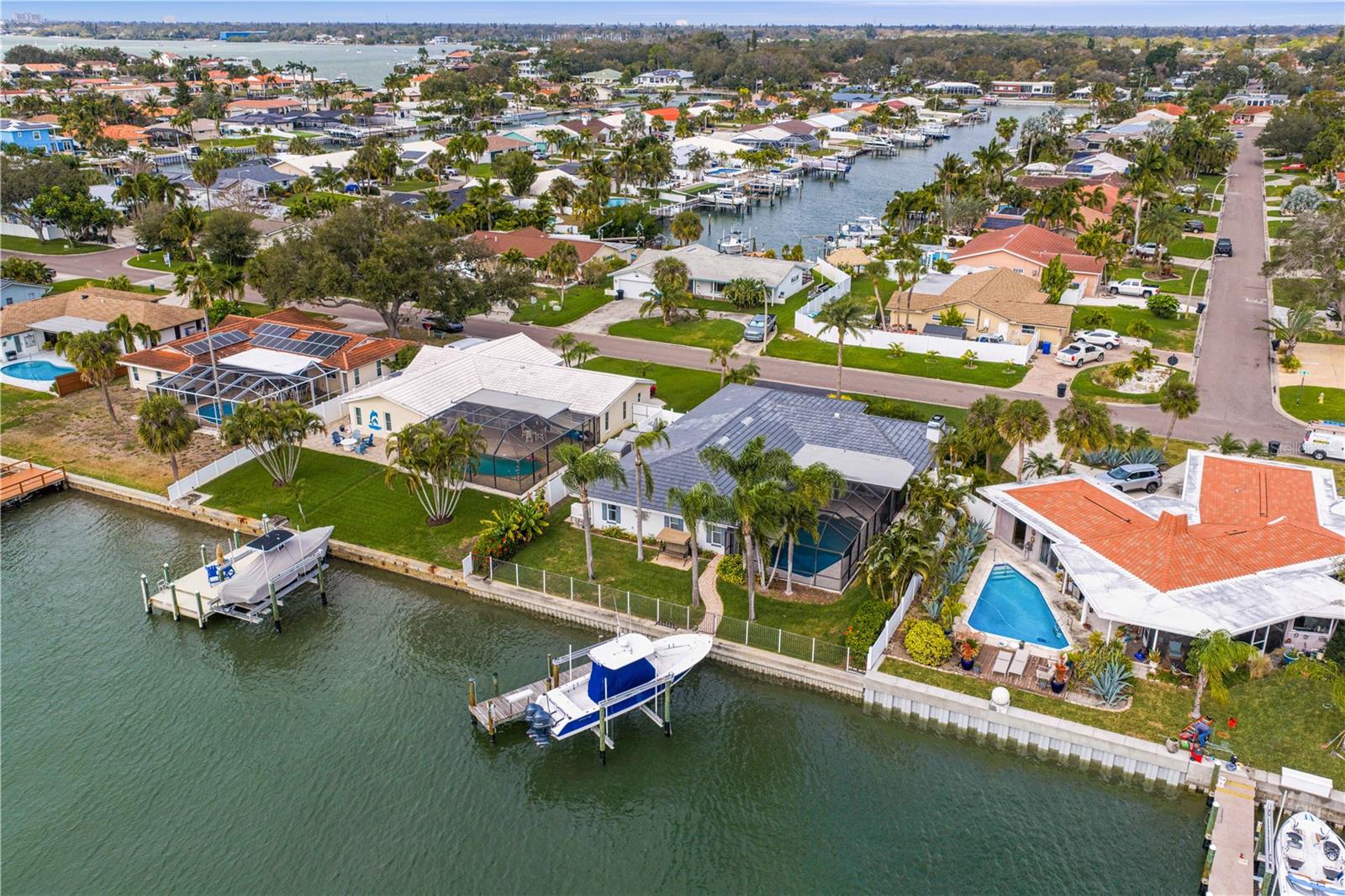 Experience the FLORIDA COASTAL LIFESTYLE you’ve always dreamed of. This beautifully updated waterfront home offers a HEATED POOL, direct Intracoastal access, and a PRIVATE DOCK with a 16,000 lb lift plus space for a SECOND VESSEL—just minutes from open boating waters. From the moment you arrive, the home stands out with its lush landscaping, manicured lawn, PAVER DRIVEWAY, fresh exterior paint, and NEW ROOF. Sunlight dances across the exterior, hinting at the warmth and style waiting inside. Step through the welcoming foyer and into a living space designed for COMFORT AND ELEGANCE. Crown molding, thoughtfully placed lighting, and a COZY FIREPLACE create an inviting atmosphere perfect for relaxing or entertaining. The dining area flows seamlessly from the living room and overlooks both the pool and kitchen—an ideal setup for gatherings, whether you’re serving from the outdoor grill or your BEAUTIFULLY UPDATED KITCHEN. The kitchen truly is the heart of the home, featuring white shaker cabinetry, STYRATEGIC TASK LIGHTING, upscale stone counters, stainless appliances, counter seating, and a VERSITILE ISLAND. When it’s time to unwind, the spacious family room offers the perfect spot to watch the game, complete with a custom entertainment bar, beverage fridge, ONYX COUNTER, and festive lighting. The primary suite is a luxurious retreat with serene views of both the Intracoastal and the pool. It includes a large closet and a FULLY UPDATED EN SUITE BATH with a curb-less walk in shower, designer mirrors, premium fixtures, and stylish lighting. FOUR ADDITIONAL BEDROOMS are bright and generously sized, including one with its own EN SUITE BATH. A beautifully updated full bath also serves the pool and guest rooms. The screened, HEATED POOL is a showstopper—surrounded by a travertine deck and designed for year-round enjoyment. For boaters, the private dock is fully equipped with ELECTRIC, WATER, a dock box, and a fish cleaning station. A personal security system gives you PEACE OF MIND whether at home or away. With the Intracoastal, Boca Ciega Bay, and the Gulf just minutes away, this is a true BOATER"S PARADISE. All of this is located just minutes from Downtown St. Pete, world class beaches, restaurants, shops, and airports. A rare blend of LUXURY, LOCATION and COASTAL LIFESTYLE—this home truly has it all.