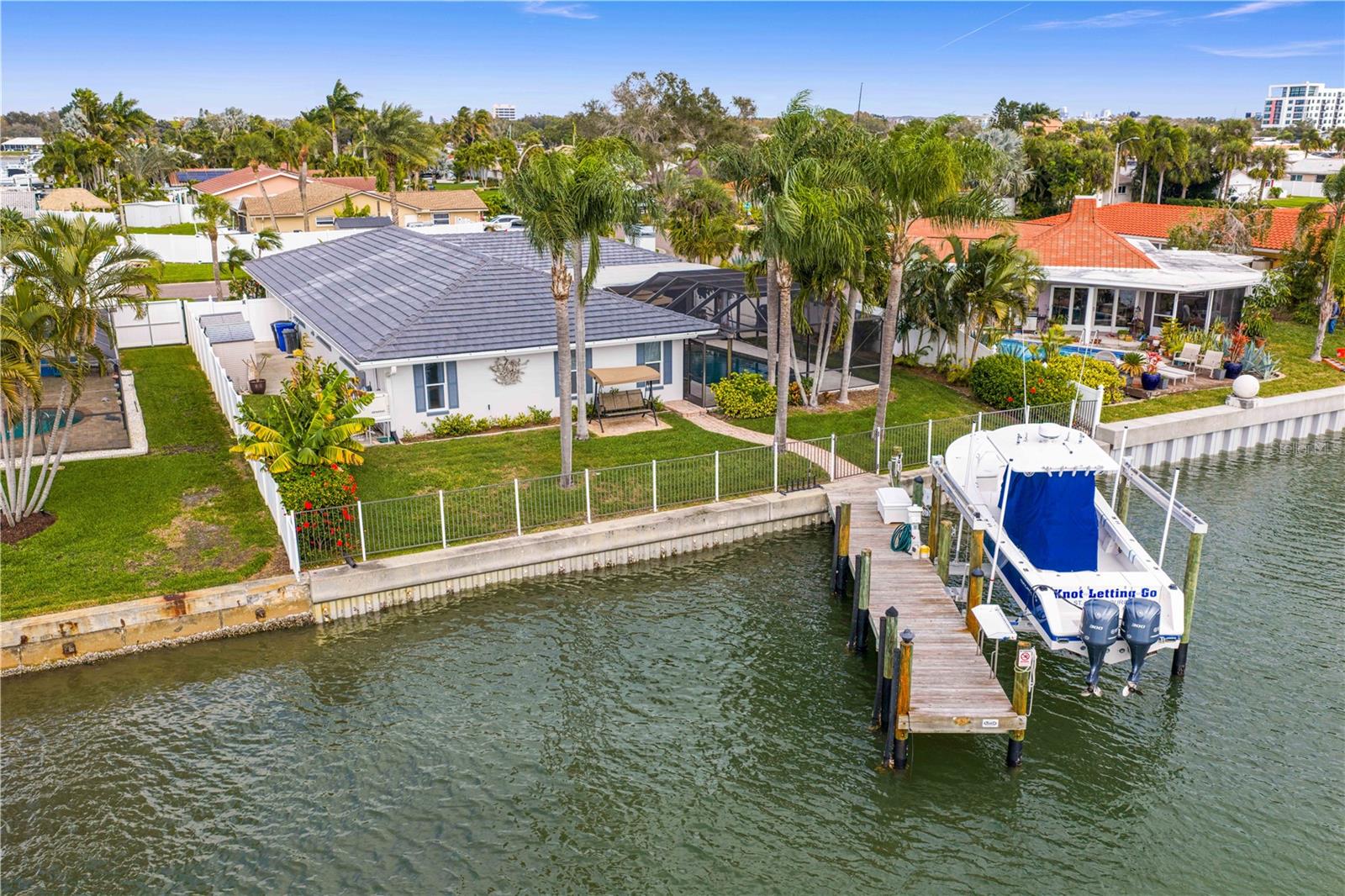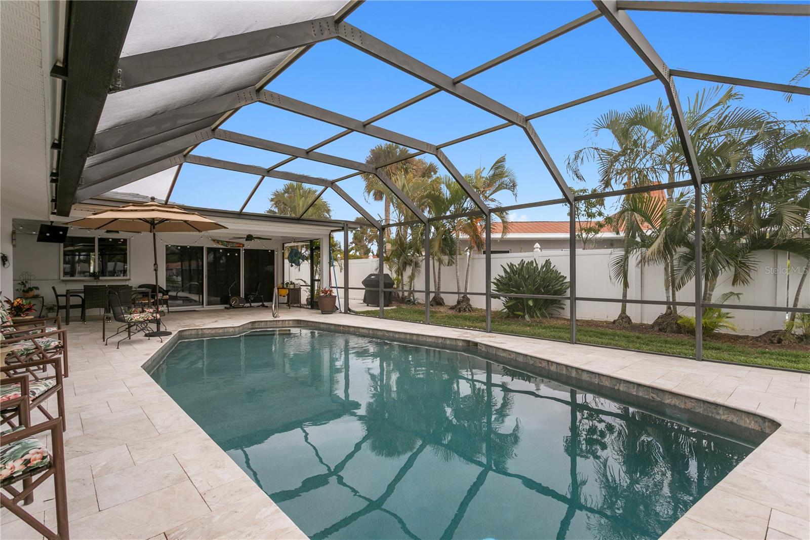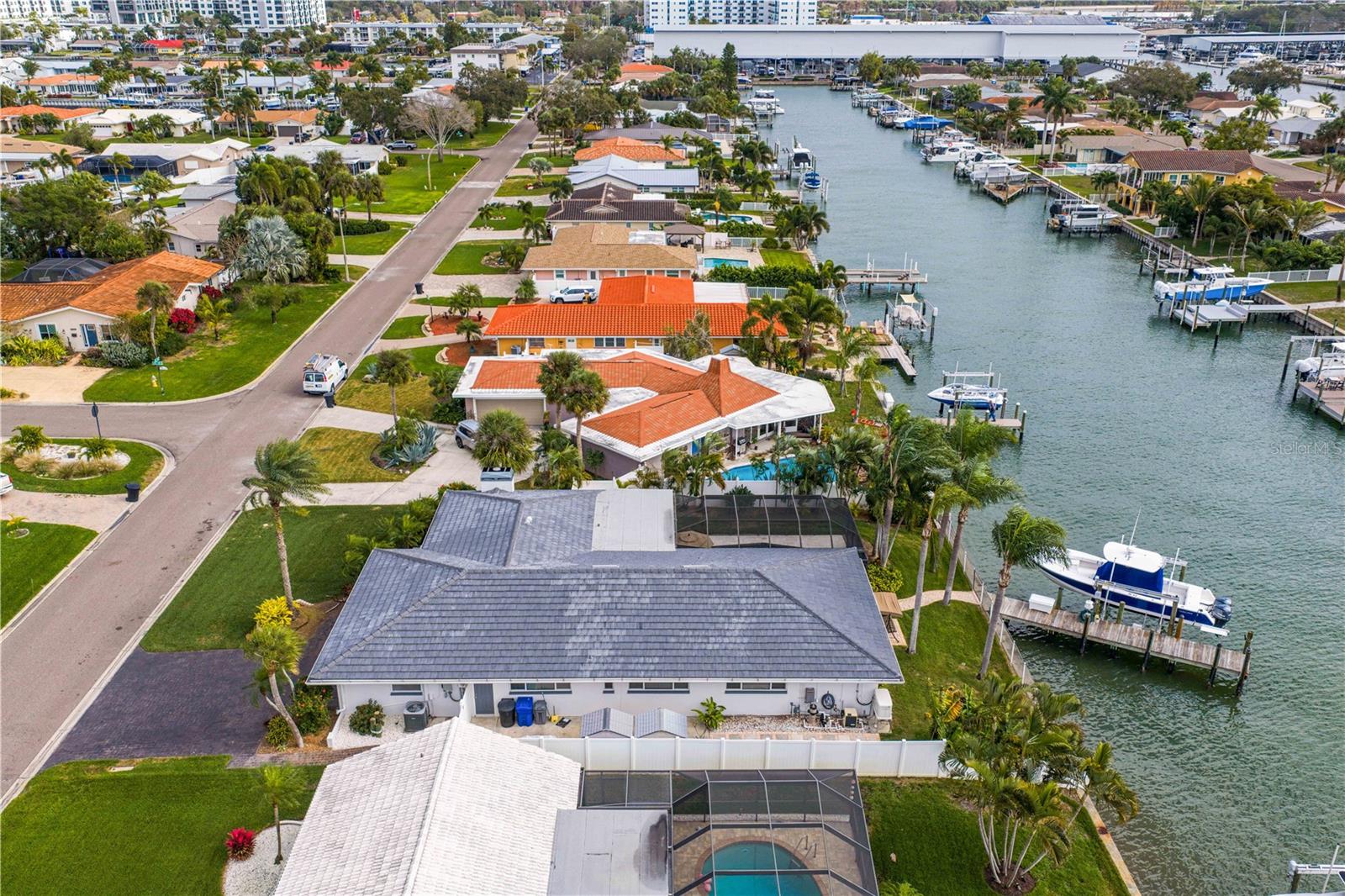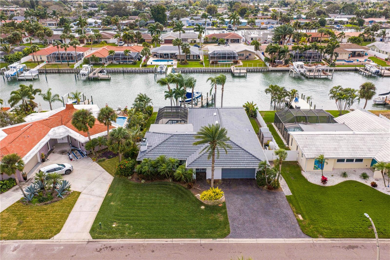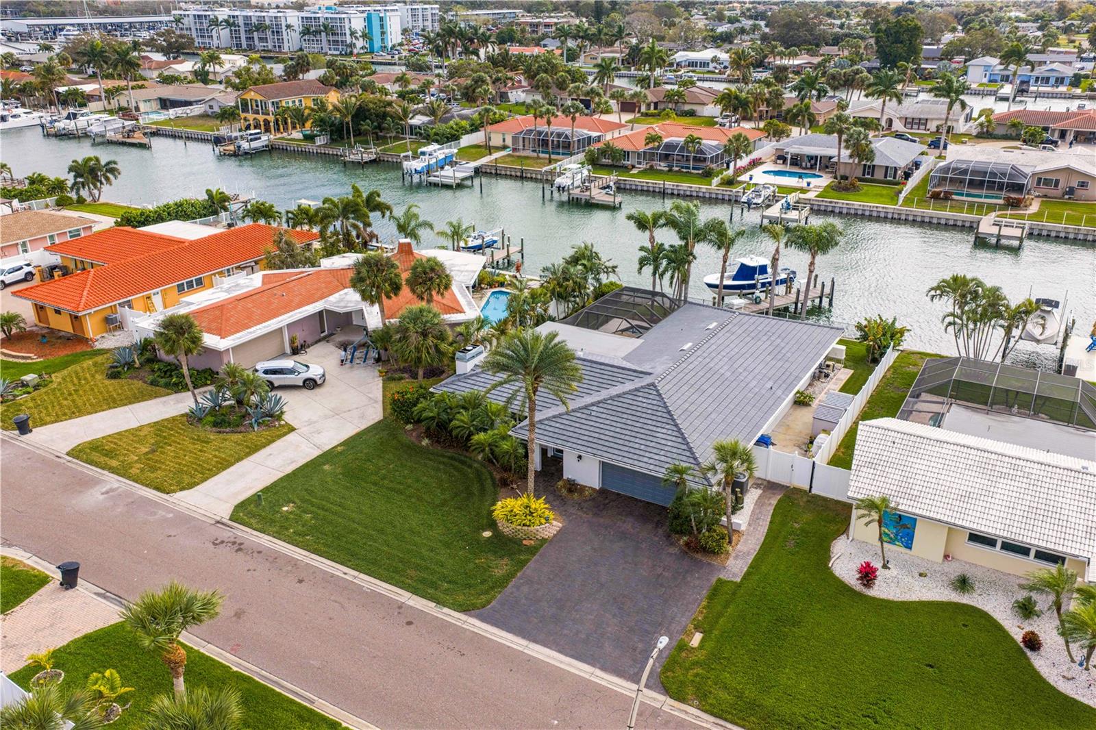 Experience the FLORIDA COASTAL LIFESTYLE you’ve always dreamed of. This beautifully updated waterfront home offers a HEATED POOL, direct Intracoastal access, and a PRIVATE DOCK with a 16,000 lb lift plus space for a SECOND VESSEL—just minutes from open boating waters. From the moment you arrive, the home stands out with its lush landscaping, manicured lawn, PAVER DRIVEWAY, fresh exterior paint, and NEW ROOF. Sunlight dances across the exterior, hinting at the warmth and style waiting inside. Step through the welcoming foyer and into a living space designed for COMFORT AND ELEGANCE. Crown molding, thoughtfully placed lighting, and a COZY FIREPLACE create an inviting atmosphere perfect for relaxing or entertaining. The dining area flows seamlessly from the living room and overlooks both the pool and kitchen—an ideal setup for gatherings, whether you’re serving from the outdoor grill or your BEAUTIFULLY UPDATED KITCHEN. The kitchen truly is the heart of the home, featuring white shaker cabinetry, STYRATEGIC TASK LIGHTING, upscale stone counters, stainless appliances, counter seating, and a VERSITILE ISLAND. When it’s time to unwind, the spacious family room offers the perfect spot to watch the game, complete with a custom entertainment bar, beverage fridge, ONYX COUNTER, and festive lighting. The primary suite is a luxurious retreat with serene views of both the Intracoastal and the pool. It includes a large closet and a FULLY UPDATED EN SUITE BATH with a curb-less walk in shower, designer mirrors, premium fixtures, and stylish lighting. FOUR ADDITIONAL BEDROOMS are bright and generously sized, including one with its own EN SUITE BATH. A beautifully updated full bath also serves the pool and guest rooms. The screened, HEATED POOL is a showstopper—surrounded by a travertine deck and designed for year-round enjoyment. For boaters, the private dock is fully equipped with ELECTRIC, WATER, a dock box, and a fish cleaning station. A personal security system gives you PEACE OF MIND whether at home or away. With the Intracoastal, Boca Ciega Bay, and the Gulf just minutes away, this is a true BOATER"S PARADISE. All of this is located just minutes from Downtown St. Pete, world class beaches, restaurants, shops, and airports. A rare blend of LUXURY, LOCATION and COASTAL LIFESTYLE—this home truly has it all.