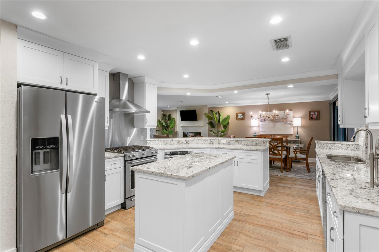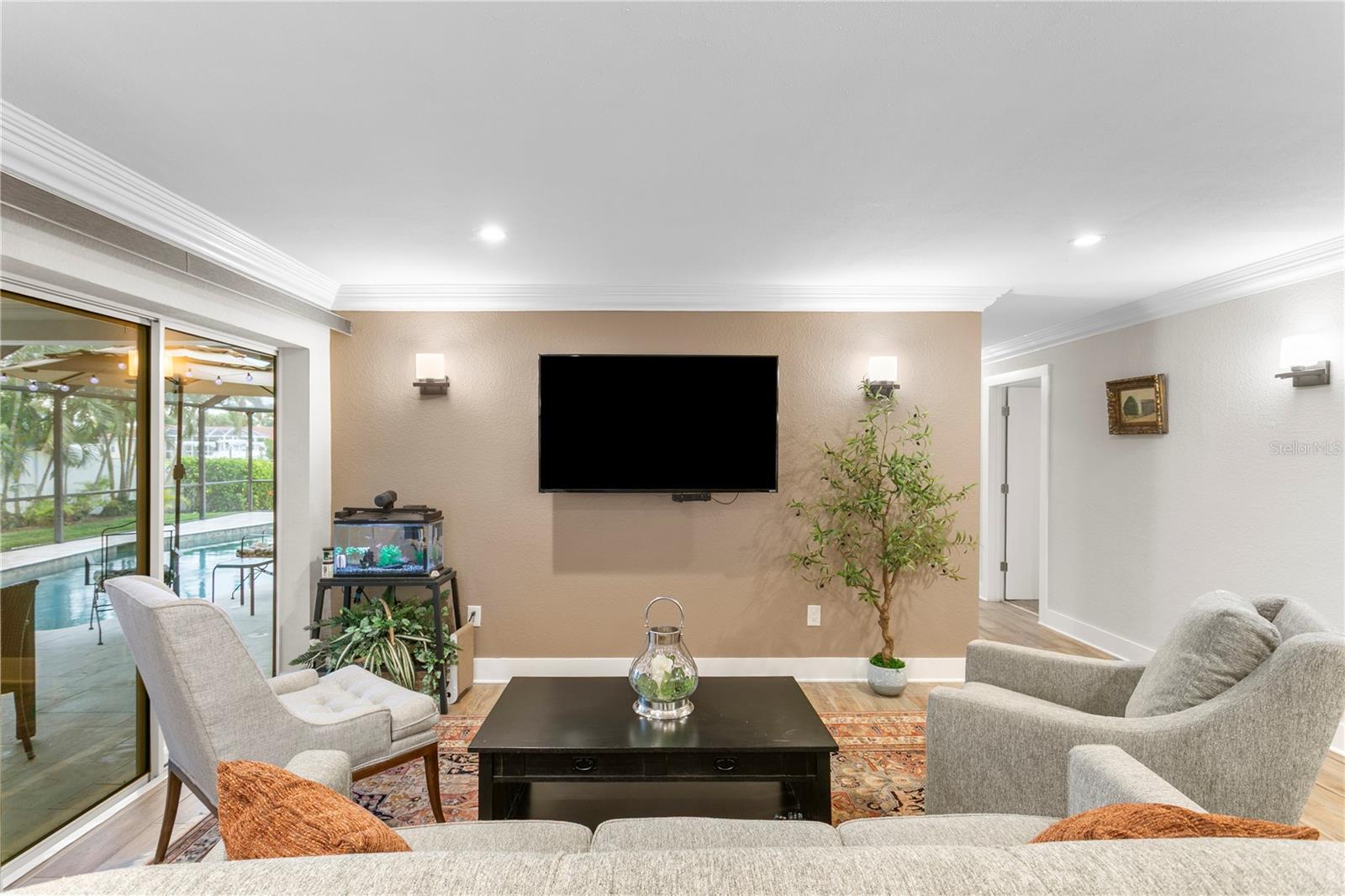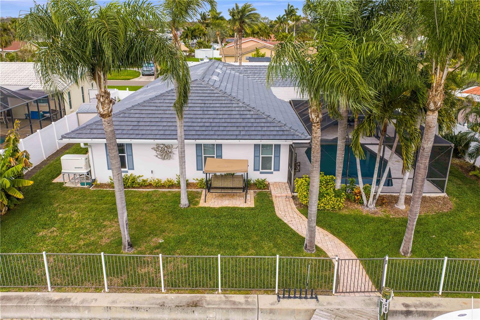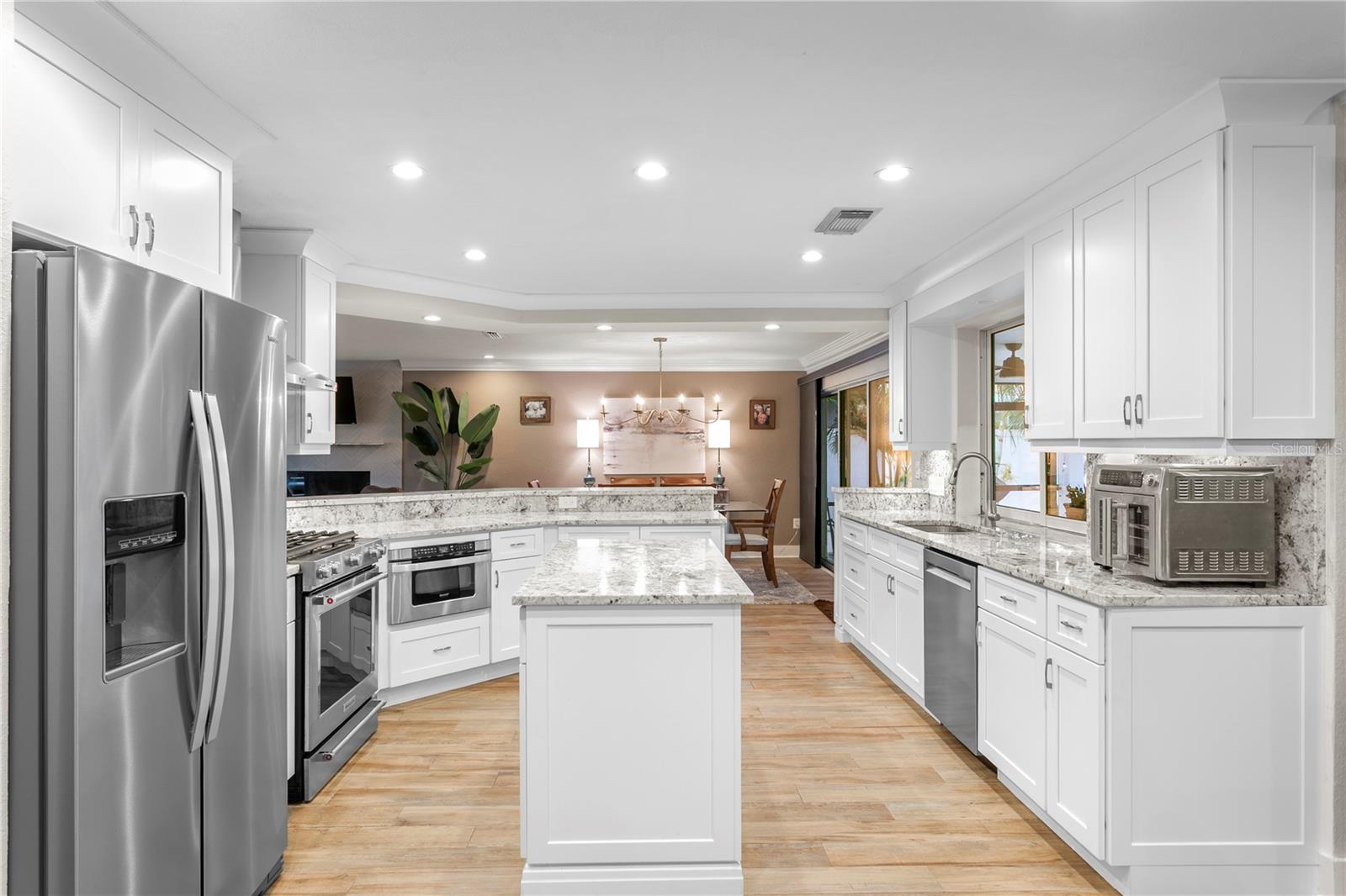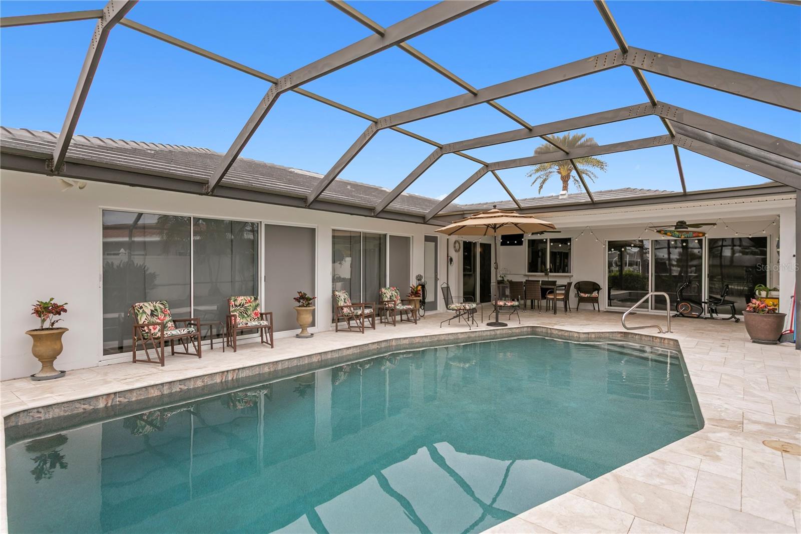 Experience the FLORIDA COASTAL LIFESTYLE you’ve always dreamed of. This beautifully updated waterfront home offers a HEATED POOL, direct Intracoastal access, and a PRIVATE DOCK with a 16,000 lb lift plus space for a SECOND VESSEL—just minutes from open boating waters. From the moment you arrive, the home stands out with its lush landscaping, manicured lawn, PAVER DRIVEWAY, fresh exterior paint, and NEW ROOF. Sunlight dances across the exterior, hinting at the warmth and style waiting inside. Step through the welcoming foyer and into a living space designed for COMFORT AND ELEGANCE. Crown molding, thoughtfully placed lighting, and a COZY FIREPLACE create an inviting atmosphere perfect for relaxing or entertaining. The dining area flows seamlessly from the living room and overlooks both the pool and kitchen—an ideal setup for gatherings, whether you’re serving from the outdoor grill or your BEAUTIFULLY UPDATED KITCHEN. The kitchen truly is the heart of the home, featuring white shaker cabinetry, STYRATEGIC TASK LIGHTING, upscale stone counters, stainless appliances, counter seating, and a VERSITILE ISLAND. When it’s time to unwind, the spacious family room offers the perfect spot to watch the game, complete with a custom entertainment bar, beverage fridge, ONYX COUNTER, and festive lighting. The primary suite is a luxurious retreat with serene views of both the Intracoastal and the pool. It includes a large closet and a FULLY UPDATED EN SUITE BATH with a curb-less walk in shower, designer mirrors, premium fixtures, and stylish lighting. FOUR ADDITIONAL BEDROOMS are bright and generously sized, including one with its own EN SUITE BATH. A beautifully updated full bath also serves the pool and guest rooms. The screened, HEATED POOL is a showstopper—surrounded by a travertine deck and designed for year-round enjoyment. For boaters, the private dock is fully equipped with ELECTRIC, WATER, a dock box, and a fish cleaning station. A personal security system gives you PEACE OF MIND whether at home or away. With the Intracoastal, Boca Ciega Bay, and the Gulf just minutes away, this is a true BOATER"S PARADISE. All of this is located just minutes from Downtown St. Pete, world class beaches, restaurants, shops, and airports. A rare blend of LUXURY, LOCATION and COASTAL LIFESTYLE—this home truly has it all.