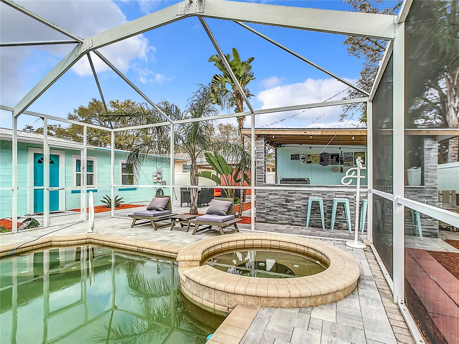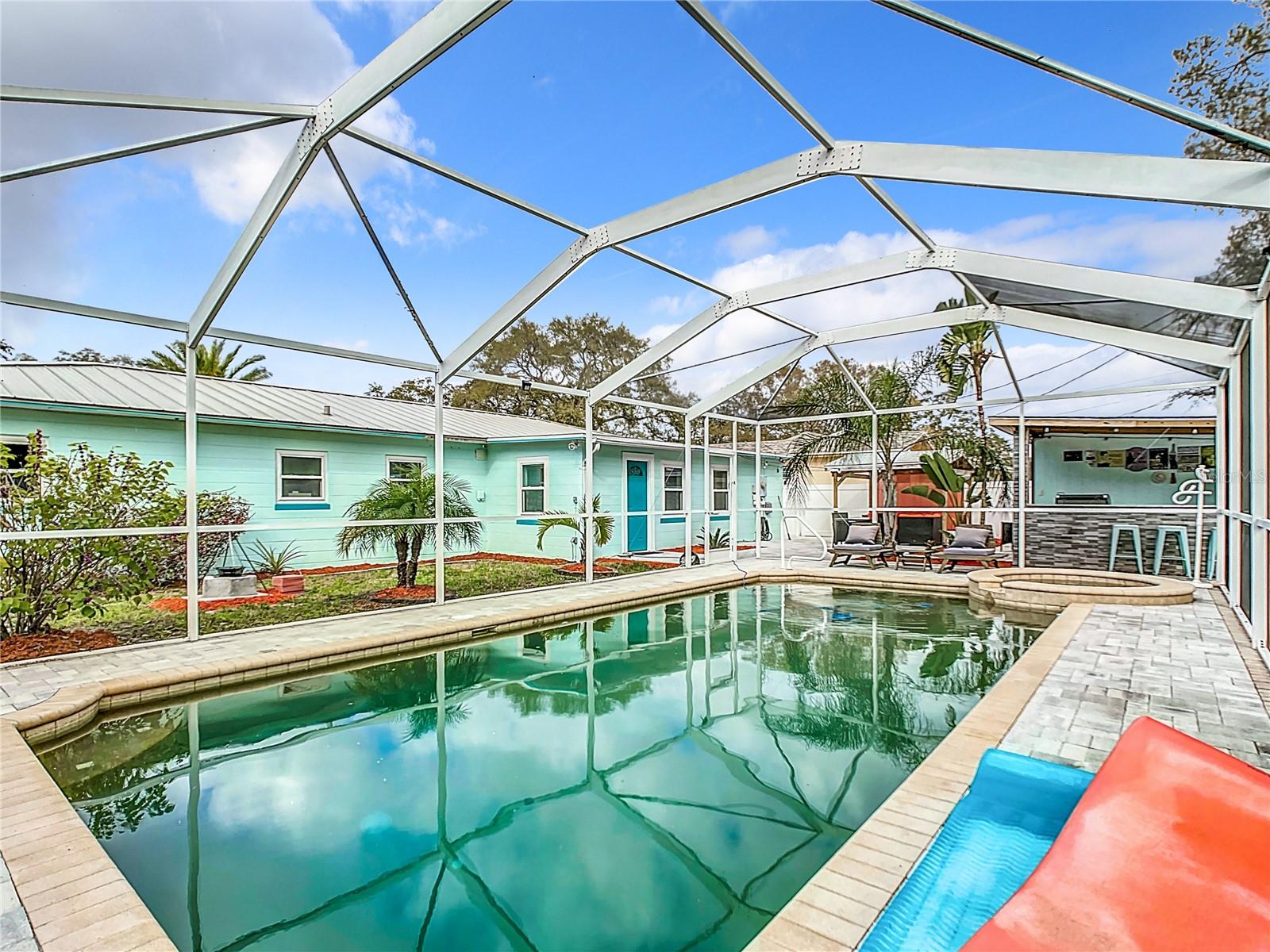 Welcome to this fully renovated 3-bedroom, 2-bath pool home in St. Petersburg, FL, ideally located just minutes from Gulfport, downtown St. Pete, Gulf beaches, and I-275. Nestled in a quiet neighborhood, 6210 6th Ave S offers the perfect combination of privacy, modern upgrades, and central convenience—close to shopping, the Pinellas Trail, Stetson Law School, and major commuter routes. This move-in-ready home features fresh interior paint, new drywall, upgraded insulation, luxury vinyl plank flooring, marble windowsills, and high-end designer lighting and ceiling fans throughout. The updated kitchen is a showstopper with marble countertops, stainless steel appliances, stainless steel exhaust hood, solid wood cabinetry, and a blue glass tile backsplash, ideal for both everyday living and entertaining. The primary bedroom suite includes a private en-suite bathroom, while the second bedroom has been converted into a spacious walk-in closet with a queen-size Murphy bed, offering flexible guest accommodations. The third bedroom is privately located at the rear of the home near the home office, perfect for remote work or guest use. Both bathrooms have been completely remodeled with new plumbing, walk-in showers, modern vanities with marble countertops, updated lighting, mirrors, sinks, and toilets. Step outside to your private backyard oasis, designed for Florida living and entertaining. Enjoy the in-ground swimming pool and spa, new gazebo with outdoor lighting, brand-new outdoor kitchen, storage shed, and pavered circular driveway. Additional upgrades include a BRAND-NEW metal roof with warranty, tankless water heater, double-pane windows, new attic insulation, and a Google Nest thermostat. Home is offered unfurnished, with furnishings negotiable. This updated pool home near Gulf beaches is a rare find—schedule your private showing today.