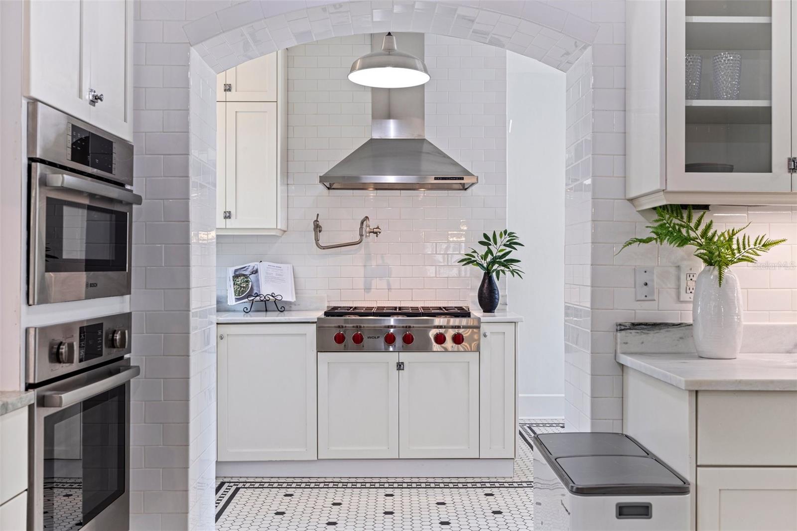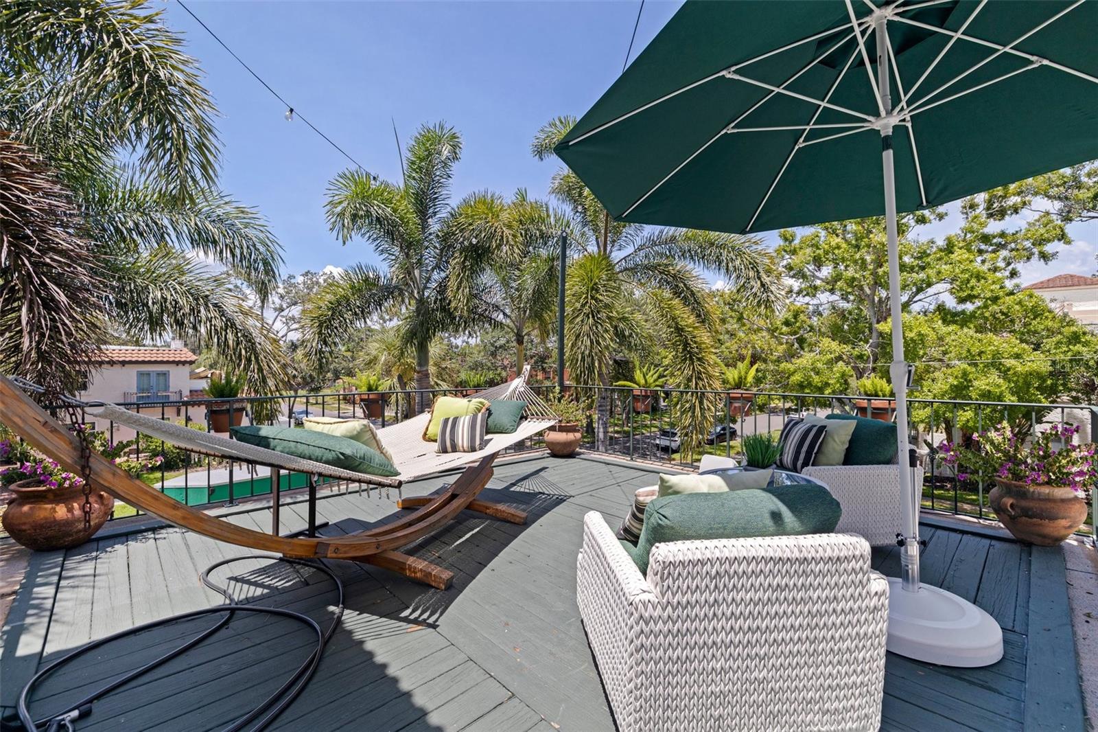 Step into a piece of St. Petersburg history with this exceptional Mediterranean estate in the coveted heart of Old Northeast in a NON FLODD ZONE—a home where timeless elegance meets modern luxury in one of the most desirable neighborhoods in the city. Sitting on a large corner lot along the coveted Cherry St, this residence boasts an impressive Mediterranean facade complemented by beautifully landscaped grounds. Inside, the home is filled with distinctive architectural features such as gleaming hardwood floors, intricate mosaic tile, vintage glass doorknobs, and crown molding that highlight the craftsmanship of a bygone era. As you enter, you're immediately captivated by a grand foyer, where an expansive skylight floods the space with radiant natural light. The awe-inspiring mosaic tile work beneath your feet is a true masterpiece, setting the tone for the elegance that flows throughout this exceptional home. The formal living room, anchored by a striking marble gas fireplace, creates an inviting ambiance for both quiet moments and entertaining. Adjacent, a versatile space, currently used as additional entertaining space, could easily serve as a 4th bedroom—thanks to its proximity to a full bathroom—or as a home office. The gourmet European kitchen features honed granite countertops, timeless subway tile, and deluxe appliances, including a brand-new refrigerator and a new Wolf 6-burner natural gas range, built-in microwave, and wall oven. For formal gatherings, the dining room offers an elegant setting, while the breakfast nook provides a charming retreat for morning coffee, opening seamlessly to a private patio—perfect for al fresco dining and enjoying the Florida sun. The second floor houses the private primary suite, offering an updated bathroom with tons of storage and a spacious walk-in shower. Two guest rooms share a beautifully updated bathroom, and the showstopper of the home is the rooftop terrace. This rare feature provides breathtaking views and is an exceptional space for entertaining or unwinding while enjoying the tranquility of the neighborhood. Outside, the expansive corner lot offers ample potential, with renderings available for a future plunge pool to create your ultimate backyard retreat. The property also boasts an attached 2-car garage and a front driveway—a unique feature in this coveted neighborhood. Recent updates include all-new plumbing, fresh interior and exterior paint, updated electrical, a new HVAC system, water purification system, new landscaping with irrigation and some updated Pella windows ensuring modern comfort alongside vintage charm. Located just steps from the sparkling waters of Tampa Bay, this home offers an idyllic lifestyle with scenic walks, bike rides, and easy access to downtown St. Petersburg’s vibrant waterfront dining, cultural venues, and boutique shopping. Whether by bike, foot, or golf cart, everything you need is within reach. Experience luxury living at its finest in this rare, beautifully restored estate—a true showcase of Mediterranean elegance and modern sophistication.