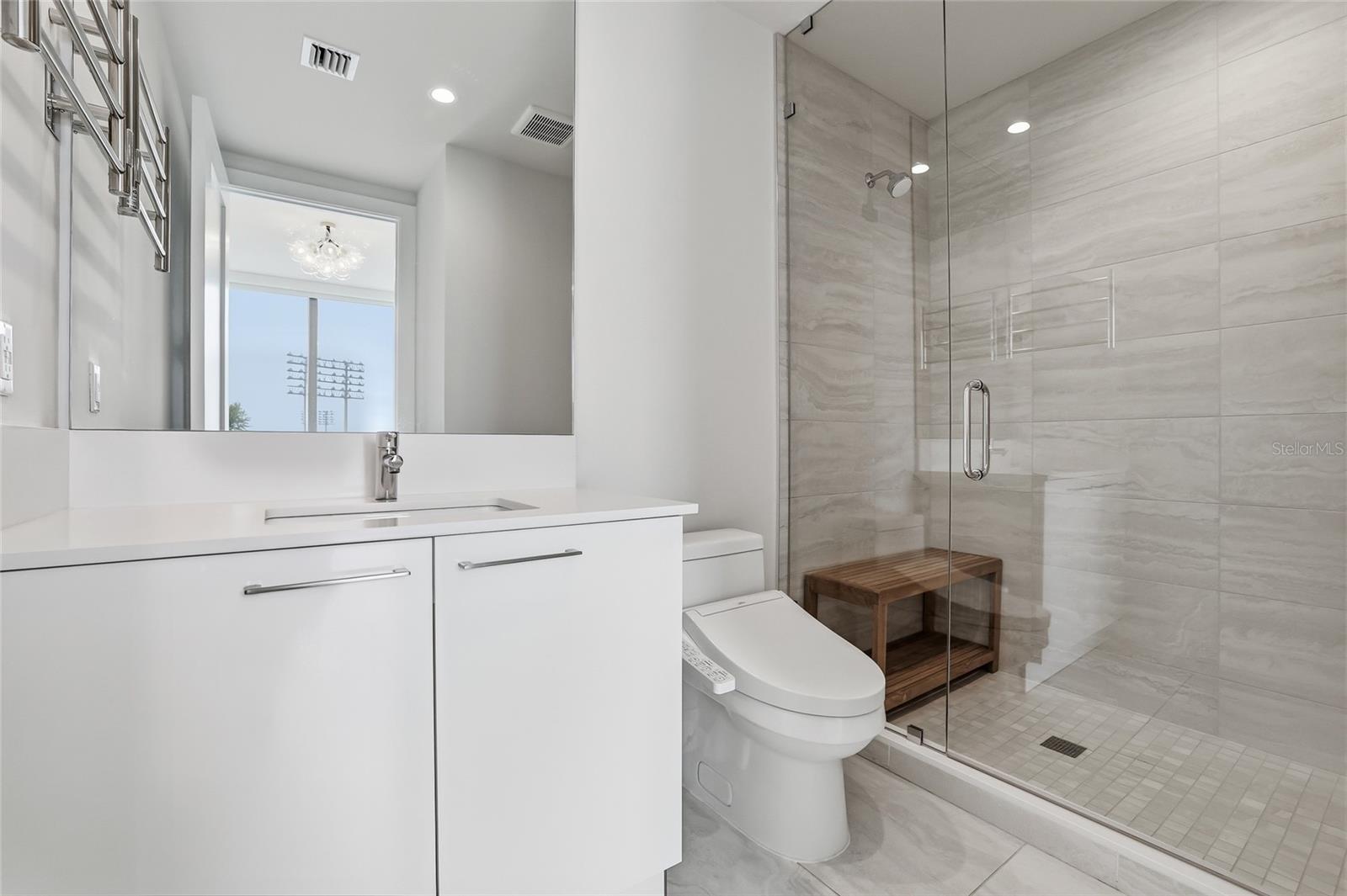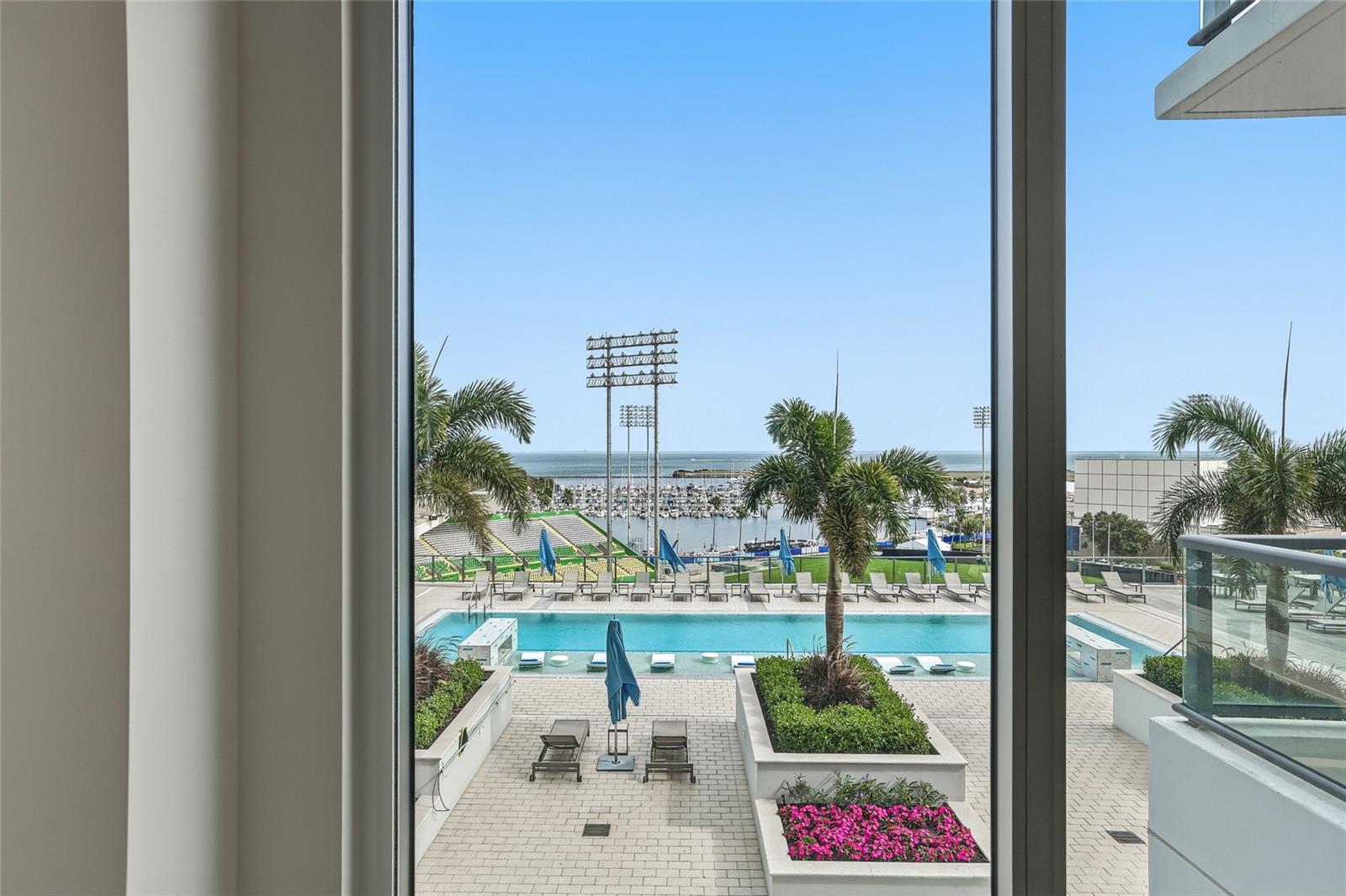 Welcome to Saltaire—one of Downtown St. Petersburg’s premier luxury high-rises in the center of it all. This contemporary 2-bedroom, 3-bath + den residence offers a bright, open layout with tall ceilings and refined designer finishes throughout. The gourmet kitchen features top-of-the-line JennAir stainless steel appliances, including a 42" built-in refrigerator, microwave/convection oven, electric cooktop, stainless steel canopy hood, and a front-load washer and dryer. Enjoy imported European cabinetry, quartz countertops, Toto washlets, towel warmers, California Closet systems, window shades, and a generous private terrace with stunning views. Saltaire’s showpiece 7th-floor amenity level includes a resort-style pool and Whirlpool spa, expansive deck with cabanas, fire pits and lounge areas, a fitness center, social room with catering pantry, and an artificial-turf dog park—plus complimentary Wi-Fi in amenity areas. The building also offers 24/7 security, controlled access, and concierge services. Just steps to waterfront parks, dining, shopping, arts venues, the St. Pete Pier, Al Lang Stadium, and the Saturday Morning Market—Saltaire delivers the very best of Downtown St. Pete living.