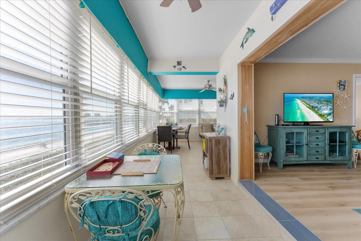 Welcome to refined coastal living on the water in this stunning first-floor end unit located in the sought-after Somerset House at Point Brittany—Seller reports no flooding during recent storms, offering peace of mind along with major upgrades including a NEW A/C and NEW water heater for modern efficiency and comfort. Add in full, unobstructed views of Boca Ciega Bay, and you’ve found a truly special retreat. Offered fully furnished, the home features luxury vinyl plank flooring throughout, creating a seamless, coastal flow from room to room. The open living and dining areas are filled with natural light and connect directly to the enclosed Florida room, where wall-to-wall hurricane-grade windows frame sweeping Bay views—bringing the outdoors in while allowing for year-round enjoyment. With access from both the living room and primary bedroom, this space becomes the heart of the home—perfect for morning coffee, lazy afternoons, or sunset unwinding. The thoughtfully designed split bedroom floor plan offers privacy and comfort, with walk-in closets in both bedrooms and beautifully updated bathrooms featuring granite countertops and high-end cabinetry. Every detail of this home reflects an easy lifestyle in a maintenance-free community known for its resort-style amenities, gated waterfront setting, active social calendar, clubhouse, fitness center, heated pool and spa, tennis , walking paths, fishing pier, and unbeatable proximity to Gulf beaches, downtown St. Petersburg, and Tampa International Airport. Whether enjoyed as a primary residence, a seasonal escape, or a lock-and-leave waterfront retreat, this condo delivers the ideal blend of style, comfort, and confidence.This is waterfront living at its finest—and it’s ready to be experienced in person!