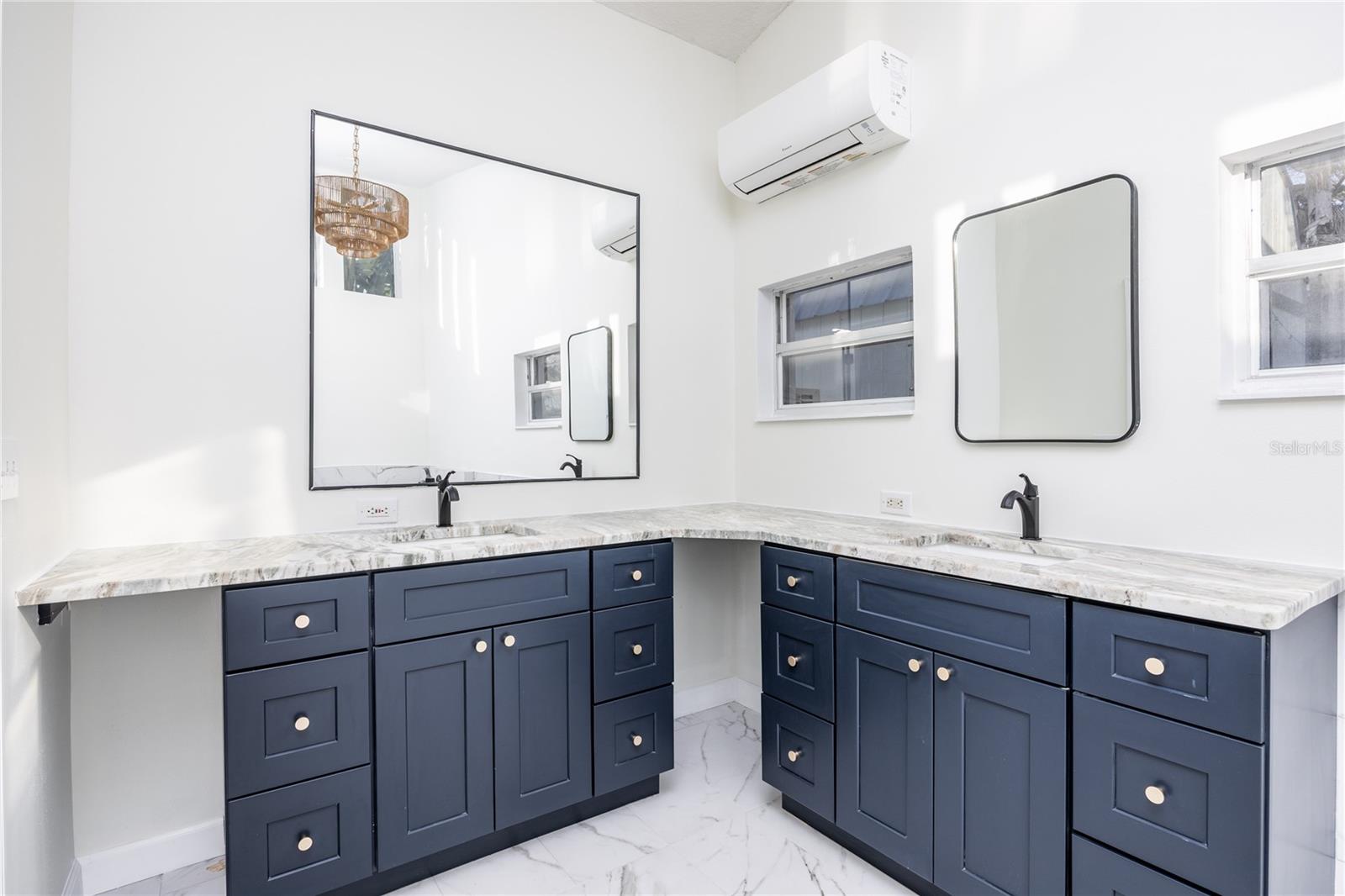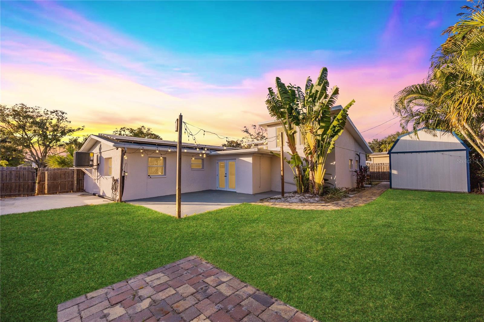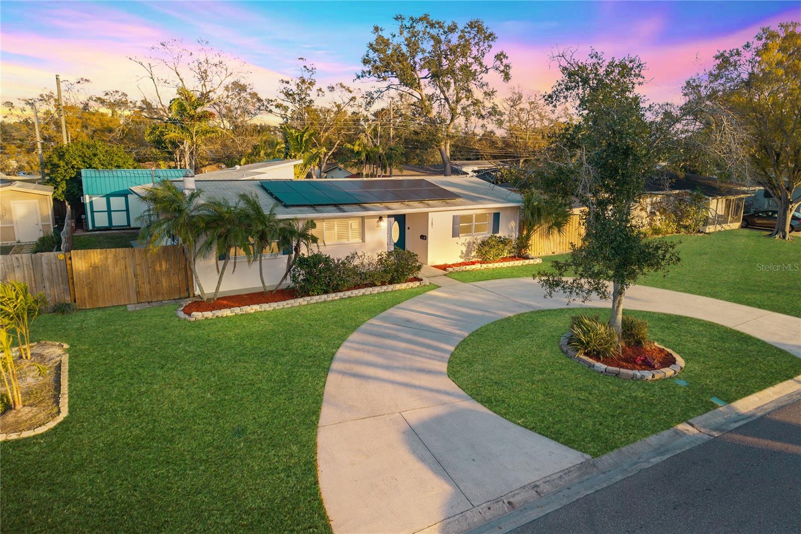 Welcome to 5681 Cedar St NE in St. Petersburg, a beautiful fully remodeled 4-bedroom, 2-bath single-family home offering 1,830 sq ft of thoughtfully designed living space. This move-in ready home features all- brand new cabinets, doors, appliances, and flooring, along with a brand-new gorgeous custom master bathroom complete with dual vanities, a dual shower, and a relaxing soaking tub. Enjoy peace of mind with a new A/C system, mini-splits, and a 2025 hot water heater, plus fully paid-off solar panels installed in 2018 for energy efficiency. Owner's average electricity bill is $35/month. The split floor plan is ideal for privacy, while the versatile flex space works perfectly as an office, additional bedroom, playroom, or exercise area. Outside, the large backyard with concrete pads is ready for all your toys, complemented by a huge storage shed. Ideally located near a golf course, private schools, a large park, great neighborhoods, and exciting new amenities like the brand-new YMCA and Whole Foods, this home is also just minutes from downtown St. Pete with easy access to I-275, Tampa, and the international airport—a perfect blend of comfort, convenience, and lifestyle in a fully remodeled home.