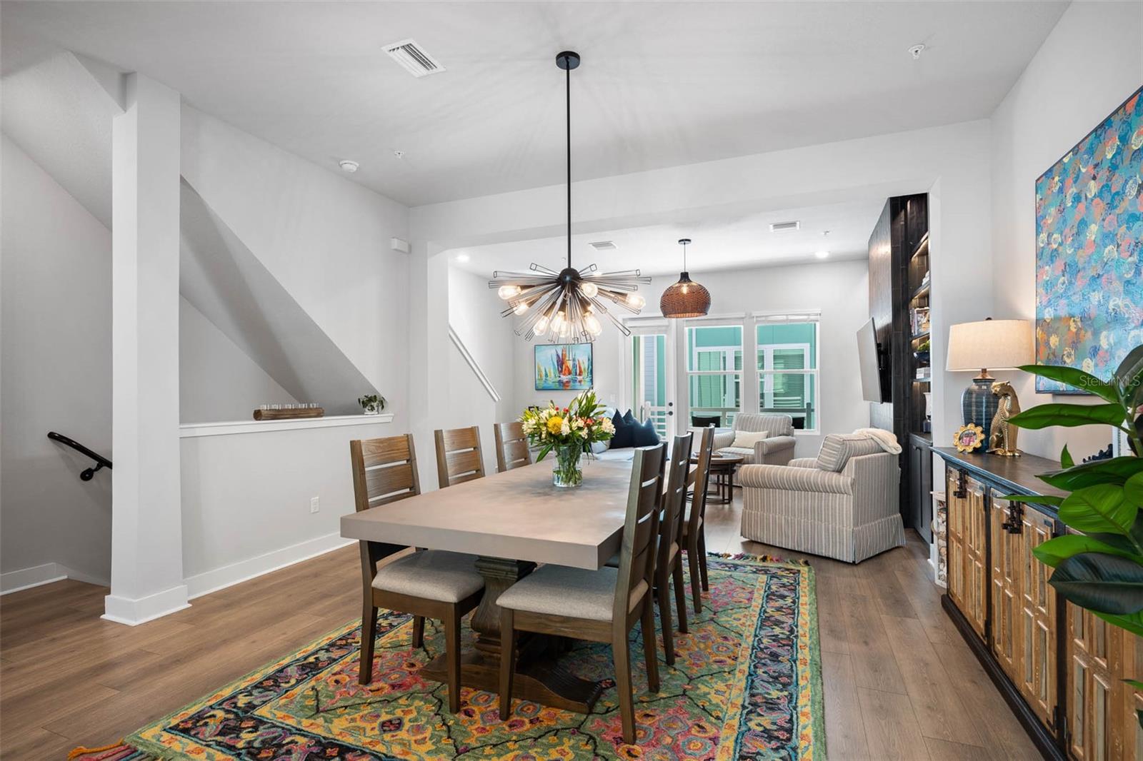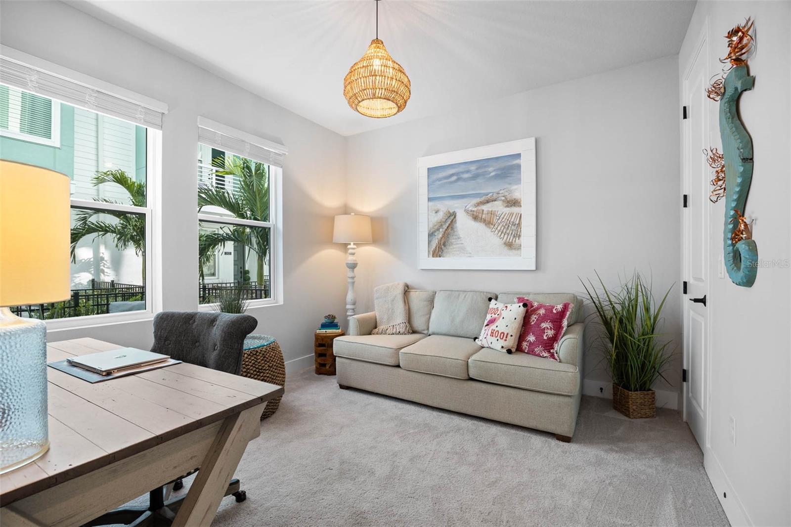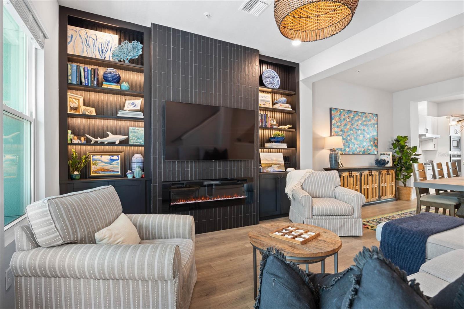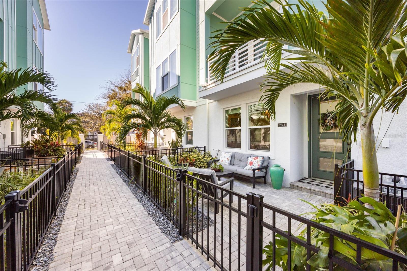 CUSTOM-CURATED MODERN TOWNHOME IN THE HEART OF GRAND CENTRAL DISTRICT | Welcome to this exceptional three-bedroom, three-and-a-half-bathroom townhome by quality-driven David Weekley Homes in the heart of it all just off of Central Avenue in the coveting neighborhood of Grand Central. This home offers a signature blend of style and functionality. Built in 2023, this nearly new residence showcases impeccable craftsmanship with quality finishes throughout, presenting an incredible opportunity for those seeking modern living without the wait of new construction. The heart of the home unfolds on the second level, where an open floorplan creates seamless flow between the expansive living room, dining area, and chef’s kitchen. A stunning custom built-in wall featuring an electric fireplace serves as the designer-level centerpiece of the living space, adding both ambiance and sophisticated elegance that elevates this home far beyond typical new construction. Soaring ceilings and elegant tray ceiling details enhance the sense of space, while engineered hardwood flooring adds warmth and sophistication to the main living areas. The kitchen is a culinary enthusiast’s dream, featuring a generous island perfect for meal prep and casual dining, complemented by built-in oven, cooktop, and a full suite of quality appliances including a modern tankless water heater for endless hot water and energy efficiency. One of this townhome’s standout features is its thoughtful three-story layout, offering exceptional versatility for today’s lifestyle. The main level includes a private bedroom with en suite bathroom, ideal as a guest suite, home office, or multi-generational living space. The top floor is dedicated to relaxation, with two additional bedrooms each boasting their own en suite bathrooms for ultimate privacy. The primary suite is a true retreat, featuring abundant natural light, plush carpeting, a spacious walk-in closet, and a spa-like bathroom with dual sinks. Quality construction is evident in every detail, from the durable block and stucco exterior with Craftsman and traditional architectural styling to the reliable shingle roof and thoughtful outdoor features including an irrigation system, rain gutters, and exterior lighting. The welcoming spacious fully fenced front patio and entrance provides charming curb appeal, while the balcony offers the perfect spot for morning coffee or evening entertaining. The fully gated townhome community offers added privacy and security. An attached two-car garage with automatic opener allows for convenient ground level access and additional storage.The attached two-car garage with automatic opener provides convenient ground-level access and ample storage. Embrace a low-maintenance lifestyle with comprehensive HOA services covering grounds maintenance, pest control, insurance, escrow reserves, and exterior repairs, allowing you to enjoy your home worry-free, whether as a full- time residence or a seasonal retreat. Furnishings are negotiable, presenting a potential turn-key opportunity. The location in the Grand Central District places you in one of St. Petersburg’s most dynamic and desirable neighborhoods. Its proximity and ease of access to downtown’s vibrant dining scene, cultural attractions, shopping, entertainment, and nearby beaches make it an exceptional place to call home. Don’t miss this rare opportunity to own a like-new David Weekley home with designer-level upgrades in this sought-after community.