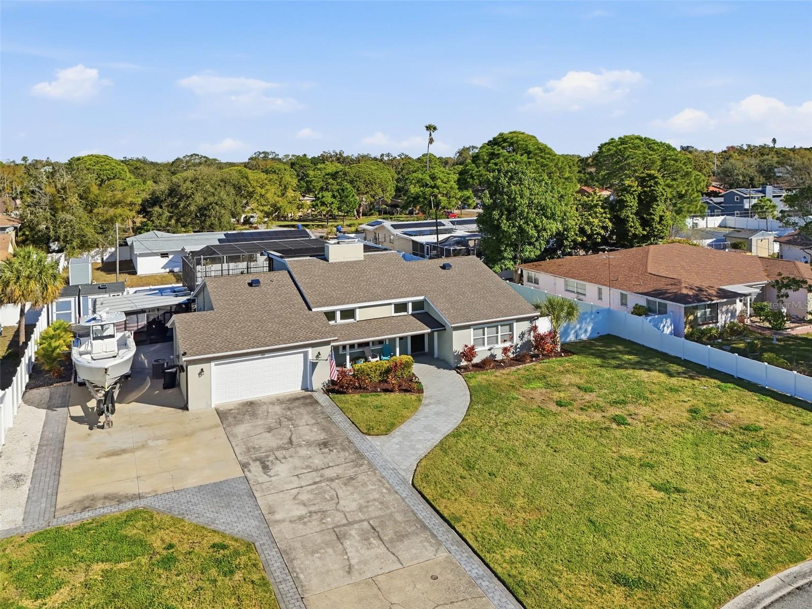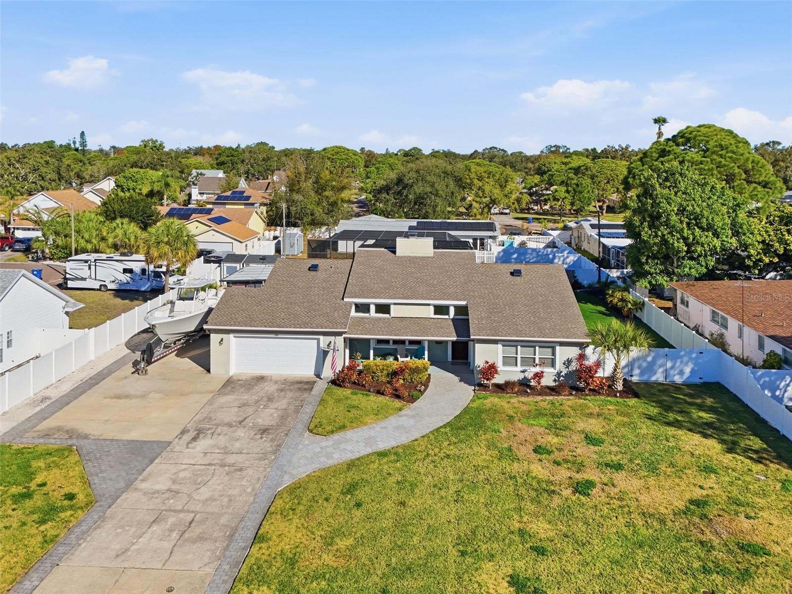 Step into this beautiful entertainer’s dream home, perfectly designed for gatherings inside and out in the sought-after Lakewood Estates. The spacious open floor plan flows effortlessly from the chef-inspired kitchen to the stunning backyard oasis, creating an ideal setting for parties, holidays, and casual hangouts alike. The entertainer’s kitchen features dual refrigerators, incredible storage, and generous counter space, making prep and cleanup a breeze. A stylish dry bar with wine fridge and ice maker keeps drinks chilled and ready for guests, while the open layout ensures you’re always part of the conversation. Outside, enjoy low-maintenance turf and elegant travertine pool decking surrounding a sparkling, solar-heated pool. This private outdoor retreat offers multiple seating areas for lounging, dining, and sunbathing, so you can entertain year-round with minimal upkeep. Situated on an oversized lot, there’s ample parking as well as room to store your boat and RV, complete with convenient hook-ups. With its blend of thoughtful indoor design and resort-style outdoor living, this home is truly made for those who love to entertain and live comfortably.