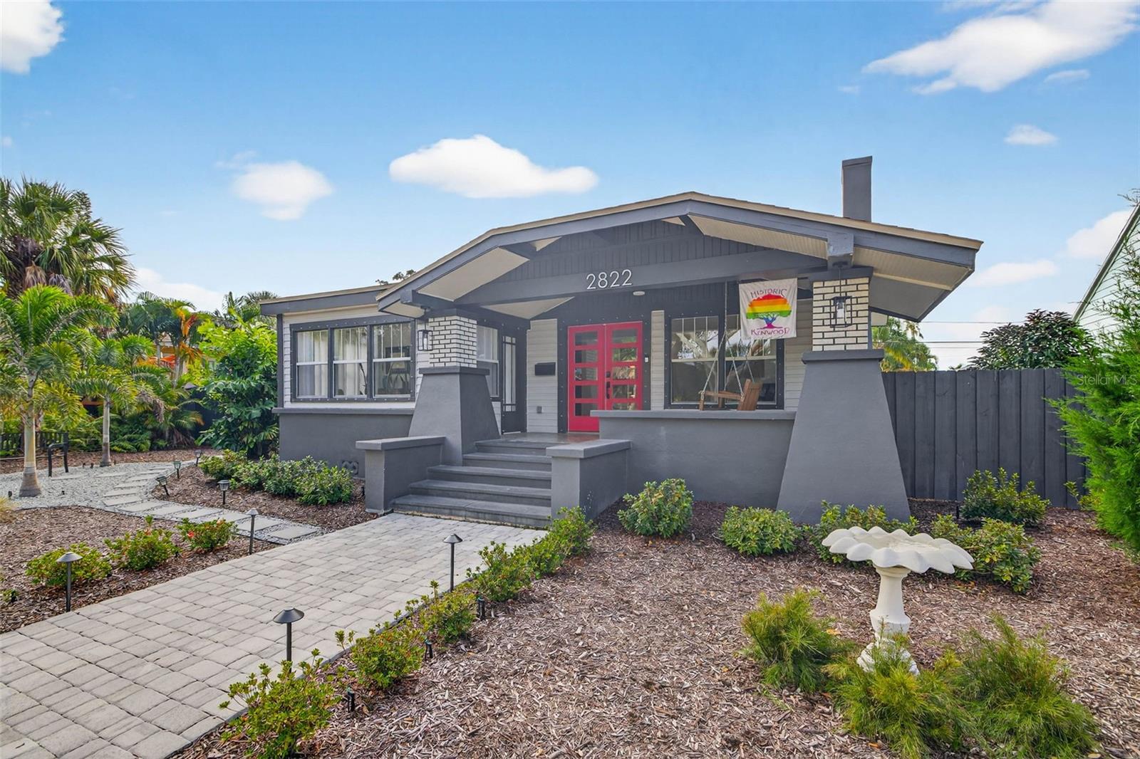 Just off the park down a tree-lined brick street in the highly sought after neighborhood of Historic Kenwood is 2822 Burlington Avenue. This 1925 Craftsman Bungalow has been thoughtfully reinvented and is unmatched with its design and beauty. As you approach the home you are greeted by a beautifully landscaped award winning yard and a gracious front porch which still boasts its original Cuban tile. While entering the home the tone is immediately set as a classically updated home with coffered ceilings, original details and LVP flooring throughout. The living room graces itself with a wood burning fireplace accentuating the original inset cabinetry. Adjacent to the living room is a formal dining space for those celebratory gatherings with your loved ones. Just off the dining area is a sun-drenched sitting room overlooking the front yard which would make for a beautiful reading nook. Beyond the formal dining is your spacious chef's kitchen with a nine foot leather quartzite center island. Plenty of room for entertaining while you prepare dinner with easy access to the wet bar. Flowing off the kitchen is an adjoining scullery for added storage and laundry room. And because we know you want more... double the size of your kitchen by opening the glass retractable wall to a screened-in Florida room. Perfect for indoor/outdoor entertaining. To the west of the home are two equally sized bedrooms with a beautiful shared bath and plenty of storage, convenient for guests as it provides privacy from the rest of the home. In the rear of the property is a third bedroom and the primary with its own stunning ensuite and walk-in closet. The primary bathroom was carefully designed as you can decide if you wish to shower inside or out depending on your mood. The fourth bedroom is currently being utilized as a media room. Situated on this elegant oversized lot is a new heated saltwater pool and hot tub with ledge seating and waterfall features. Adding to this tropical oasis, down the path of gorgeous pavers you will find fire pit seating and a garden all surrounded by mature palms to ensure total privacy. Plenty of room for your car as it has covered parking off the alley. Don't miss out on owning this "One Of A Kind" Historic Kenwood luxury home.