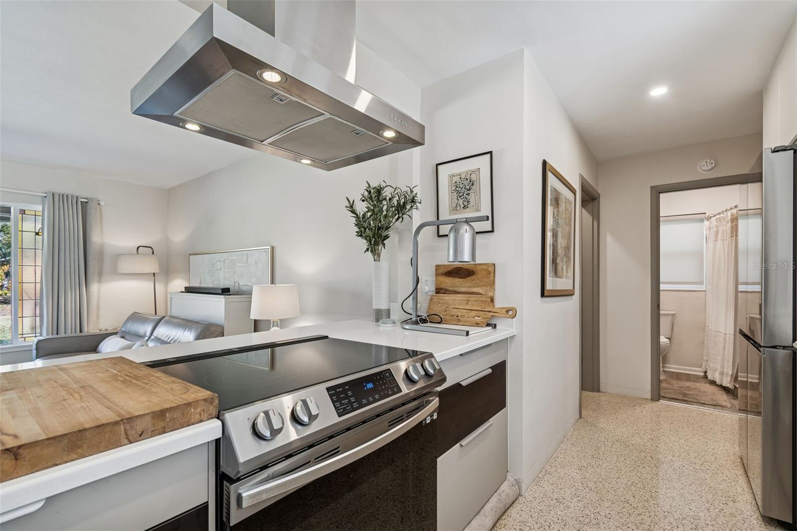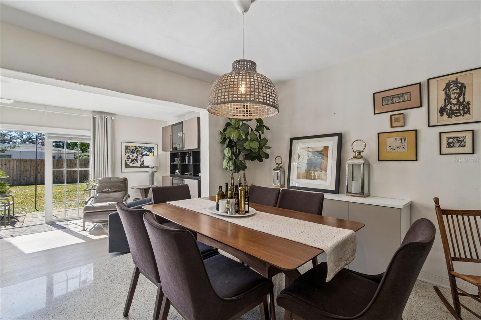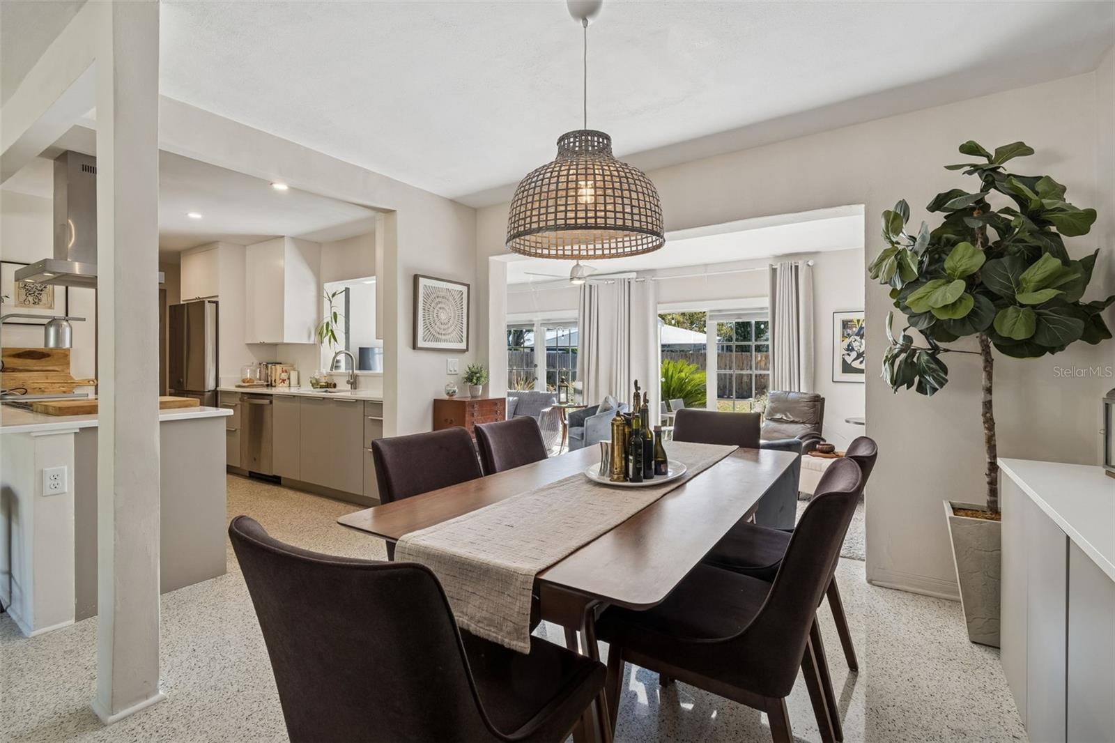 Located in the highly sought-after Pink Streets neighborhood, approximately 1,000 feet from Pinellas Point Park and Bay, HIGH & DRY COMPLETELY... this extensively updated 4-bedroom, 3-bath residence offers an exceptional blend of luxury living, family flexibility, and long-term investment value. Enjoy walkable waterfront access, bay breezes, and views toward the iconic Skyway Bridge within a subtle, tree-lined setting. Shopping,hospitals,pubs,restaurants,museums,clubs,airports,ALL CLOSE. The interior features a spacious, light-filled layout with terrazzo floors complemented by select LVT and porcelain tile. The main living area includes recessed lighting, a modern built-in bar, and a large picture window with stained-glass side panels overlooking the landscaped front yard. The refreshed kitchen (2023) is designed for both everyday living and entertaining, featuring flat-panel cabinetry with white uppers and sand-tone lowers, white quartz countertops, coordinating backsplash, counter-height seating for four, and drawer-forward lower cabinetry with hidden interior storage. Energy Star appliances include a Samsung 4-door FlexZone refrigerator/freezer with dual ice options, Samsung convection range with self-clean and warming burner, GE dishwasher with steam and delay settings, stainless dual-zone flat vent hood, and a ½-horsepower garbage disposal. A private ensuite bedroom with kitchenette and separate side entrance provides excellent flexibility for multigenerational living, guests, home office use, or income-producing potential. Bathrooms were refreshed in 2023, along with interior and exterior paint, resulting in a move-in-ready home. Significant system and efficiency upgrades include a 14-SEER central air conditioning system, an additional mini-split A/C unit in one bedroom, a 40-gallon water heater, R-30 attic insulation added in 2023, attic fan, and a 2025 average monthly electric cost of approximately $226 per month. The roof was replaced in the third quarter of 2022. Hurricane-impact rated Low-E windows were installed in all bedrooms and bathrooms in 2025, along with new marble window sills and new wood sills in the ensuite. Additional enhancements include pull-down honeycomb shades on all windows and both sets of French doors (2024), blackout drapery in the living and family rooms, and new ceiling fans installed in three bedrooms and the living room/bar area (2023). Exterior features support both lifestyle and cost efficiency, including a B-Hyve app-controlled irrigation system (2024) supplied by a new shallow well installed in 2024, helping reduce water expenses. Outdoor living is highlighted by a tiled entry porch with wood-plank ceiling, French doors with market lighting, privacy hedges, foxtail palms, a mature mango tree, new wood fence panels installed in 2025, and a large locking wood storage shed. Smart-home features include a Nest thermostat (2026), Eufy smart front door lock, three Ring cameras with motion spotlights, and one Ring doorbell. A dedicated laundry/utility room and Container Store Elfa closet systems in two closets complete this thoughtfully maintained home. This property offers outstanding versatility for families, multigenerational households, or buyers seeking a high-quality primary residence with strong operational fundamentals and investment appeal in one of St. Petersburg’s most desirable neighborhoods. ENCHANTING UNIQUE AREA. Front and back Mango trees do not convey.
