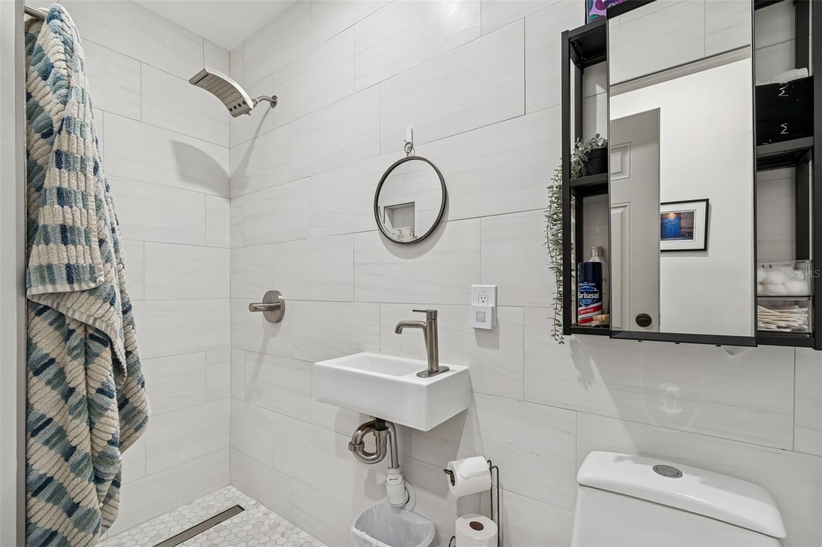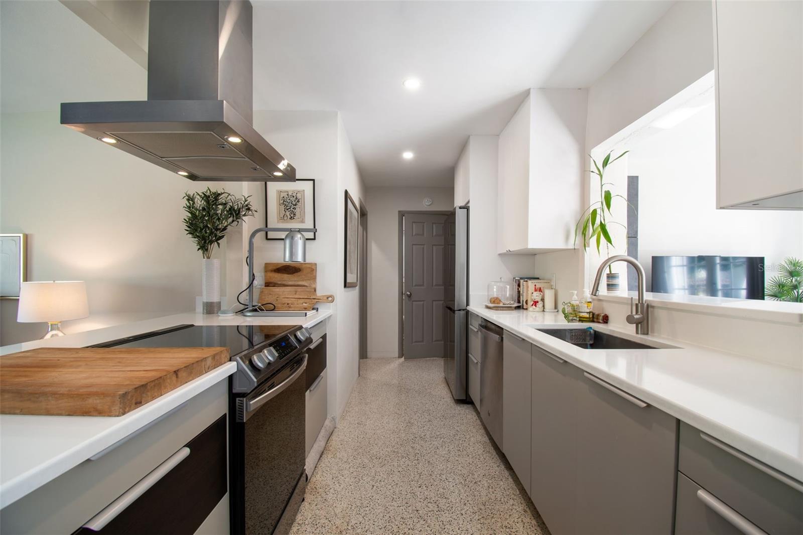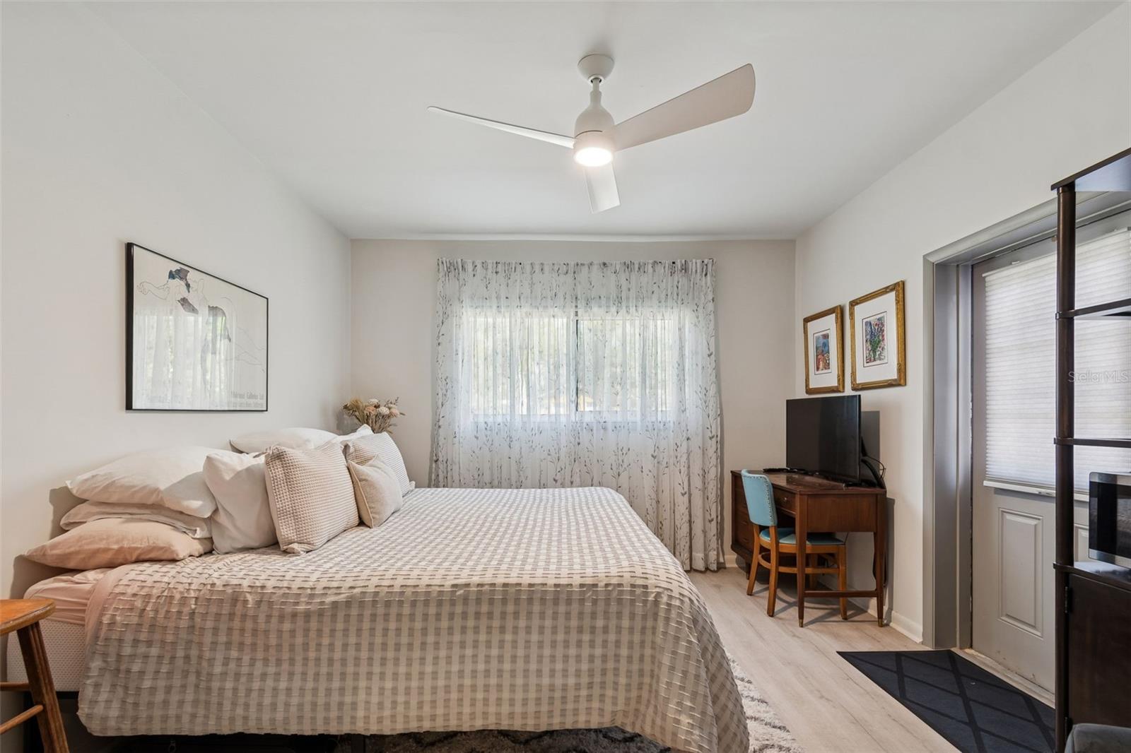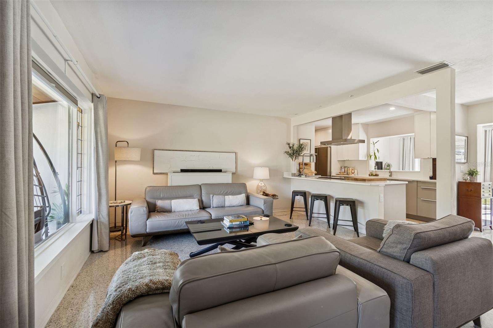 Located in the highly sought-after Pink Streets neighborhood, approximately 1,000 feet from Pinellas Point Park and Bay, HIGH & DRY COMPLETELY... this extensively updated 4-bedroom, 3-bath residence offers an exceptional blend of luxury living, family flexibility, and long-term investment value. Enjoy walkable waterfront access, bay breezes, and views toward the iconic Skyway Bridge within a subtle, tree-lined setting. Shopping,hospitals,pubs,restaurants,museums,clubs,airports,ALL CLOSE. The interior features a spacious, light-filled layout with terrazzo floors complemented by select LVT and porcelain tile. The main living area includes recessed lighting, a modern built-in bar, and a large picture window with stained-glass side panels overlooking the landscaped front yard. The refreshed kitchen (2023) is designed for both everyday living and entertaining, featuring flat-panel cabinetry with white uppers and sand-tone lowers, white quartz countertops, coordinating backsplash, counter-height seating for four, and drawer-forward lower cabinetry with hidden interior storage. Energy Star appliances include a Samsung 4-door FlexZone refrigerator/freezer with dual ice options, Samsung convection range with self-clean and warming burner, GE dishwasher with steam and delay settings, stainless dual-zone flat vent hood, and a ½-horsepower garbage disposal. A private ensuite bedroom with kitchenette and separate side entrance provides excellent flexibility for multigenerational living, guests, home office use, or income-producing potential. Bathrooms were refreshed in 2023, along with interior and exterior paint, resulting in a move-in-ready home. Significant system and efficiency upgrades include a 14-SEER central air conditioning system, an additional mini-split A/C unit in one bedroom, a 40-gallon water heater, R-30 attic insulation added in 2023, attic fan, and a 2025 average monthly electric cost of approximately $226 per month. The roof was replaced in the third quarter of 2022. Hurricane-impact rated Low-E windows were installed in all bedrooms and bathrooms in 2025, along with new marble window sills and new wood sills in the ensuite. Additional enhancements include pull-down honeycomb shades on all windows and both sets of French doors (2024), blackout drapery in the living and family rooms, and new ceiling fans installed in three bedrooms and the living room/bar area (2023). Exterior features support both lifestyle and cost efficiency, including a B-Hyve app-controlled irrigation system (2024) supplied by a new shallow well installed in 2024, helping reduce water expenses. Outdoor living is highlighted by a tiled entry porch with wood-plank ceiling, French doors with market lighting, privacy hedges, foxtail palms, a mature mango tree, new wood fence panels installed in 2025, and a large locking wood storage shed. Smart-home features include a Nest thermostat (2026), Eufy smart front door lock, three Ring cameras with motion spotlights, and one Ring doorbell. A dedicated laundry/utility room and Container Store Elfa closet systems in two closets complete this thoughtfully maintained home. This property offers outstanding versatility for families, multigenerational households, or buyers seeking a high-quality primary residence with strong operational fundamentals and investment appeal in one of St. Petersburg’s most desirable neighborhoods. ENCHANTING UNIQUE AREA. Front and back Mango trees do not convey.