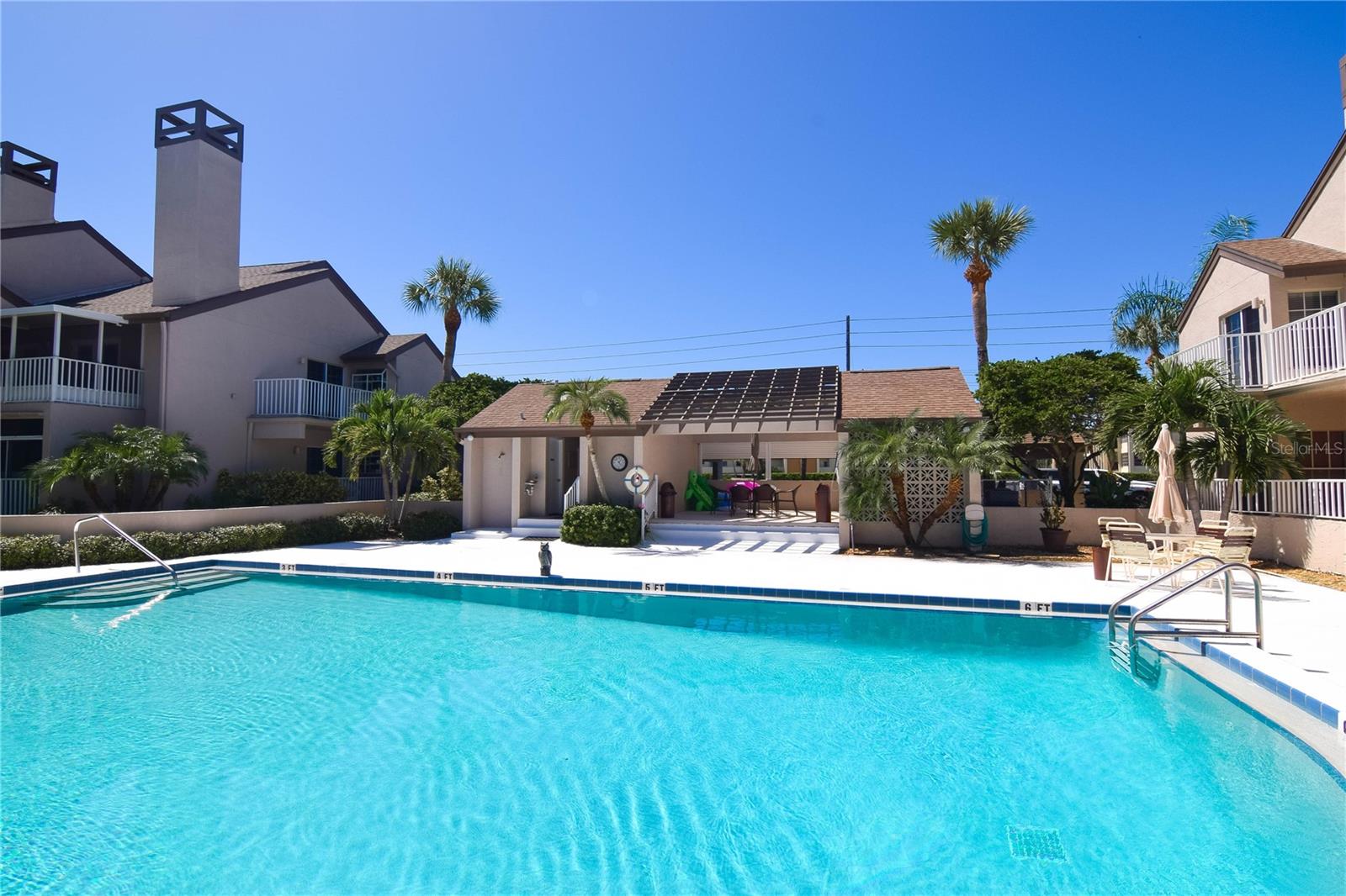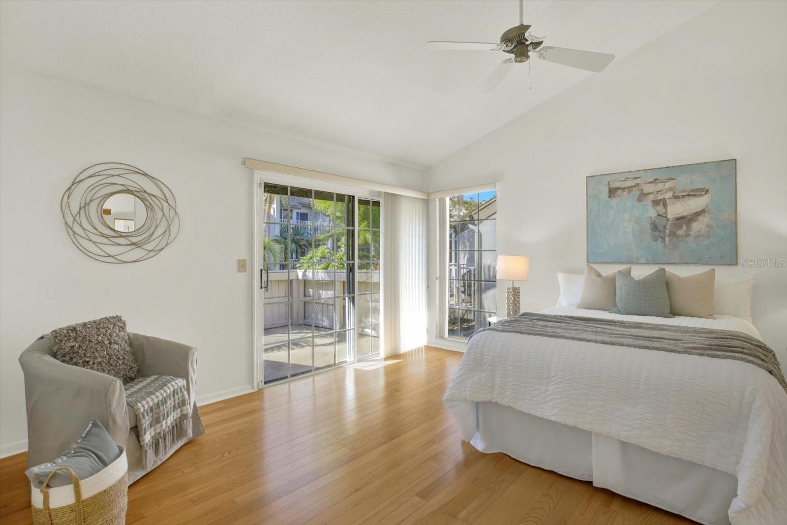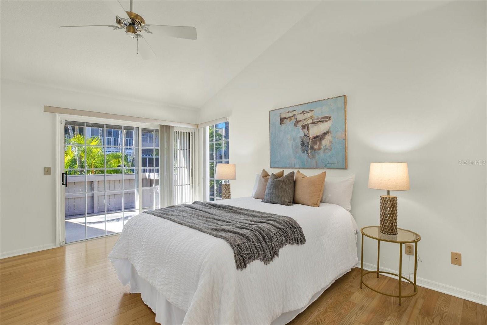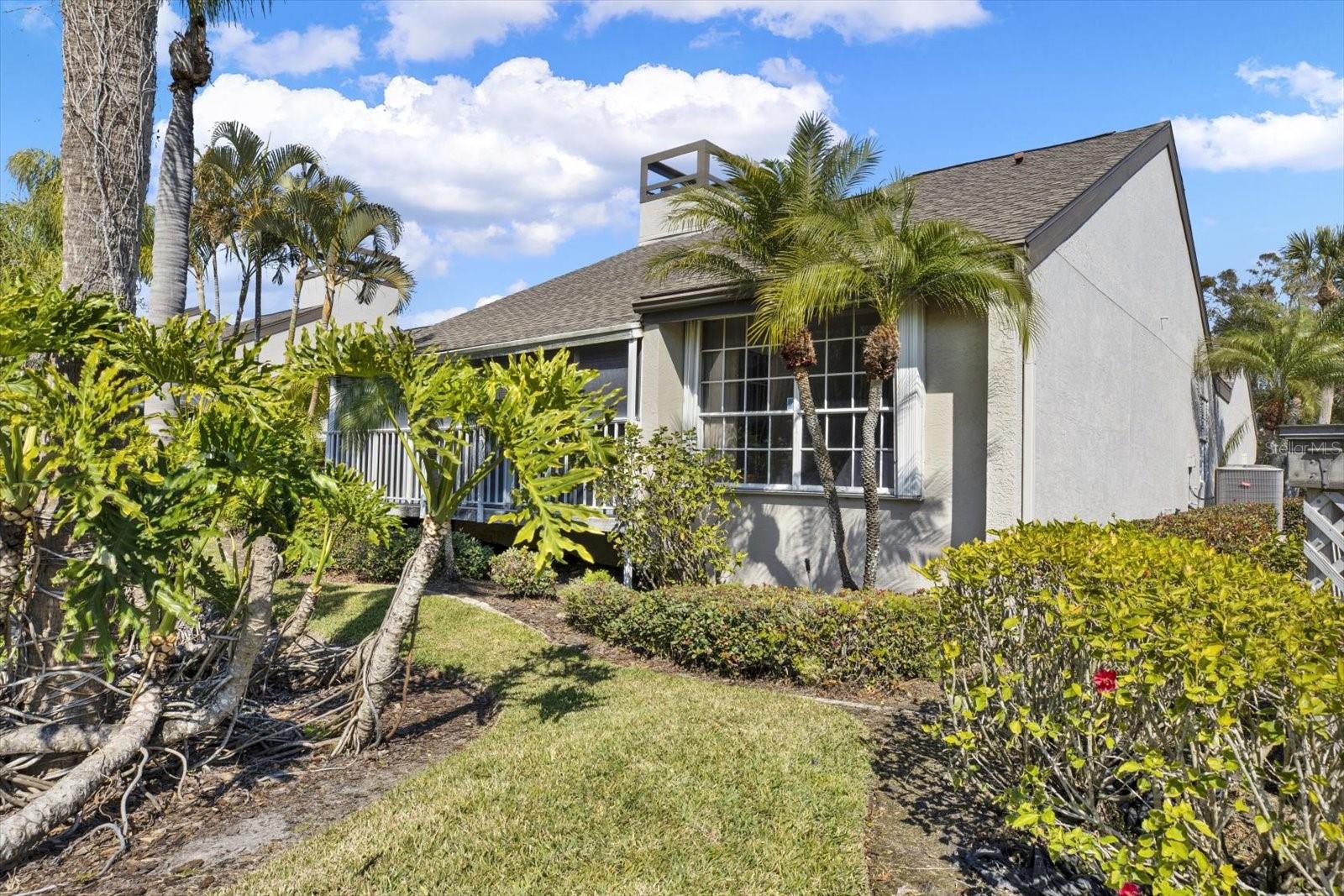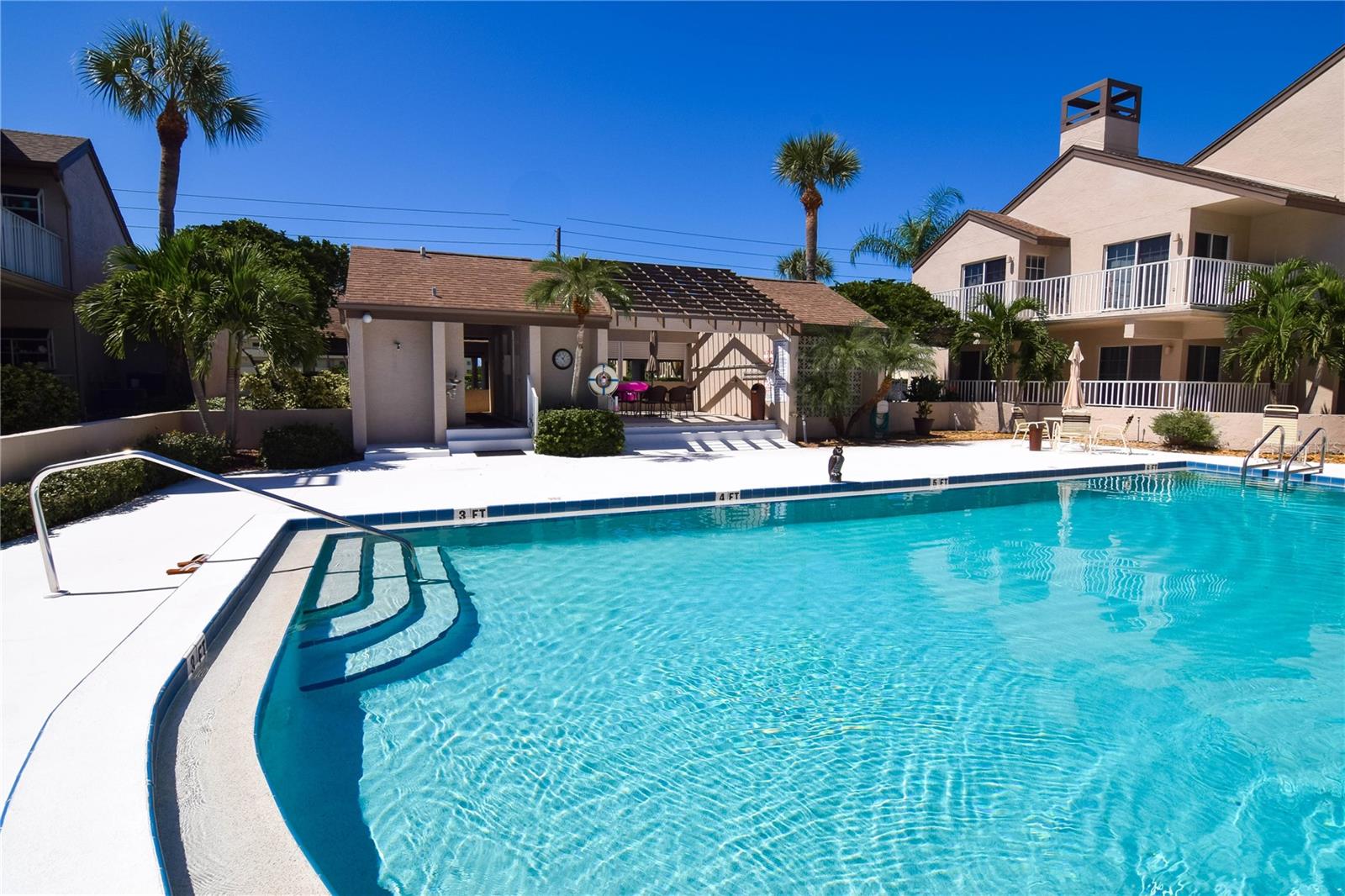 Welcome to this fabulous villa-style home in the highly desirable Thornberry Ponds Condo Community! This beautifully maintained 3-bedroom, 2-bath residence offers a spacious split floor plan with stunning hardwood flooring and ceramic tile throughout. Enter through your private courtyard gate into a bright, airy interior featuring VAULTED CEILINGS, an open layout, and abundant natural light. The inviting living room showcases a cozy electric fireplace and sliding doors leading to a large screened lanai with tranquil POND VIEWS—ideal for relaxing or entertaining. The chef’s kitchen, updated in 2014, impresses with newer appliances, rich wood cabinetry, granite countertops, a stylish backsplash, and an eat-in dining space. The expansive primary suite features a WALK-IN CLOSET and a luxurious en-suite bath with dual-sink vanity, tiled walk-in shower, and large linen closet. Enjoy extended outdoor living with an open back patio accessible from the screened lanai and private sliding doors from the primary suite. Additional highlights include a RARE OVERSIZED 2-CAR GARAGE, HVAC (2023), fresh interior paint, and refinished ceilings throughout. Community amenities include a sparkling pool and beautifully maintained grounds. Ideally located just a bike ride to Publix and Madeira Beach, and minutes to Seminole City Center, the VA Hospital, and the Pinellas Trail. NO HURRICANE DAMAGE from Helene or Milton. A rare gem blending comfort, style, and Florida living at its best!