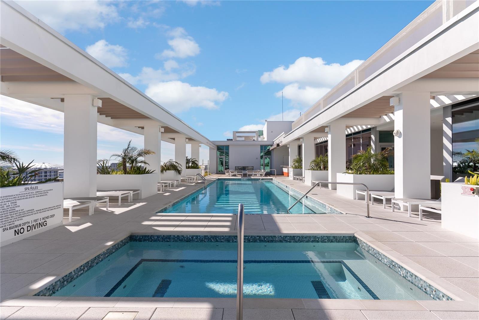 Welcome to your luxury rental in the dynamic and ever-exciting St. Petersburg! This spectacular 2-bedroom, 2-bathroom residence offers 1,753 square feet of refined living space, with sweeping views of Mirror Lake, Downtown St. Pete, Tampa Bay, and Skyway Bridge. Move-in ready and brimming with elegance, the expansive open-concept layout connects the chef’s kitchen, dining area, and spacious living room, all bathed in natural light from floor-to-ceiling windows. The kitchen is a true culinary haven, featuring top-of-the-line appliances, custom cabinetry, and generous counter space, making it ideal for both intimate meals and sophisticated entertaining. The primary suite serves as your personal oasis, complete with a large walk-in closet, a luxurious bath with dual vanities and a walk-in shower, plus direct access to a private 160 sq ft patio—perfect for unwinding. Two additional well-appointed bedrooms offer flexible space, whether for hosting guests, setting up an office, or creating a cozy retreat. Nestled in a prestigious luxury tower, residents enjoy access to exclusive amenities such as a rooftop pool and spa, a fully equipped fitness center, a relaxing sauna, and pet-friendly areas. Two parking spots near the elevator, private storage, and concierge services add to the convenience, while the vibrant energy of Downtown St. Pete’s shops, restaurants, and cultural attractions is just moments away, with a golf cart shuttle making it all easily accessible. Indulge in the best of urban living—schedule your showing today and make this exceptional residence your new home! Included features: A private patio offering breathtaking views of downtown St. Pete, perfect for morning coffee or evening relaxation. 2 assigned parking spaces are conveniently located in the building. A sparkling pool and spa with panoramic views. A stylish bar and lounge space for socializing and entertaining. A commercial-grade fitness center. Communal BBQ grills for outdoor dining. A Sauna located conveniently next to the gym and pool. Complimentary golf cart shuttle service for effortless downtown transportation (Thursday through Sunday), a Dog Wash amenity for pet owners