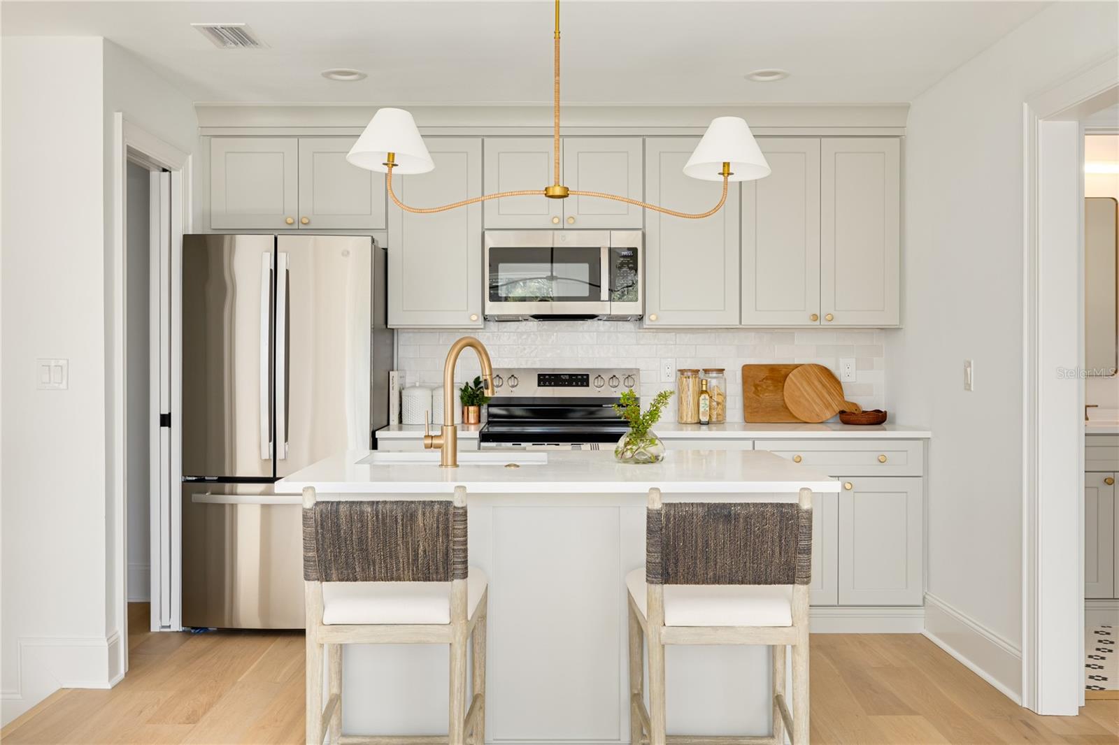 COMPLETED JANUARY 2026! Don’t miss the chance to make this MOVE-IN READY home yours by Canopy Builders – St. Petersburg’s most TRUSTED name in luxury home construction. This beautifully crafted new construction home offers 6 bedrooms and 4.5 bathrooms across 3,587 sqft of total living space—including a 2,998 sqft main house and a 589 sqft 1 bed, 1 bath fully equipped Accessory Dwelling Unit (ADU) above a detached two-car garage. Located in the desirable Old Southeast neighborhood, this home is one of several new Canopy homes redefining the street with timeless design and modern livability. A welcoming front porch opens to a light-filled foyer with an elegant staircase and open sightlines. A major highlight is the FIRST-FLOOR PRIMARY SUITE, tucked privately behind the main living areas. It offers a large walk-in closet and a spa-like bathroom with dual vanities, frameless glass shower, and marble tile. To the right of the foyer, the gourmet kitchen showcases shaker-style maple cabinetry, upgraded quartz countertops, a wood range hood, GE Monogram appliances, and a farmhouse-style enameled cast iron sink. Soft-close drawers, 42” upper cabinets, and a luxe finish faucet reflect thoughtful craftsmanship. The kitchen connects to a dining area and a spacious living room with direct access to the covered back porch overlooking the private backyard. Just off the living room are a mudroom, laundry room with granite composite sink, and a powder bath with floating vanity—conveniently located near the rear entrance. Upstairs are four additional bedrooms, two full bathrooms, and a flexible bonus room. Bedroom 3 includes its own private en-suite bath, while Bedrooms 2 and 4 share a well-appointed hall bath. Bedroom 5 and the bonus room offer space for work, play, or guests. The 589 sq ft ADU provides private, detached living space with a bedroom, bathroom, full kitchen, great room, walk-in closet, and in-unit washer/dryer—ideal for guests, rental income, or multi-generational living. Every aspect of this home is thoughtfully planned, featuring a pre-designed finish package, Hardie Board siding, engineered hardwood flooring, impact-resistant windows, a tankless gas water heater, dual thermostats, 10’ ceilings, 8’ interior doors, and a gas sconce on the front porch. Exterior features include Sherwin-Williams paint, Owens Corning 30-year shingles, a paver walkway and porch, and Emtek entry hardware. Energy-efficient elements include a 15+ SEER HVAC system, open-cell attic insulation, and Low-E double-pane windows for year-round comfort. Backed by Canopy’s comprehensive warranty -- this home offers peace of mind and lasting value. Located just steps from Lassing Park, minutes to Downtown St. Pete, and only 15 minutes to St. Pete Beach and 20 minutes to Tampa, this home delivers the perfect blend of character, craftsmanship, and convenience. Schedule your private tour today—your dream home awaits.