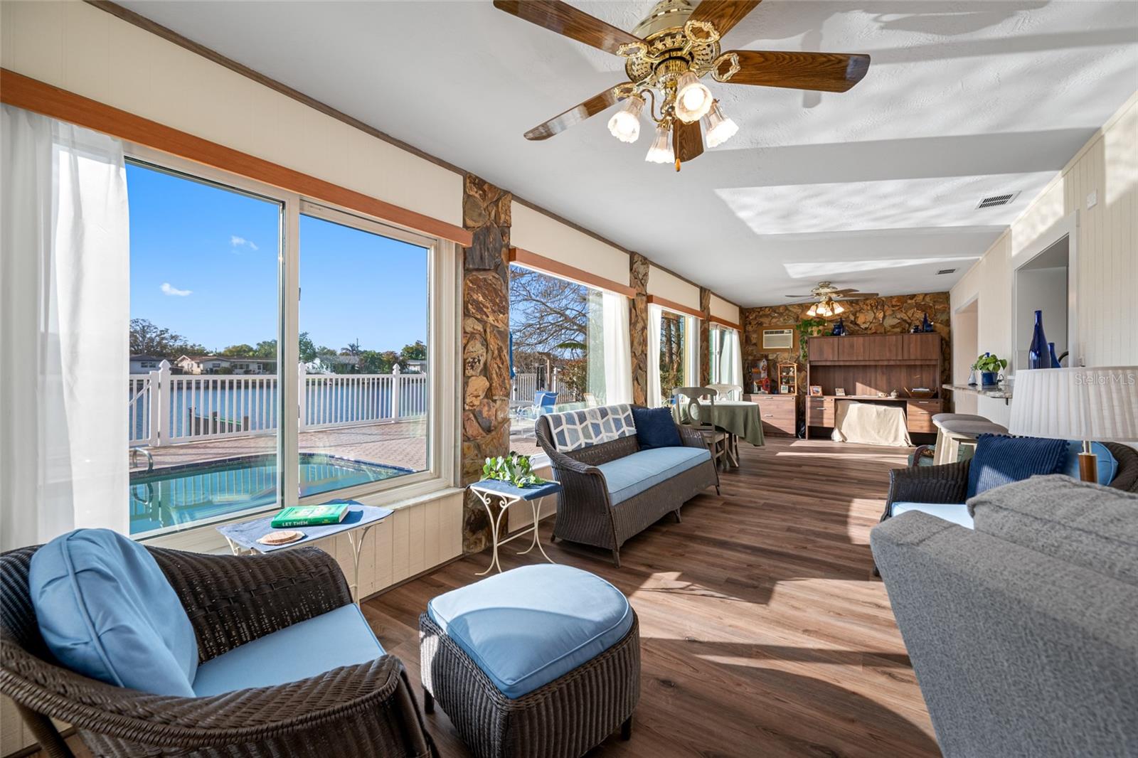 Unparalleled LAKEFRONT living in the heart of St. Petersburg. This stunning pool home sits on an extraordinary 75-foot stretch of pristine lakeside frontage, offering serene water views from every angle. Meticulously updated and maintained, thoughtfully designed, this residence blends coastal elegance with modern convenience to create an idyllic escape minute from the city’s vibrant dining, arts, and entertainment. With 3 Bedrooms, 2 Baths and a large 2 car garage, this home has it all. Several living spaces include a cozy Family/Tv room, Large sunroom with sweeping water views, a separate large living room and a formal dining space. Solar panels provide comfort and peace of mind plus low energy bills. HVAC 2025, Garage door 2025, Kitchen 2025, LVP flooring 2025, Interior Paint 2025 etc. Entering you’ll be greeted by bright, open living spaces that flow seamlessly to Florida’s indoor-outdoor lifestyle. Lots of natural light pouring through the large windows and frame the glittering lake, while glass doors invite you to the expansive patio and pool area for effortless entertaining and daily moments of tranquility. The brand-new well-appointed kitchen features contemporary finishes, ample counter space, island with seating and easy access for outdoor entertaining. Outside, the centerpiece is a saltwater pool that gleams under Florida sunshine, surrounded by lush landscaping and ample seating for sun-soaked mornings or sunset cocktails. Enjoy the tranquility of waterfront living with your own private dock, perfect for kayaking, paddleboarding, or simply savoring the panoramic lake views. This home offers generous bedrooms, updated baths, and smart-use spaces that adapt to your needs, ample storage —whether you’re hosting guests, working from home, or seeking a peaceful retreat. Situated in a coveted St. Petersburg location, you’ll be close to top-rated schools, shopping, outdoor parks, and the waterfront lifestyle that defines this vibrant community. Don’t miss the opportunity to own a premier lakefront residence with a saltwater pool and 75 feet of lake frontage—an extraordinary offering for those who crave both luxury and nature’s beauty. Schedule your private viewing today and imagine the possibilities of lakefront living at its finest.