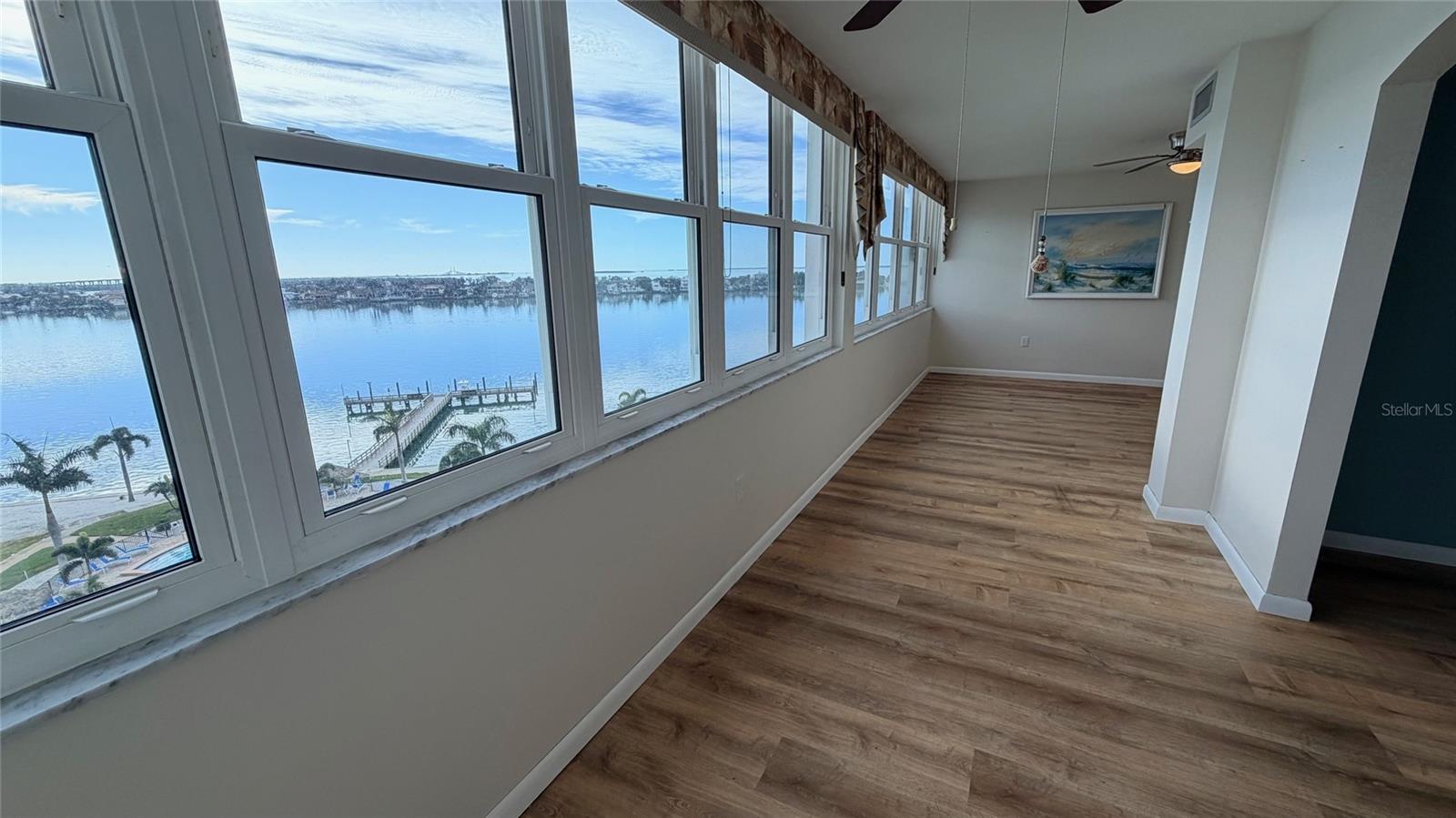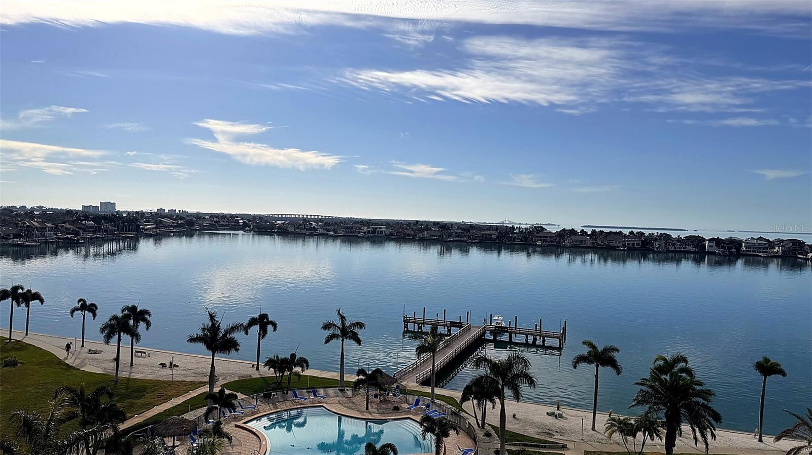 One or more photo(s) has been virtually staged. Experience elevated coastal living in this beautifully positioned 8th-floor, 2-bedroom, 2-bath residence overlooking the shimmering Intracoastal Waterway with breathtaking panoramic views of the iconic Skyway Bridge. From sunrise reflections on the water to glowing evening skylines, this home delivers a daily backdrop that truly sets it apart. Inside, thoughtful recent updates enhance both style and comfort. The bathrooms feature new flooring, updated cabinetry, and elegant quartz countertops, while the living area showcases attractive laminate flooring that complements the home’s light, coastal palette. Subtle beach-inspired tones throughout create a relaxed yet refined atmosphere, perfectly suited to Florida waterfront living. Located within the highly desirable Point Brittany 55+ resort-style community, residents enjoy an exceptional array of amenities including four sparkling pools, tennis courts, and an active clubhouse designed for social connection and recreation. Building 3 has recently undergone full exterior painting in contemporary colors, enhancing curb appeal and long-term value. Additional community and structural highlights include a new aluminum standing-seam roof over the assigned under-building carport parking space, a renovated main lobby, and a primary building roof approximately five years young—all reflecting a property that has been carefully maintained and thoughtfully improved. Whether you’re seeking a serene full-time residence or a luxurious seasonal retreat, this waterfront home offers spectacular views, meaningful updates, and true resort-style living in one of St. Petersburg’s most cherished communities.