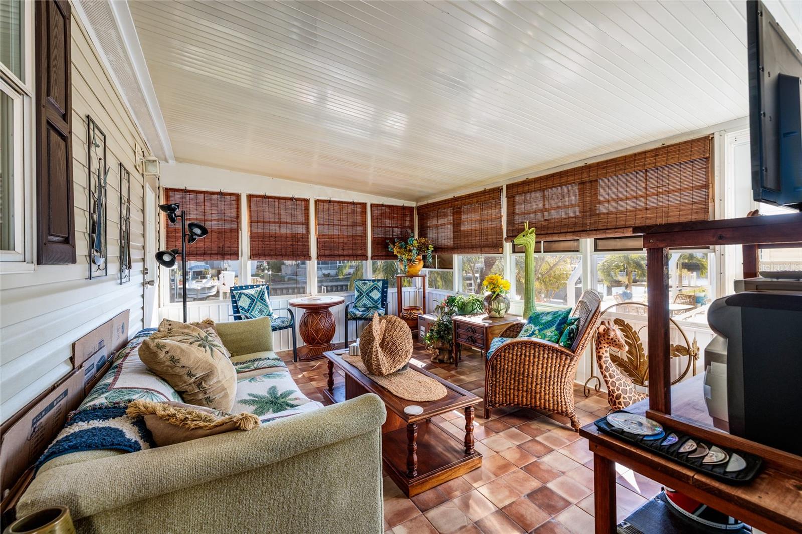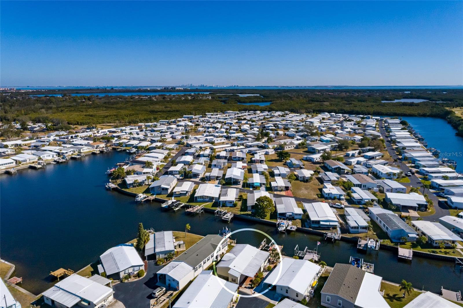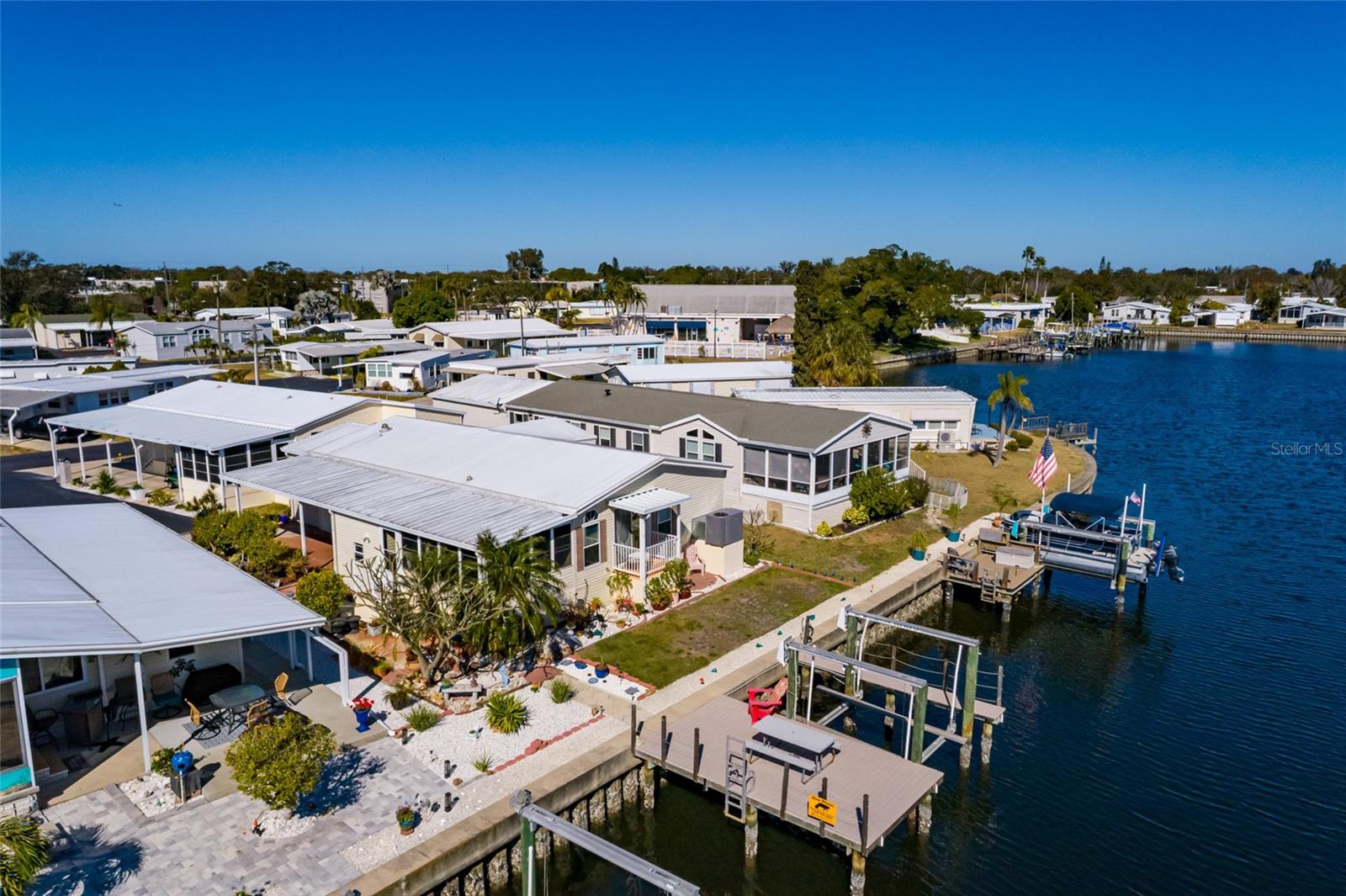 Welcome to this exceptional waterfront residence in the highly desirable, gated community of Americana Cove, where true resort-style living meets everyday comfort. This beautifully maintained 3-bedroom, 2-bath home with a dedicated office was built in 2004 and offers a thoughtfully designed open floor plan with soaring ceilings, abundant natural light, and a warm, inviting atmosphere from the moment you step inside. The water access can't be beat with no BRIDGES to OPEN WATER TAMPA BAY. The seller has a dock and lift and previously has kept a 20 foot pontoon boat there. A boater's DREAM. The heart of the home features an updated kitchen with generous cabinet storage, newer appliances, and an easy flow into the spacious living and dining areas—perfect for entertaining or relaxing while enjoying tranquil water views. The layout is truly special, offering privacy and functionality, including a large 12x7 interior storage and laundry room, three well-appointed bedrooms, and a separate office ideal for working from home or a hobby space. The primary suite is a private retreat, complete with a large walk-in closet, a spa-like en-suite bath featuring double vanities, a sunken soaking tub, and a separate walk-in shower, and private access to a balcony shared with the office, where you can watch dolphins glide by in your own backyard. Additional living space includes a 15x12 Florida room perfect for year-round enjoyment, along with a 30x12 covered carport for ample parking and convenience. Step outside to enjoy breathtaking water views, stunning sunrises, and your private dock. The landscaping surrounding this home is impressive and gorgeous. This home truly delivers waterfront living at its finest. Americana Cove is a premier gated 55+ community offering an unmatched lifestyle with amenities that include a clubhouse, fitness center, heated pool, shuffleboard courts, boat ramps, recreational facilities, and an active social calendar with numerous clubs and activities. Ownership includes a share in the community and the entire lot, adding long-term value and peace of mind. The monthly HOA of $380 covers water, sewer, trash, lawn maintenance, and 24-hour guard-gated security. Whether you’re seeking a full-time residence or a seasonal retreat, this home offers affordable luxury, an unbeatable waterfront setting, and a vibrant community lifestyle. Schedule your private tour today and experience everything this exceptional home and Americana Cove have to offer.