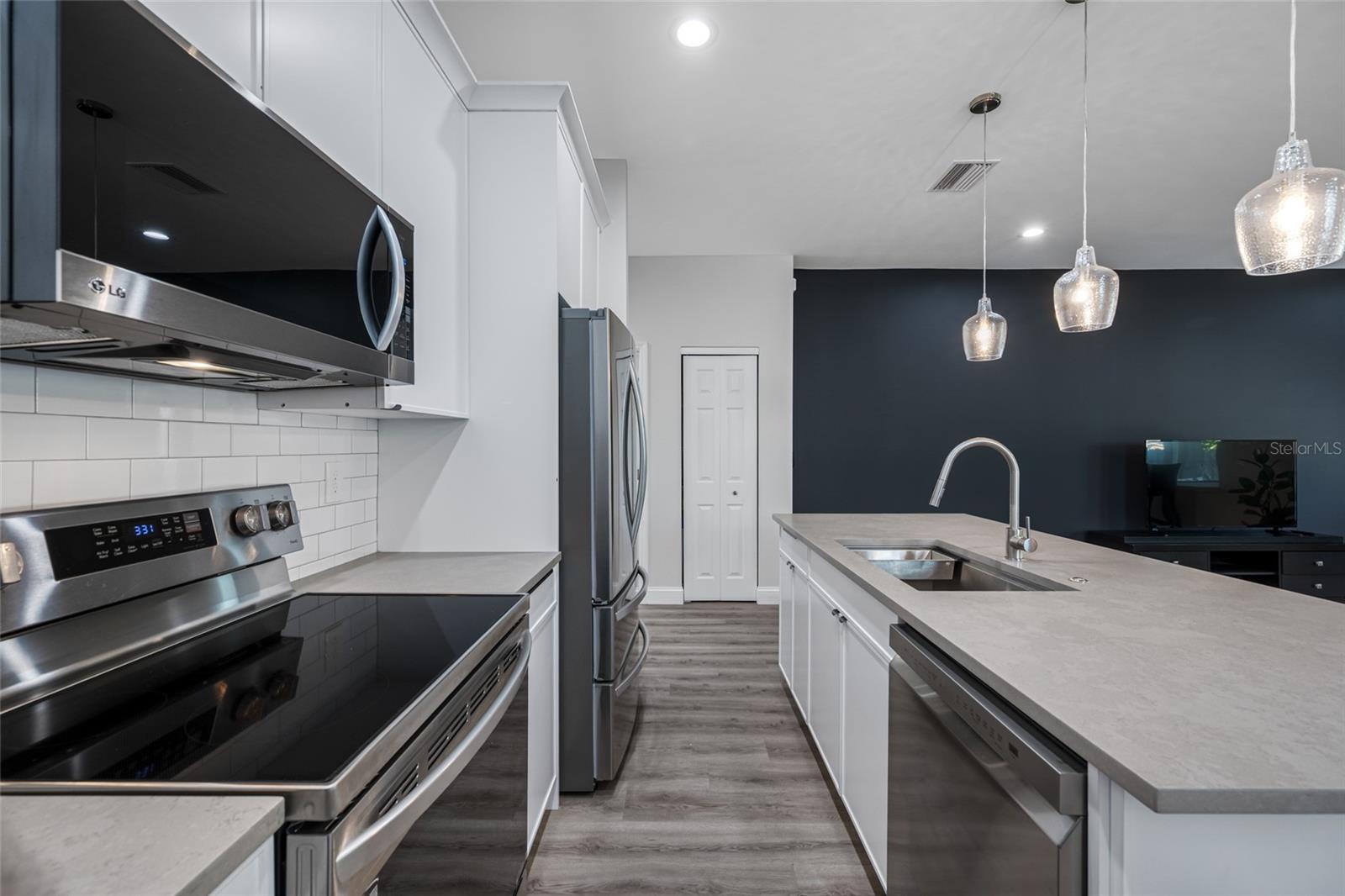LOCATION -LOCATION- LOCATION. Nestled in a prime, walkable neighborhood, this NEW 2024-built home offers 3 bedrooms, 2 baths, and a spacious 1-car garage in a NON-FLOOD ZONE ensuring low insurance and utility costs. The residence is bathed in natural light thanks to high ceilings and oversized windows, while luxury finishes elevate every room.As you enter, you’ll be greeted by a gorgeous front porch—an ideal spot for morning coffee or an afternoon cocktail. Inside, the open-concept layout flows seamlessly from the gourmet kitchen to the dining and living areas, creating a perfect space for entertaining or everyday living. The gourmet chefs kitchen features premium finishes, ample cabinetry, and modern stainless steel appliances that cater to both casual and formal dining needs.The three generously sized bedrooms offer comfort and privacy, with beautiful LVP flooring throughout creating a fresh, elegant ambiance. The primary suite is a true retreat, boasting a spa-like en-suite bath with double vanity with 2 sinks and an elegant walk-in shower. The second full bath is equally well-appointed, ensuring convenience for family and guests.This home is backed by 2024 manufactured warranties on major systems and appliances, providing peace of mind for years to come. The property’s location is ideal for a range of lifestyles: perfect for first-time buyers, a growing family, or retirees seeking a low-maintenance, convenient lifestyle. Situated in a central, walkable neighborhood near excellent schools, parks, and key commuter routes, you’ll enjoy easy access to everyday amenities while living in a tranquil, thoughtfully designed home. Don’t miss this opportunity to own a modern, well-appointed home in a sought-after area.