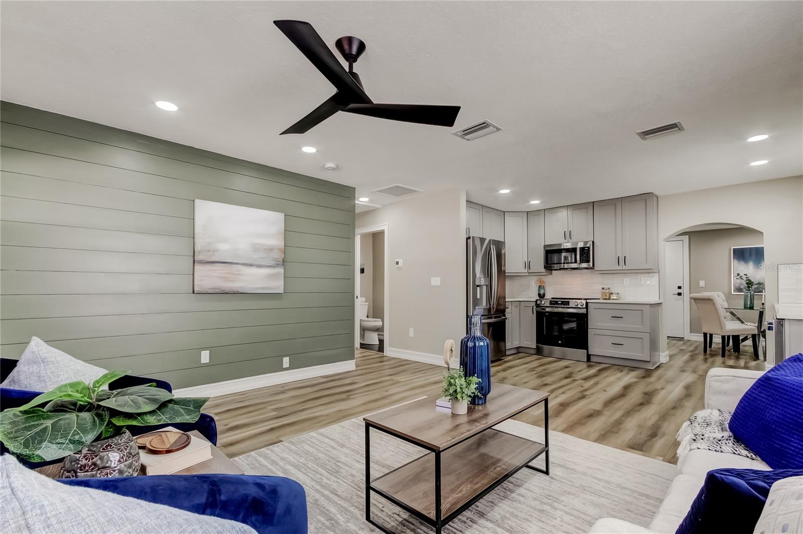 Beautiful 2-bedroom, 2-bath home offering a complete interior renovation and major system upgrades. The home features brand-new electrical wiring throughout, a new AC system, and all new plumbing from underground lines to interior fixtures. Throughout the home, luxury vinyl plank flooring, high-end trim, and thoughtfully selected plumbing fixtures reflect the level of care and quality invested. In 2022, the roof was replaced and solar panels were installed for added efficiency, transferring to the new owner at no cost. The kitchen is both stylish and functional, featuring floor-to-ceiling cabinetry, a marble tile backsplash, and a generous walk-in pantry that adds practical storage and convenience. Additional highlights include a flexible formal dining space—perfect for entertaining or it can function beautifully as a dedicated office or study. Enjoy the convenience of a spacious two-car garage and the privacy of a fully fenced backyard. Fresh exterior paint enhances this home’s curb appeal. Situated outside of a flood zone, this home delivers both comfort and confidence. Unlike a typical flip, this home was fully renovated by the current owner to be lived in and enjoyed for years. Every detail was thoughtfully approached before the owner made the decision to relocate for work. This is a truly move-in-ready home where modern updates meet everyday functionality. Our preferred lenders are offering up to a 1% credit toward closing costs or a rate buy-down for added savings.
