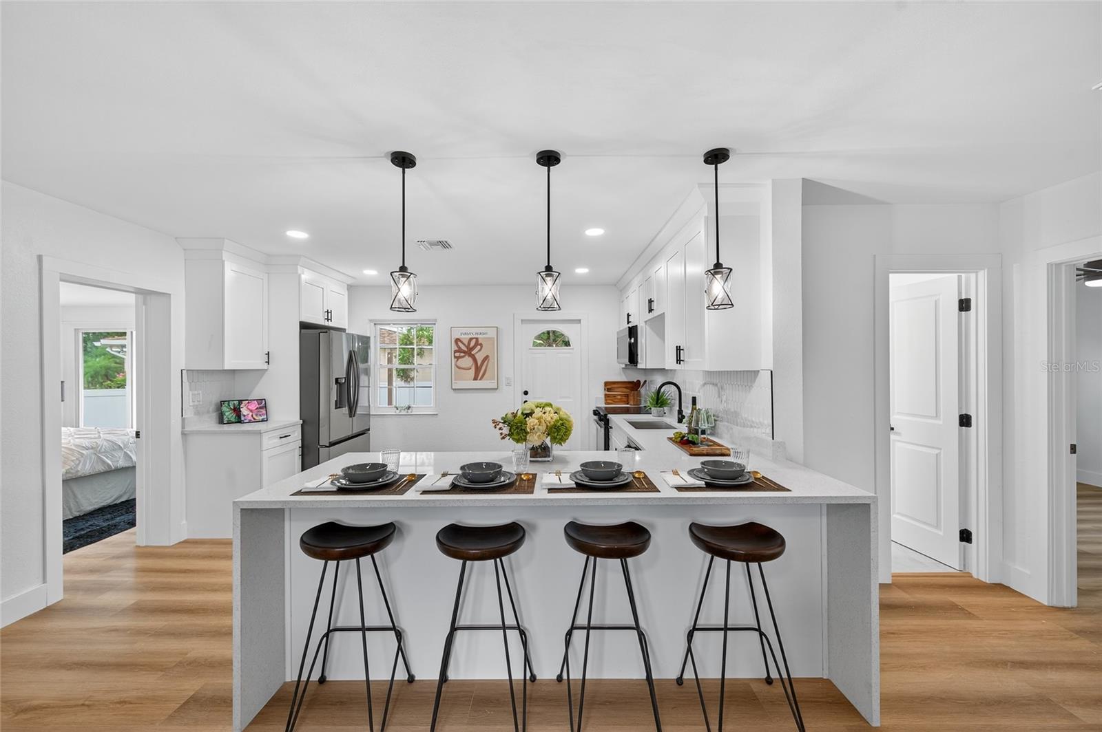 Welcome to this stunning, fully remodeled 3-bedroom, 2-bathroom single-family home located on an expansive corner lot in St. Petersburg’s best-kept secret, the Disston Heights neighborhood! Perfectly positioned just minutes from downtown St. Pete, the Gulf beaches, top shopping and dining, and an array of nearby parks, this location truly offers the best of Florida living. Step inside to a bright, airy open-concept layout that immediately feels inviting, with a beautifully updated kitchen at the heart of the home featuring a generous island ideal for entertaining, stainless steel appliances, soft-close cabinetry, and quartz countertops. The desirable split floor plan provides two guest bedrooms and a guest bath on one side of the home, while the private primary suite is thoughtfully tucked away on the other, creating comfort and privacy for everyday living. Recent upgrades include newly remodeled bathrooms, luxury vinyl flooring throughout, a brand-new roof (2025), and updated electrical and plumbing systems, making this home completely move-in ready! Outside, enjoy a spacious and private backyard fully enclosed with a vinyl fence perfect for pets, gatherings, or simply relaxing; enhanced by the oversized corner lot. Located in Flood Zone X with no flood insurance required, this home is an incredible opportunity to own a beautifully updated property in one of St. Petersburg’s most desirable and centrally located neighborhoods! Up to $5,000 offered to buyer to be used towards closing costs and/or rate buy down with use of preferred lender!! Don't delay schedule your tour today!