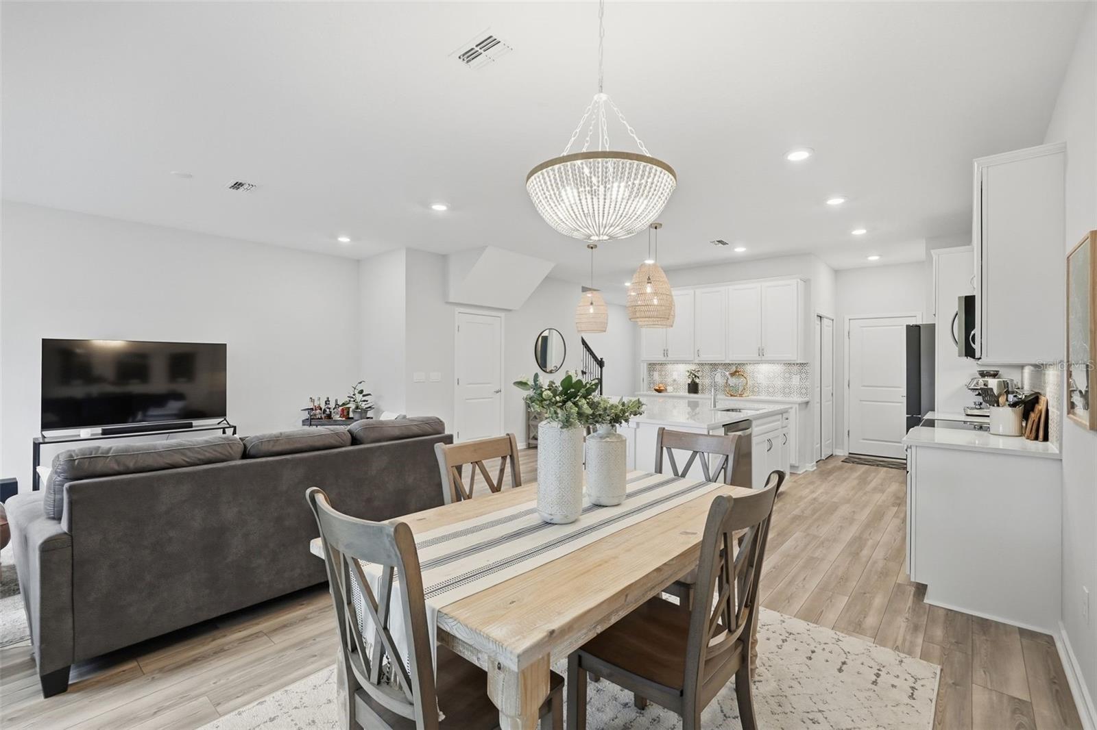 Luxury meets convenience in this 2023 Pulte-built home located in the gated community of Shoreline. This pristine 3-bedroom, 2.5-bath residence showcases an airy open floor plan filled with natural light, statement lighting fixtures, neutral finishes and upgrades throughout. The chef’s kitchen is the heart of the home, featuring white birch cabinetry, stunning Lagoon Quartz countertops, Whirlpool stainless steel appliances, dual pantries for exceptional storage, and an oversized island that seamlessly anchors the living and dining spaces—ideal for entertaining or everyday living. The first floor also includes a convenient half bath and generous storage closet. Upstairs, retreat to the spacious primary suite complete with a walk-in closet and private en suite bath. Two additional bedrooms share a well-appointed hall bath, and the upstairs laundry room is equipped with an LG ThinQ washer and dryer for modern convenience. Enjoy Florida living with a private outdoor space, plus the benefit of a 2-car garage and two additional parking pad spaces. Ideally situated just off Gandy Blvd in North St. Petersburg, offering quick and convenient access to both downtown St. Petersburg and Tampa. HOA covers roof maintenance, exterior maintenance, water, sewer, trash, and lawn care for true maintenance-free living. No flood insurance required.