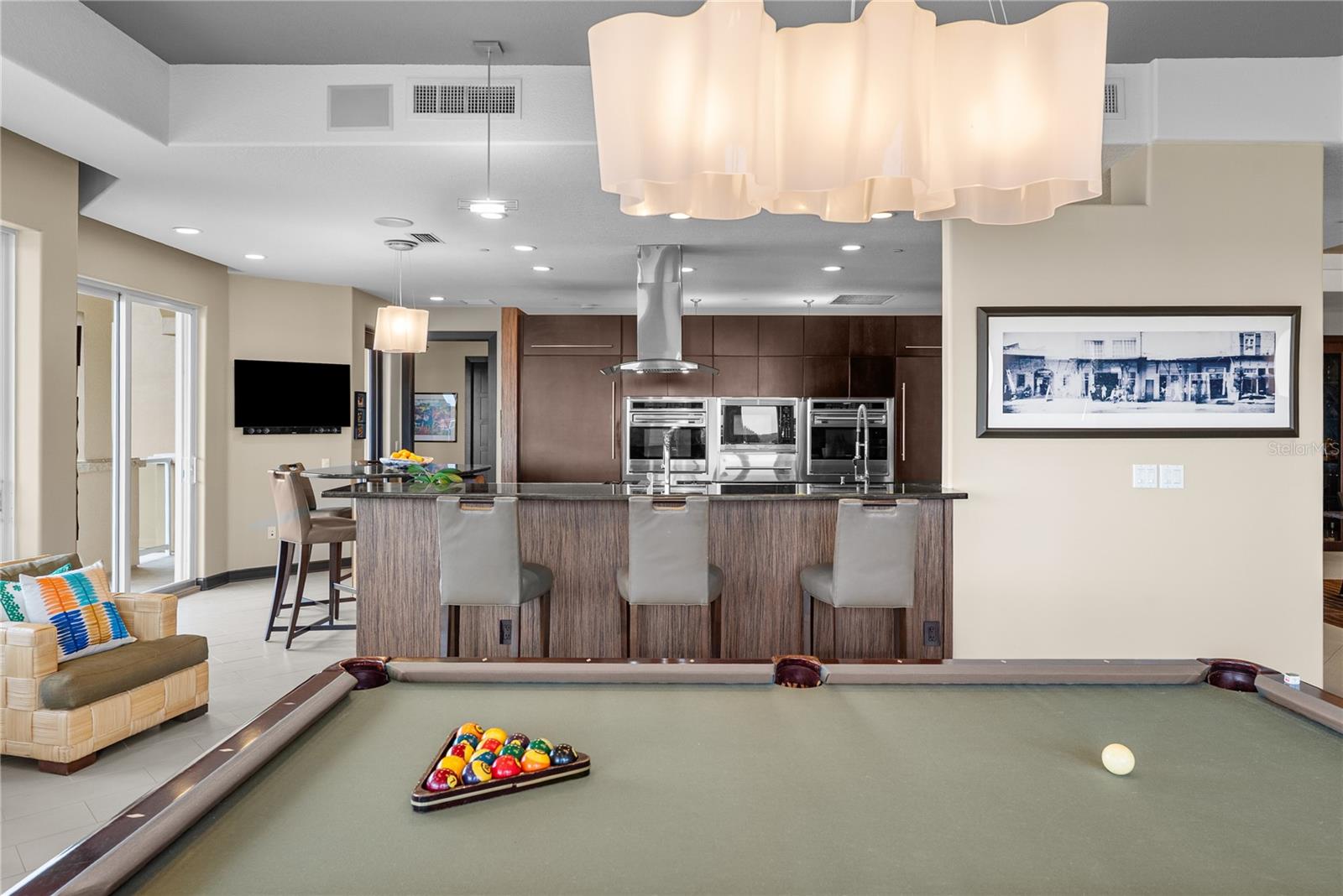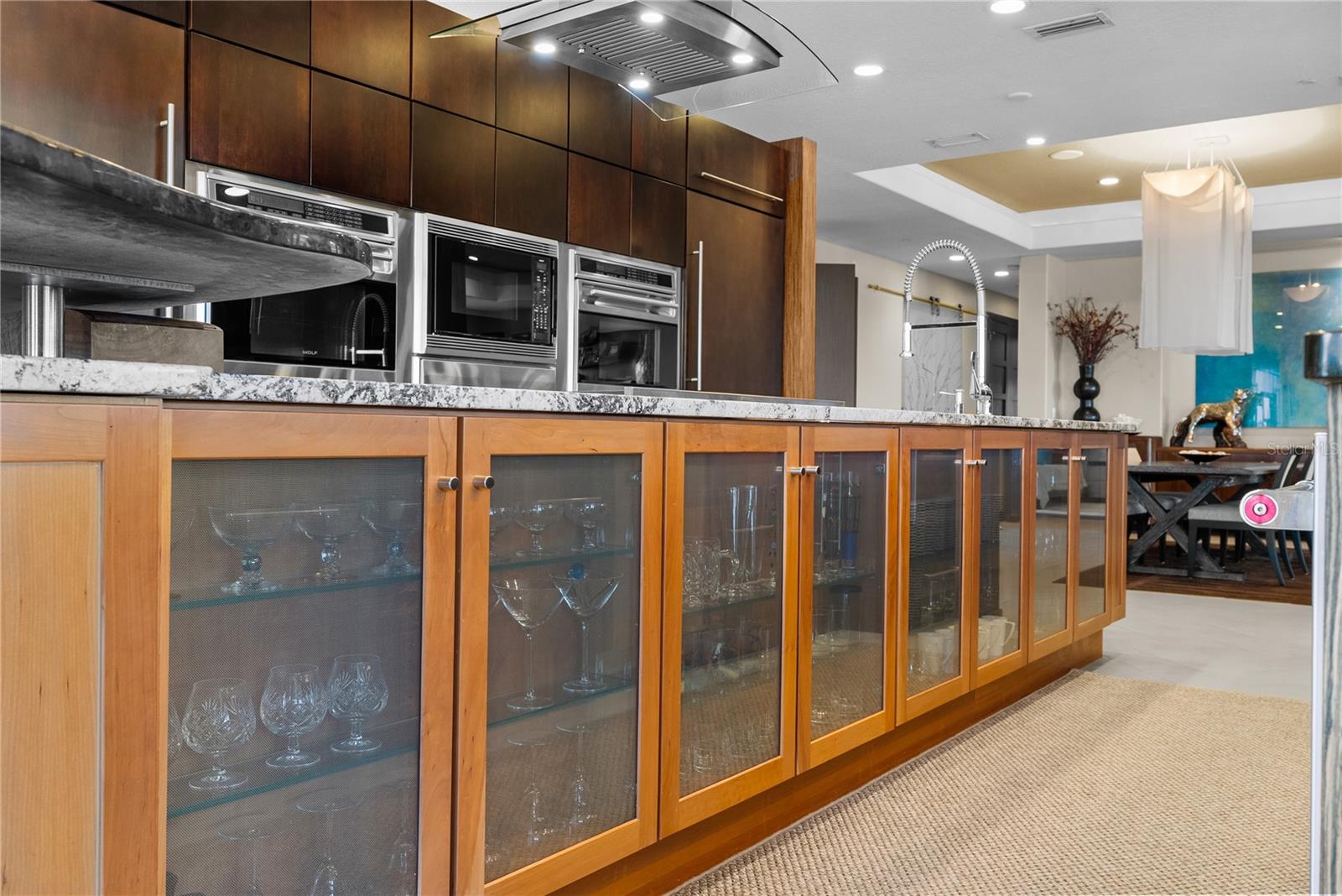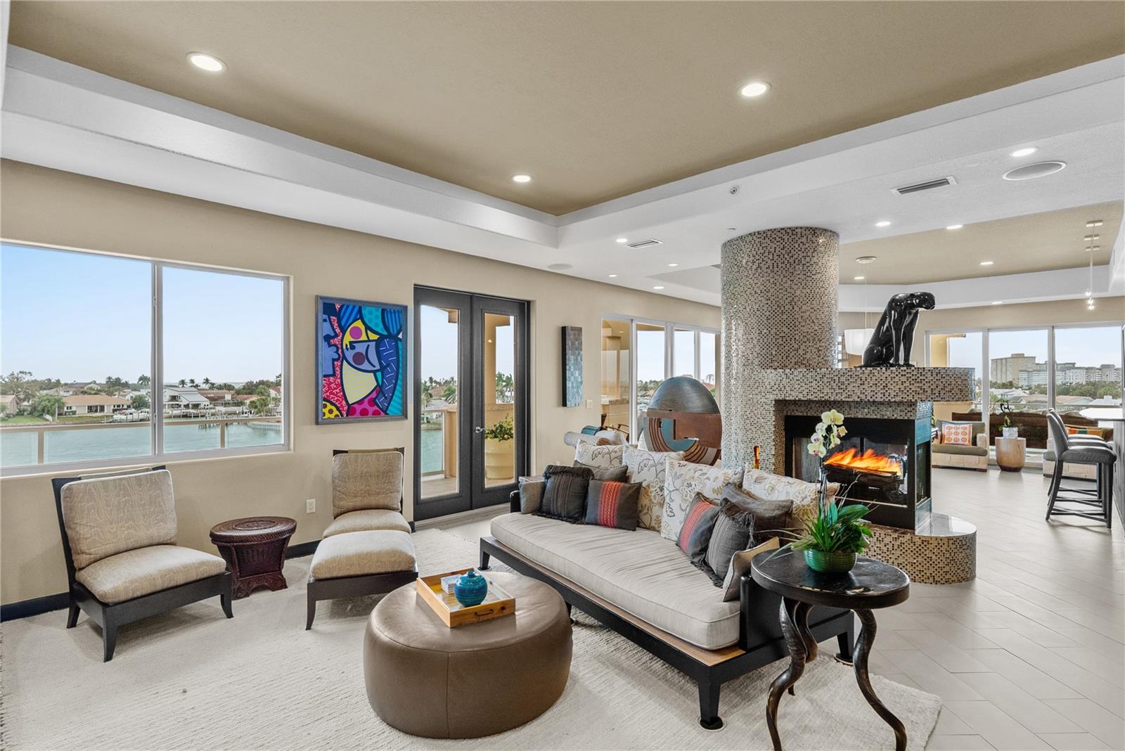 This Penthouse at Marina Pointe has a Private Rooftop Terrace and a Deeded Boat Slip! Located in the gated community of Marina Bay, The Pointe presents a collection of Boutique Condo Buildings with only three units each. This refined residence is comprised of over 3800 square feet of luxurious living area, including four bedrooms and four and a half baths. Take the elevator to your private foyer, which makes a bold statement with a ceiling to floor waterfall. Enter the open living area, surrounded by wrap around balconies, taking in southern views toward the Skyway Bridge over Tampa Bay and western views toward the horizon on the Gulf. Silk lanterns float above the formal dining area with custom mahogany built-ins to store your treasures and dramatic lighting to display your art and artifacts. The sitting room and gathering rooms are divided by a stunning three-sided gas fireplace. The kitchen is a gourmand’s sweet dream with SubZero Refrigerators, a Wolf cooktop with grill and range hood over the Center Island, double wall oven, warming drawer, ice maker and Miele barista coffee center. The breakfast bar and center island each have sinks for more prep and serving space and two dishwashers for quick clean up. Sleek custom cabinets have pull out shelves, space for spices, baking sheets and cutting boards while glass cabinets on the back of the island display barware and ceramics. A walk-in pantry is just beyond the kitchen with built-in cabinets and adjustable shelving. Of the four bedrooms, the primary suite is the showstopper. With access to the wraparound porches, enjoying sunrise and sunset views, this exquisite space is a true retreat. The primary ensuite is actually a bath and a half with two vanities, two water closets, a soaking tub and a separate steam shower. The massive walk-in closet will accommodate your entire four-season wardrobe. Two of the guest rooms have private ensuite baths, while the fourth bedroom, currently used as an office, has gorgeous etched glass doors and access to a full bath across the hall. The wine room is a sweet surprise with a glass door to gaze at your climate-controlled collection. While the interior of this home will surely impress you, the exterior will take your breath away! An entire outdoor living room awaits you and your guests as you flow from the gathering room to the great outdoors. A spiral staircase leads to your private rooftop terrace, complete with an outdoor kitchen, gas grill, built-in seating and panoramic water views! Peer down at your deeded boat slip and plan your next fishing trip or sunset cruise! This Stunning Penthouse Residence also features 11.5’ ceilings, solid wood doors, wired sound system, custom blinds and window treatments, LED lighting, impact glass windows and doors, laundry room with sink and cabinets, a large storage room, 2 mechanical closets, whole-house generator, central vacuum and a private garage large enough for three vehicles. Marina Bay amenities include a heated pool and spa, fitness center, club house and marina. Located just off of Interstate 275 and the Pinellas Bayway, the community is ideally situated between Downtown St. Petersburg and the Gulf Beaches. Just thirty minutes from international airports and professional sporting arenas.