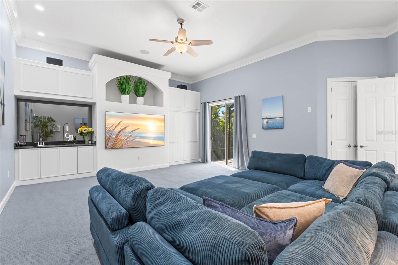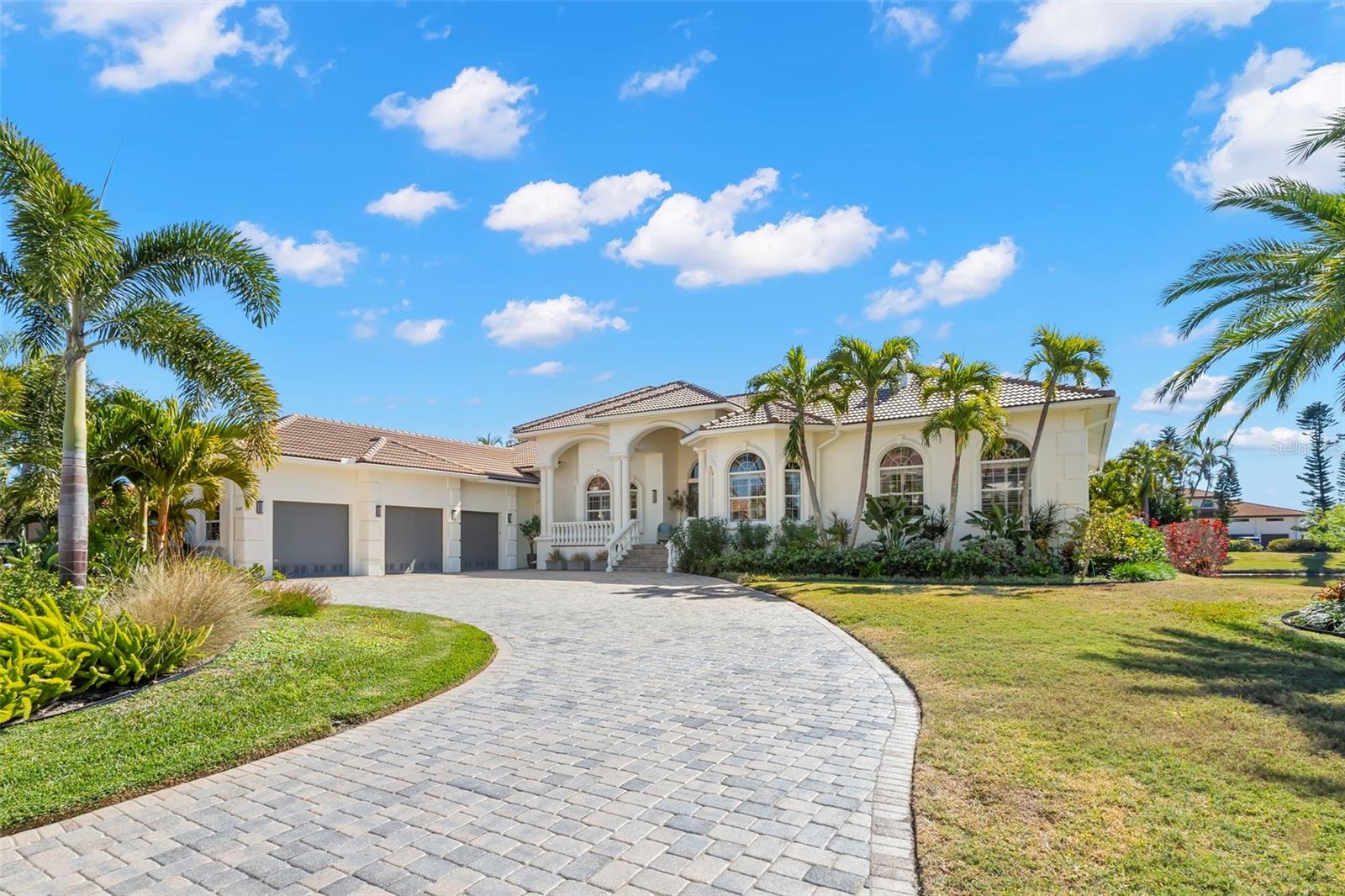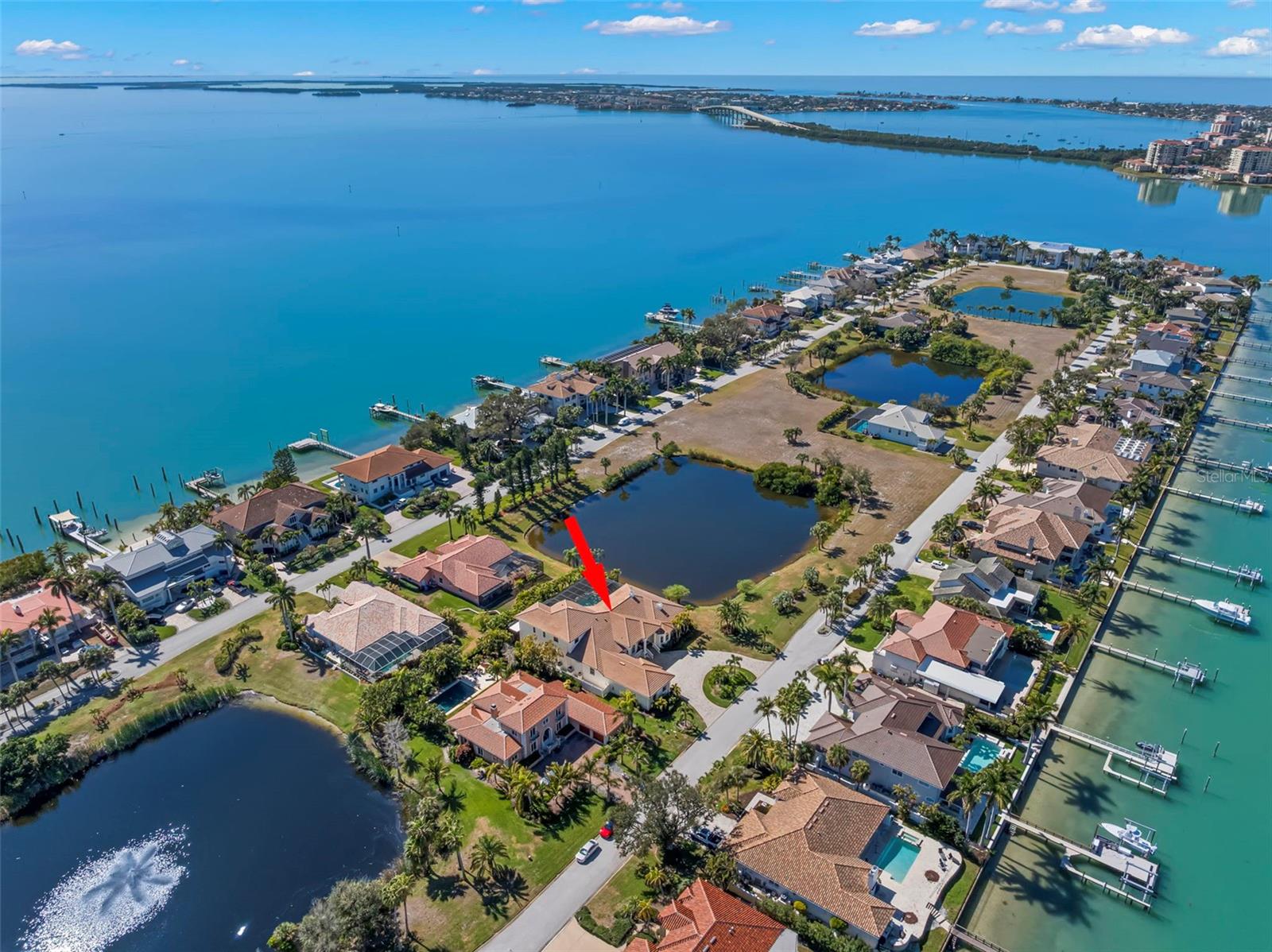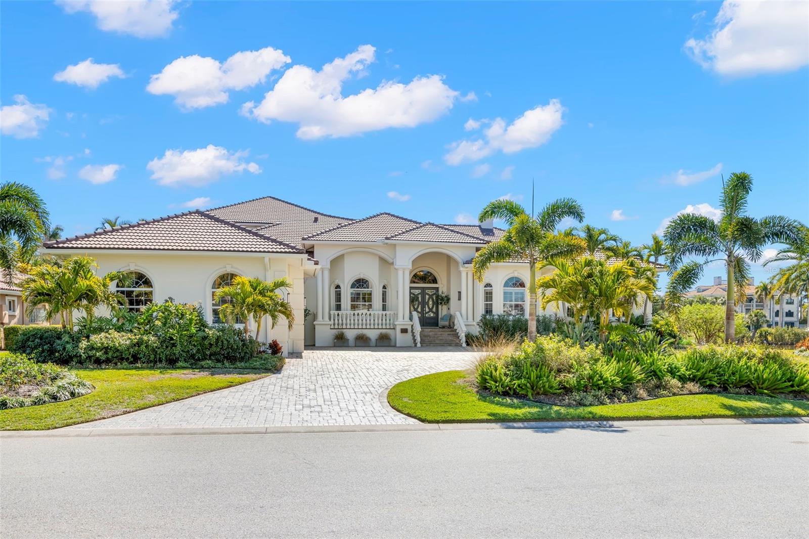 Set within the exclusive guard-gated enclave of Bayway Isles, this refined Mediterranean estate is positioned on an expansive estate lot on the island of Bayway Isles II and sits high and dry above base flood level. The home has never flooded and flood insurance is only $655 a year. Offering timeless architecture, privacy, and elevated living, this previously celebrity-owned residence spans approximately one acre — including a portion of the lake — and enjoys tranquil water views, breathtaking sunsets, and a rare sense of scale seldom found within St. Petersburg’s island communities. Known for higher elevations, larger parcels, and distinguished residences, Bayway Isles II represents one of Saint Petersburg’s most coveted addresses. Composed entirely of multi-million-dollar homes, this offering is currently the least expensive property available on the island — presenting a compelling opportunity within an elite setting. Thoughtfully reimagined by a well-known local interior designer, the home unfolds across nearly 6,400 square feet of curated interiors and approximately 8,500 total square feet. Soaring 12-foot ceilings, solid wood doors with transoms, marble flooring, and architectural archways create understated grandeur, while a refreshed palette and updated fixtures lend contemporary refinement. Enhancements include a clay barrel tile roof, designer lighting, leathered imported granite, custom cabinetry, Sonos whole-home audio, upgraded theater technology, Blueroot landscape lighting, multiple HVAC replacements, and window upgrades. Formal living and dining spaces overlook the pool and lake, anchored by a fireplace. The chef’s kitchen flows into the great room, highlighted by a new 85-inch television with surround sound. A climate-controlled 160-bottle wine room and generous butler’s pantry add functional luxury. The primary suite offers a fireplace, morning bar, custom closets, and spa-style bath with soaking tub, dual vanities, and steam shower. Two secondary bedrooms with en-suite baths are privately situated opposite the primary wing. A grand executive office is positioned at the front of the home, and a private pool bath is accessible from indoors and poolside. The stadium-seat theater with reclining chairs and popcorn station completes the entertainment experience. Upstairs, a private guest suite ideal for multigenerational living includes a bedroom, large bath with shower and separate jetted tub, walk-in closet, full kitchen with new appliances, and wood flooring. Outdoors, the estate transforms into a resort-inspired retreat. The reimagined pool and spa feature AquaLink automation, saltwater system, updated pumps, lighting, and new tile, framed by expansive terraces capturing lake views. A restaurant-caliber outdoor kitchen with commercial gas grille, smoker, and oversized Komodo Joe ceramic cooker is complemented by a separate bar with sink, refrigeration, and 85-inch television — creating an exceptional setting for sunset gatherings. With 24-hour guard security and convenient access to Gulf beaches, downtown St. Petersburg, marinas, and Tampa International Airport, this residence represents a rare opportunity where estate-scale land, architectural presence, and curated upgrades converge within one of Tampa Bay’s most sought-after island communities. The home may be sold fully furnished. A detailed features/updates sheet is attached. Buyer to verify measurements.