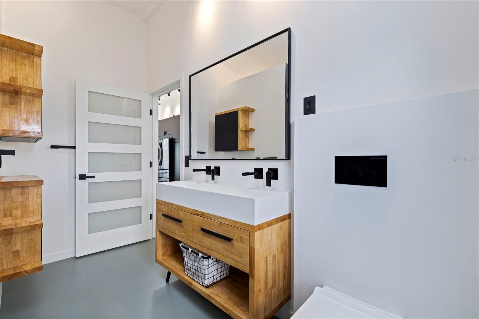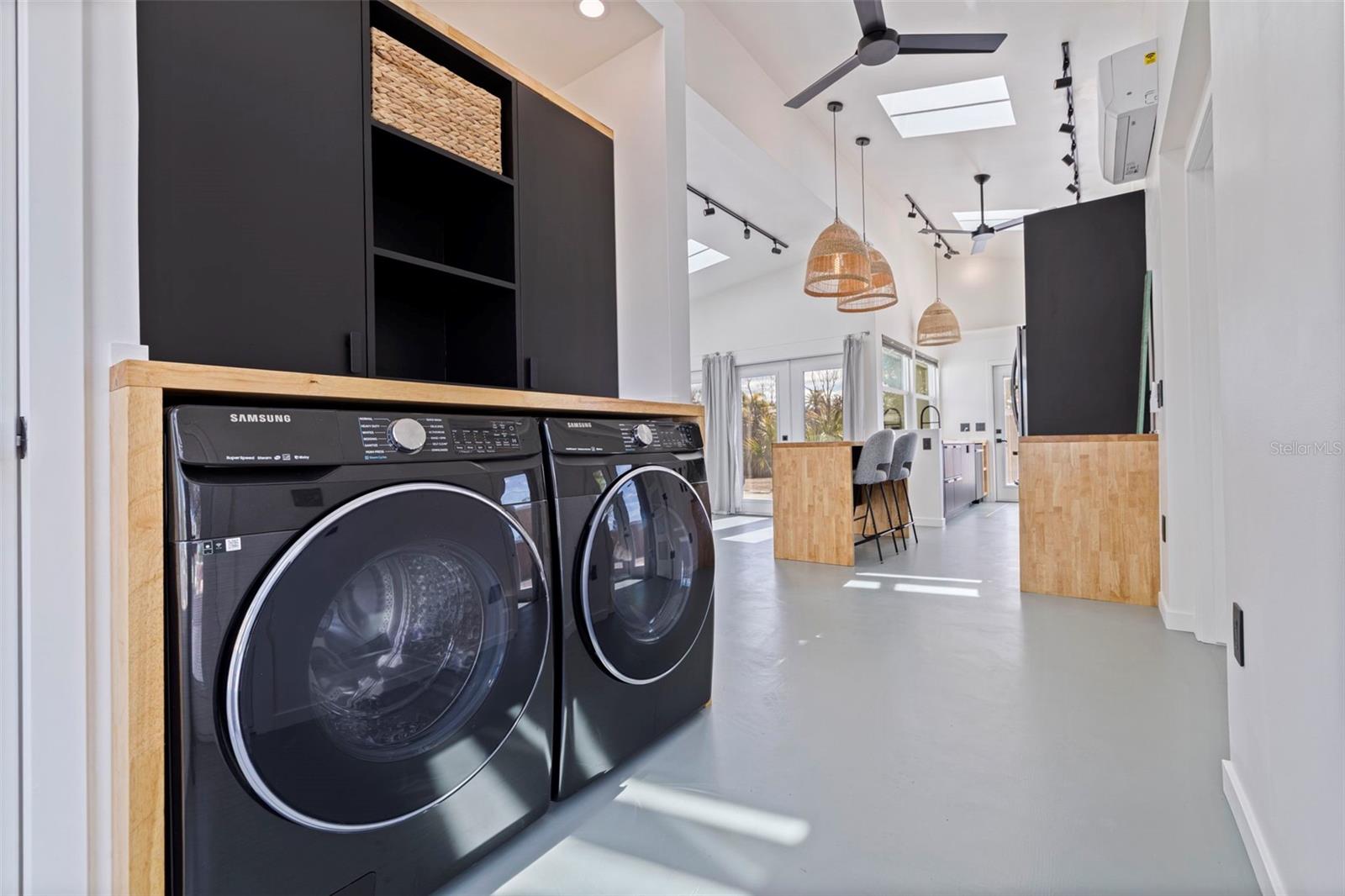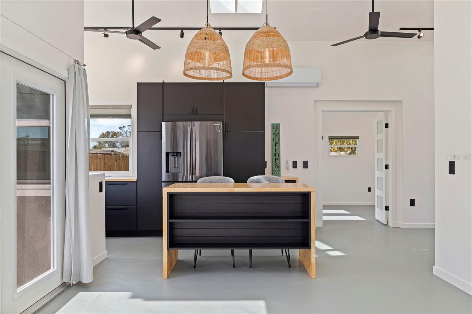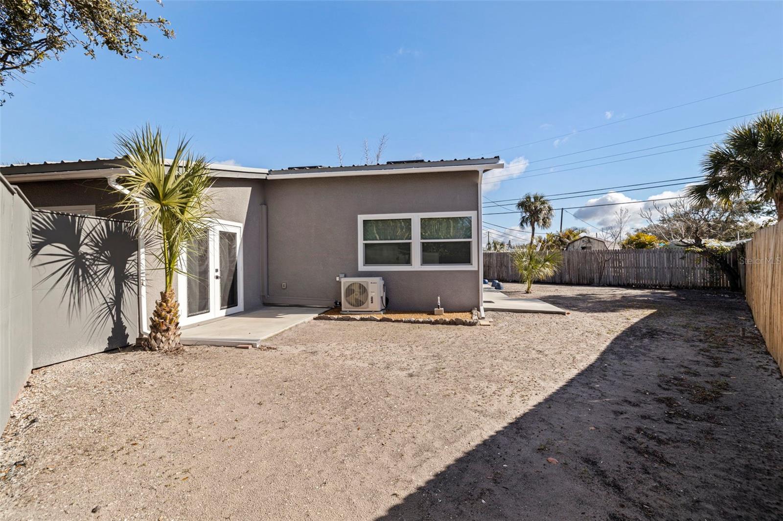 Step into this striking modern industrial home with a touch of boho-chic style — a thoughtfully curated blend of design elements that delivers a true wow factor from the moment you walk in. Soaring vaulted ceilings, an impressive open floor plan, and abundant natural light streaming through large windows, glass doors, and skylights create a bright, airy atmosphere that feels spacious without the upkeep of a larger home. The kitchen is warm, open, and inviting, featuring high-end appliances, an under-mount sink, butcher-block countertops, and exceptionally efficient storage, including innovative drawer-within-drawer organization to maximize space. A rare and delightful feature of this home is that each bedroom offers private double-door access to the backyard — perfect for stepping outside to enjoy the weather or seamlessly blending indoor and outdoor living. The beautifully updated bathroom showcases both style and function, with custom built-in storage cleverly integrated into the décor, a handcrafted dual-sink vanity, a high-efficiency low-flow toilet, and a stunning glass walk-in shower with rainfall showerhead. The living room continues the home’s open, light-filled feel, highlighted by six hurricane-rated glass doors that fully open to extend the entertaining space onto the oversized back patio. Outdoors, you’ll enjoy a generously sized fenced backyard — ideal for hosting, relaxing, or simply enjoying Florida’s beautiful weather in privacy. Recent upgrades add both value and peace of mind, including a warranted metal roof, whole-house water filtration system, hyper-efficient tankless water heater, eco-friendly gravel driveway designed to support natural aquifer recharge, newer Samsung appliances (washer, dryer, refrigerator/freezer, and dishwasher), high-efficiency LED lighting, and refreshed landscaping. Conveniently located just over three miles from powdery sands of both Treasure Island Beach and St. Pete Beach, a short drive to award-winning Downtown St. Petersburg, approximately 1.5 miles from Stetson Law School, and minutes from shopping, dining, banking, and everyday essentials — this home offers exceptional access to everything the area has to offer. If you’re ready for something refreshingly different from the ordinary, this distinctive, thoughtfully updated, and inviting home delivers both character and location — perfectly positioned between vibrant downtown living and world-class beaches.