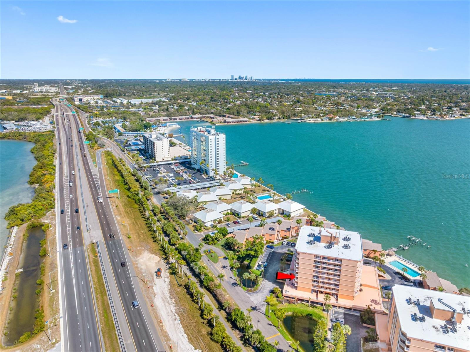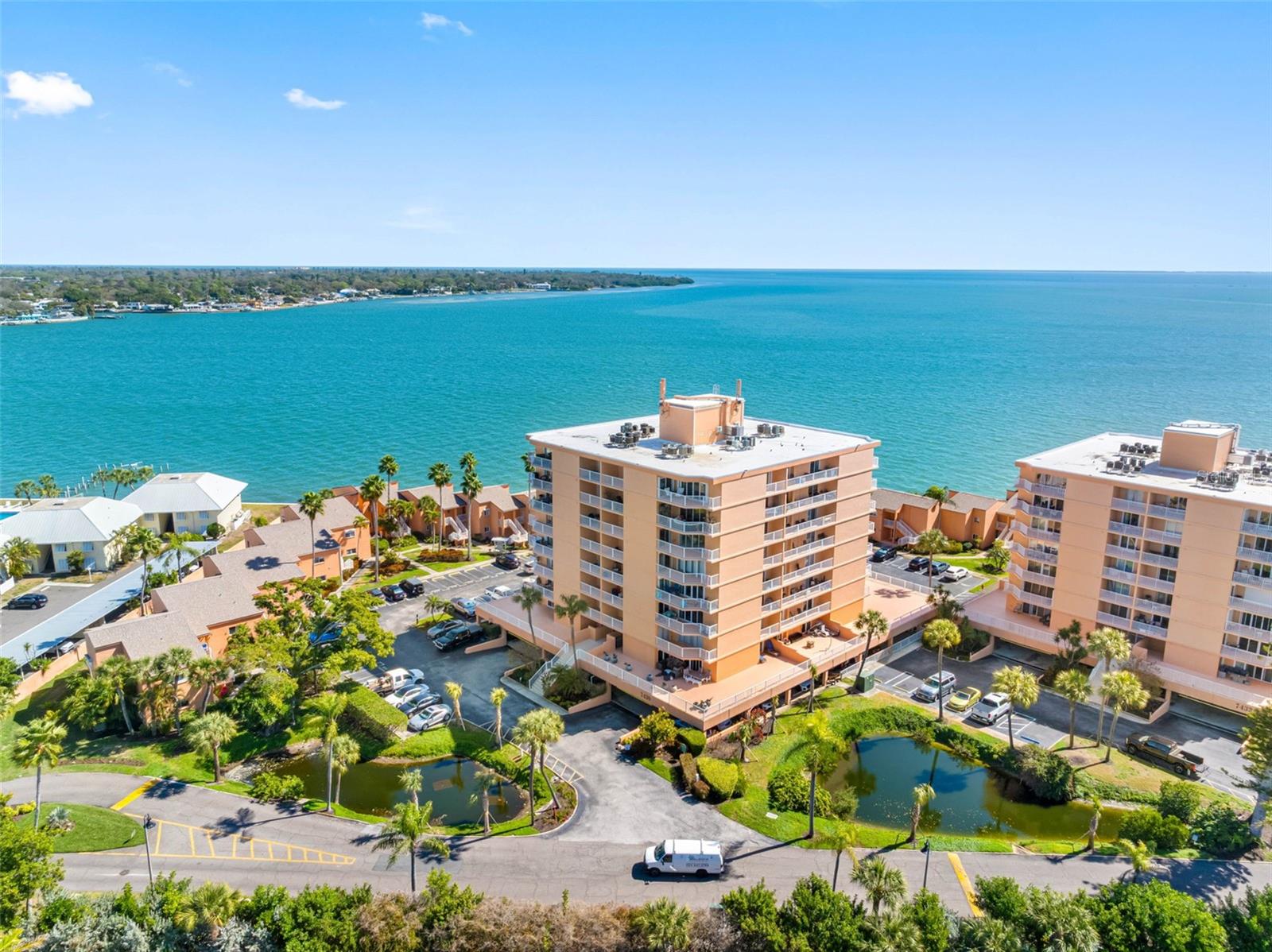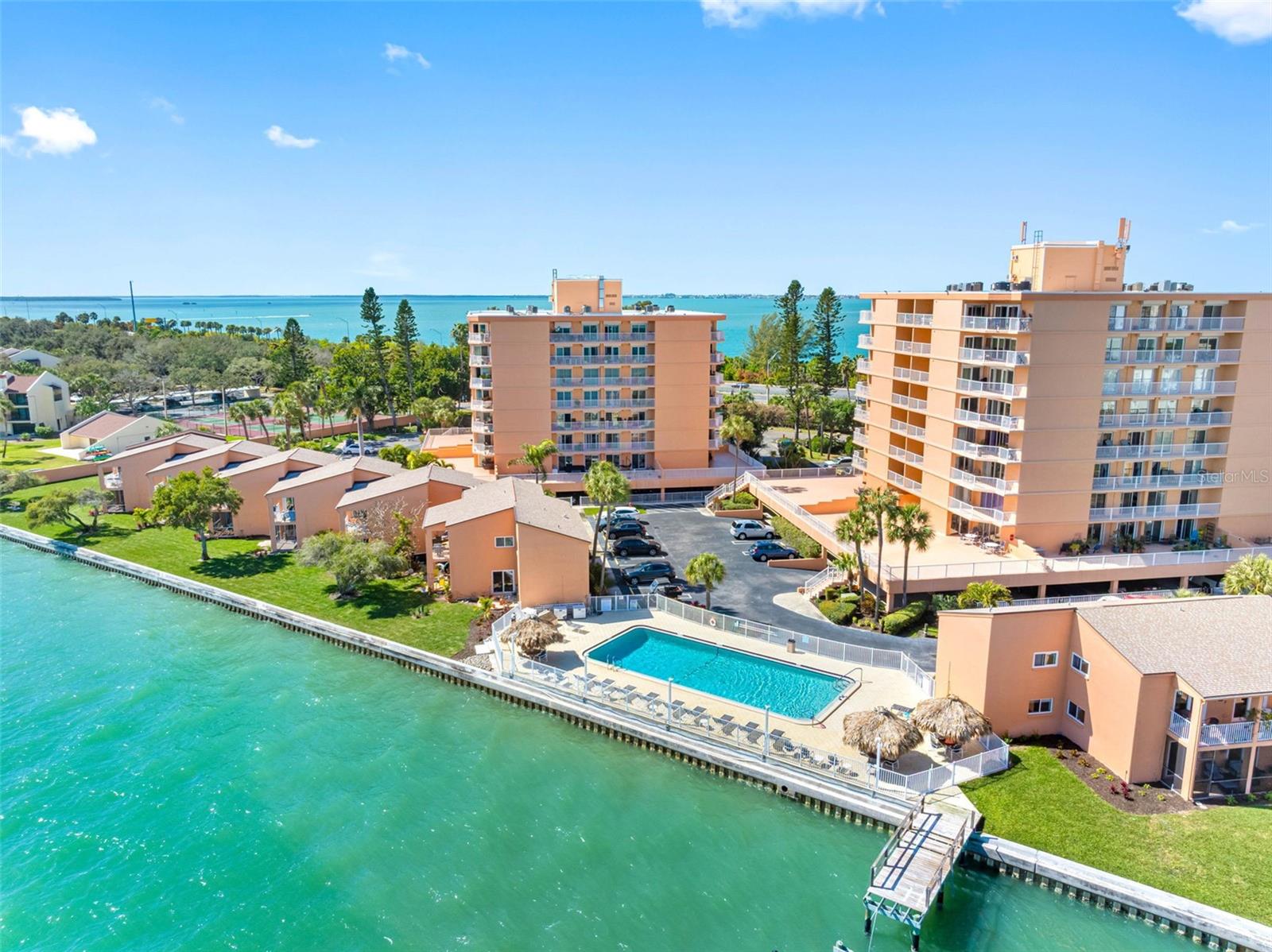 Waterfront Corner Residence with Sweeping Gulf Views! Wake up to open water and end every evening with spectacular western sunsets over the Gulf of America. This rare 4th-floor, 3-bedroom / 3-bathroom corner residence offers the panoramic waterfront views buyers search for — and seldom find at this value. Located in South Bay Condominiums, this spacious layout features two en-suite bedrooms and balcony access from every room — including the living room, primary suite, and second bedroom — creating seamless indoor-outdoor living and constant connection to the water. From the moment you enter, an open, light-filled floor plan welcomes you, designed to maximize the views. The kitchen has been opened to capture water vistas, enhancing both functionality and flow. Additional updates include a new electrical panel and beautifully refreshed bathrooms. A dedicated under-building parking space adds convenience and peace of mind. Community amenities at South Bay elevates the waterfront lifestyle with a heated swimming pool, clubhouse, and private fishing pier, The complex is pet-friendly policy (2 pets under 25 lbs), has a flexible rental option:of 90-day minimum, up to 3 times per year, in a prime Pinellas County location. The complex is perfectly positioned off 275 giving quick access to vibrant downtown with dining and arts scene in St. Petersburg, the iconic The Don CeSar on St. Pete Beach, over 1,000 acres of coastal preserve at Fort De Soto Park, a scenic drive across the Sunshine Skyway Bridge to the culture and beaches of Sarasota. This is more than a condo — it’s a front-row seat to Florida’s coastal beauty. Whether you’re searching for a full-time waterfront residence or a luxurious seasonal retreat, this corner-unit gem delivers breathtaking views, affordability, and unbeatable lifestyle appeal.