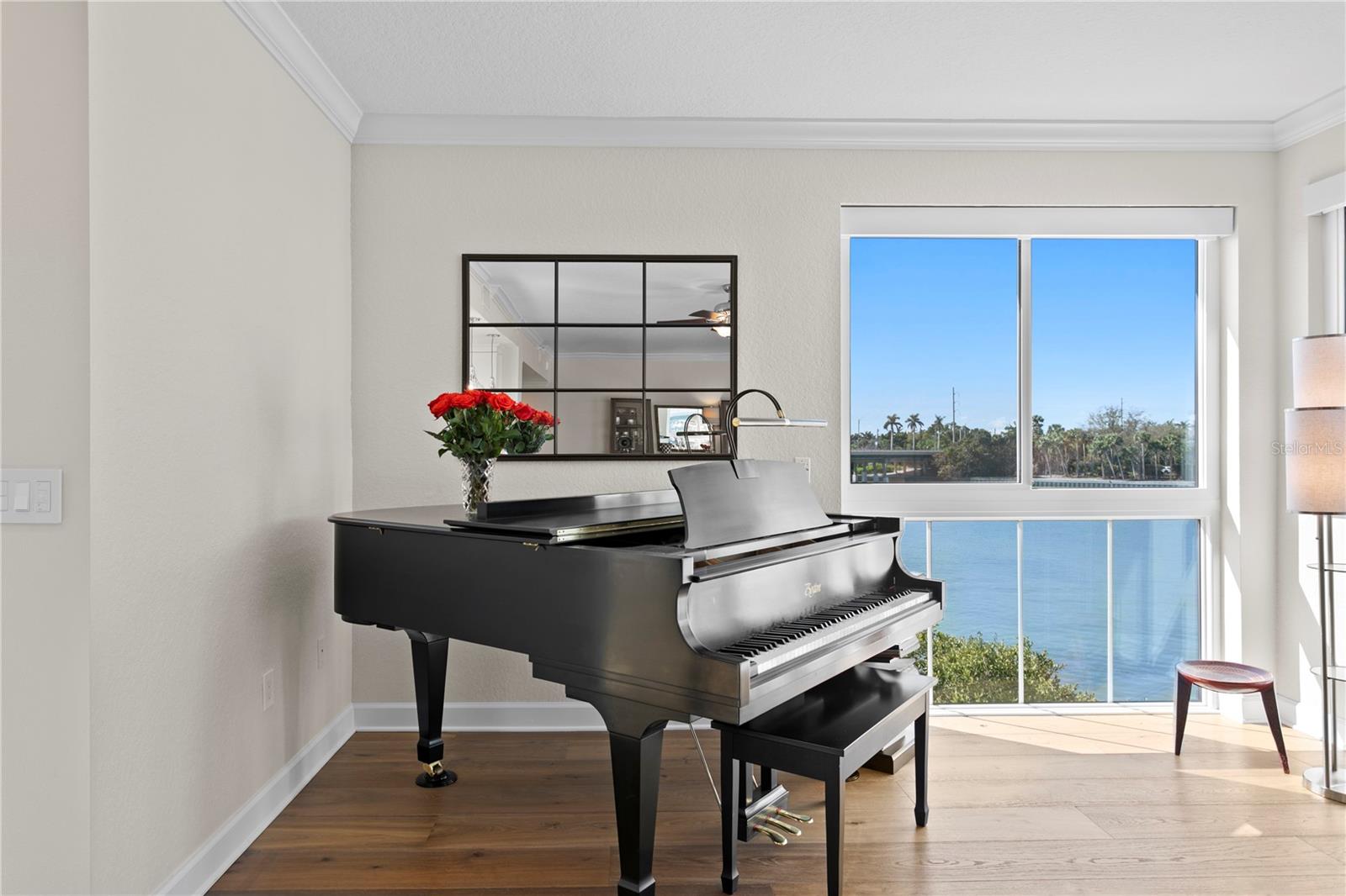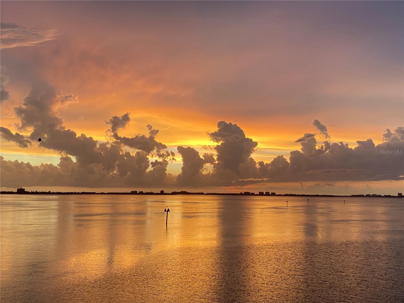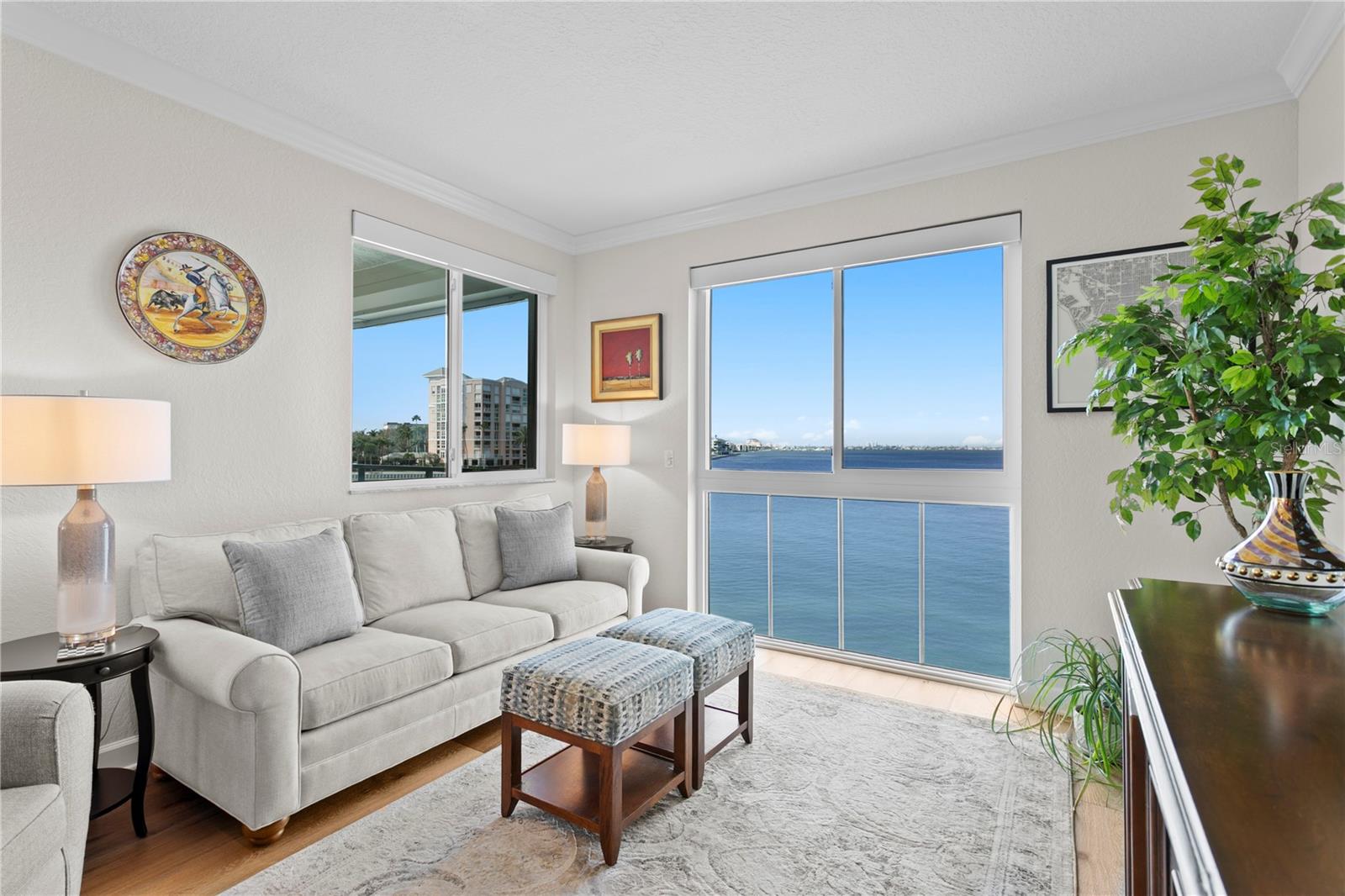 Perched at the pinnacle of one of St. Petersburg’s most prestigious guard-gated waterfront communities, this exceptional 3-bedroom penthouse residence offers approximately 2,500 square feet of refined coastal living with panoramic views across Boca Ciega Bay. From the moment you enter, sweeping water vistas command attention—stretching toward the iconic Don CeSar Hotel and the shores of St. Pete Beach. Expansive 8-foot windows and hurricane-rated sliding doors bathe the residence in filtered natural light while framing extraordinary sunset exposures that define true Florida waterfront living. The spacious waterfront veranda serves as a natural extension of the main living area—an ideal setting for evening gatherings or quiet mornings overlooking the bay. With three private balconies, this penthouse offers both sunrise and sunset orientations, capturing light throughout the day. Designed for both everyday comfort and elegant entertaining, the open-concept living and dining areas flow seamlessly into a generously sized chef’s kitchen featuring stainless appliances, granite countertops, custom cabinetry, center island, and counter seating. The expansive living space accommodates multiple seating arrangements while preserving uninterrupted water views. The private primary suite is a retreat of its own, complete with floor-to-ceiling bay views, a private sunrise balcony, dual custom walk-in closets, and a spa-inspired bath designed for relaxation. The en-suite guest bedroom offers privacy and comfort, while the third bedroom—with its own veranda overlooking lush landscaping and lake views—provides versatility as a guest suite, office, or additional living space. Additional features include Wide-plank engineered wood flooring, Crown molding, Updated hurricane-rated windows and sliders, Hurricane shutters, Two reserved under-building parking spaces, and a Private, spacious storage room. Located within the 88-acre Dolphin Cay waterfront enclave, residents enjoy a rare combination of privacy and a plethora of resort style amenities which include a private beach, three heated pools, a clubhouse, illuminated Har-Tru tennis courts, fitness center, library, fishing pier, kayak launch, grill zone, walking paths, and more. Located just a short 10-minute drive from artistic downtown St Petersburg venues and attractions, pristine gulf beaches, Famed Ft Desoto Park, and with swift access to I-275 and Tampa International Airport. Offering an ideal balance of coastal serenity and urban convenience, this penthouse residence represents an extraordinary opportunity to experience elevated waterfront living within one of South Pinellas County’s most exclusive gated communities.