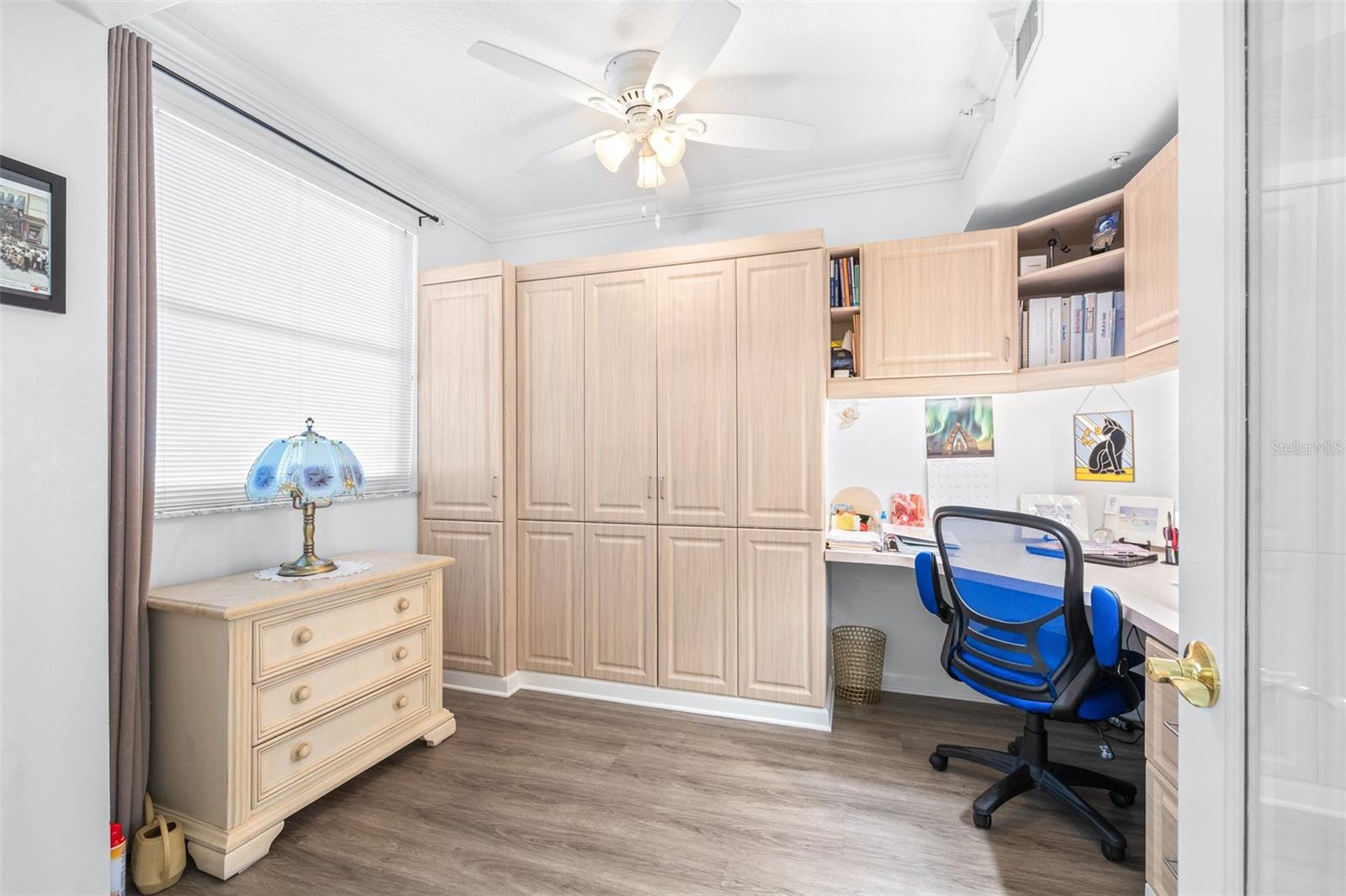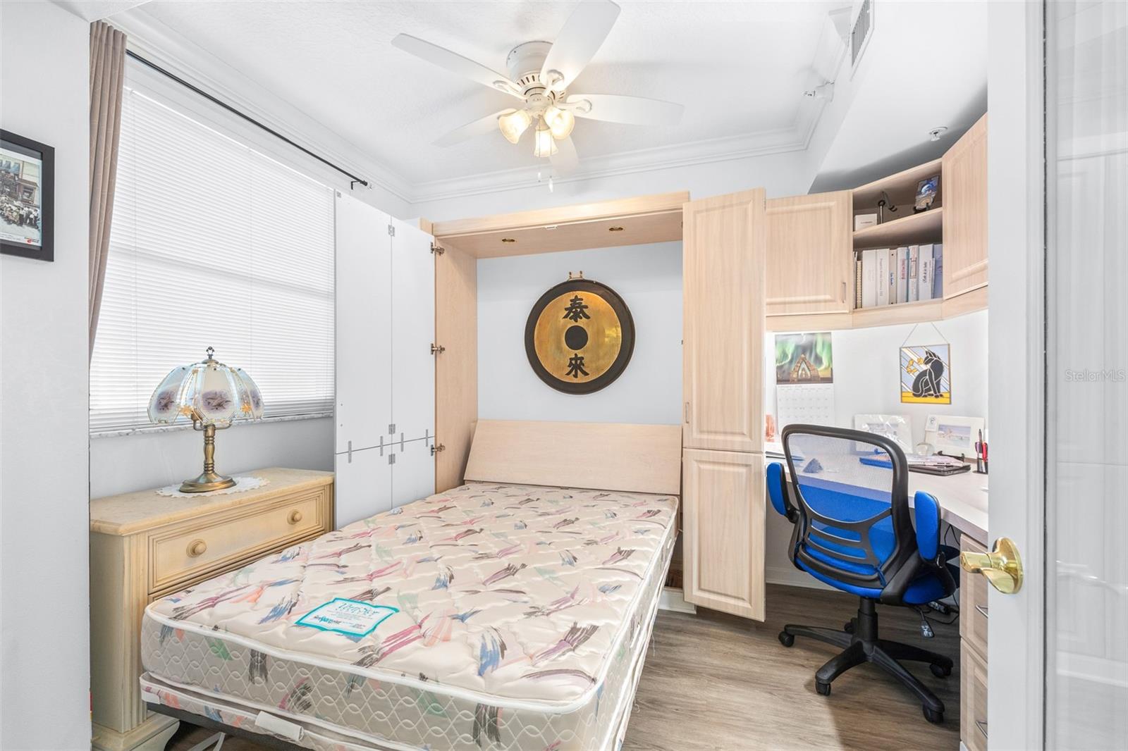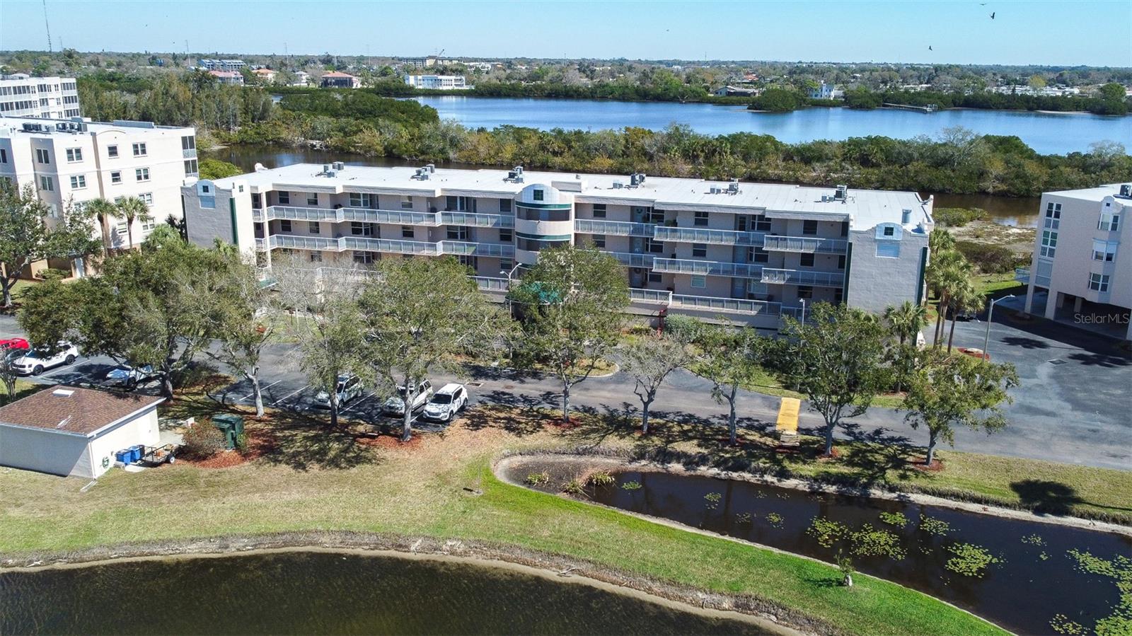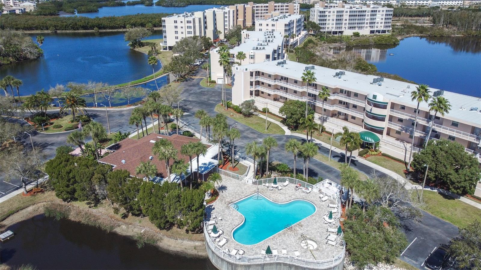 Water views, natural light, and a rare oversized 1-car garage set this beautifully maintained 3-bedroom, 2-bath end-unit apart in the gated community of Shores of Long Bayou. The kitchen features shaker cabinetry, granite countertops, pantry storage, and newer appliances. Updated flooring (2023) runs through the main living areas. The flexible third bedroom includes double glass doors, built-ins, and a Murphy bed — ideal for guests or a home office. Major updates include HVAC (2019), water heater (2019), updated electrical panel, motorized hurricane shutters (2022), and a new garage door motor (2025). Elevator access, same-floor storage, and additional covered parking add everyday convenience. Additional features include crown molding, impact windows and doors, water softener, washer/dryer, and generous storage space. Shores of Long Bayou offers a manned gate, two pools, clubhouse, fitness center, and walking trails — all just minutes to beaches, shopping, and medical facilities. Thoughtfully updated and move-in ready, this home reflects careful ownership with major systems addressed, added storm protection, and valuable upgrades already in place. Furniture may be available upon request.