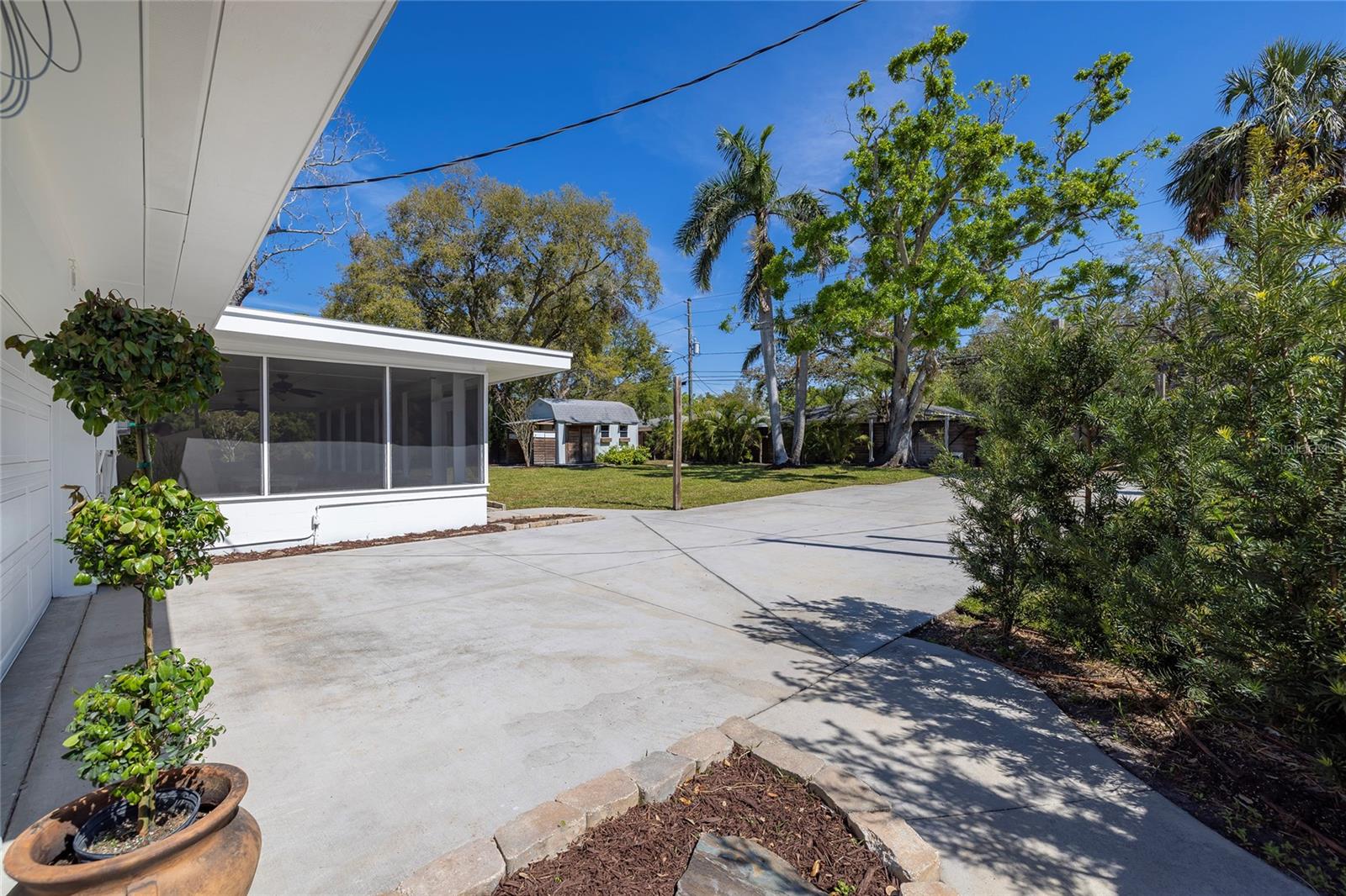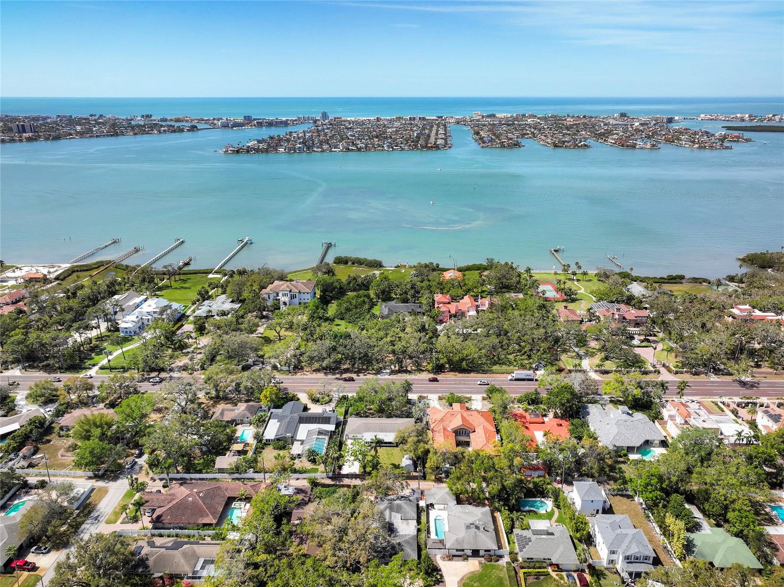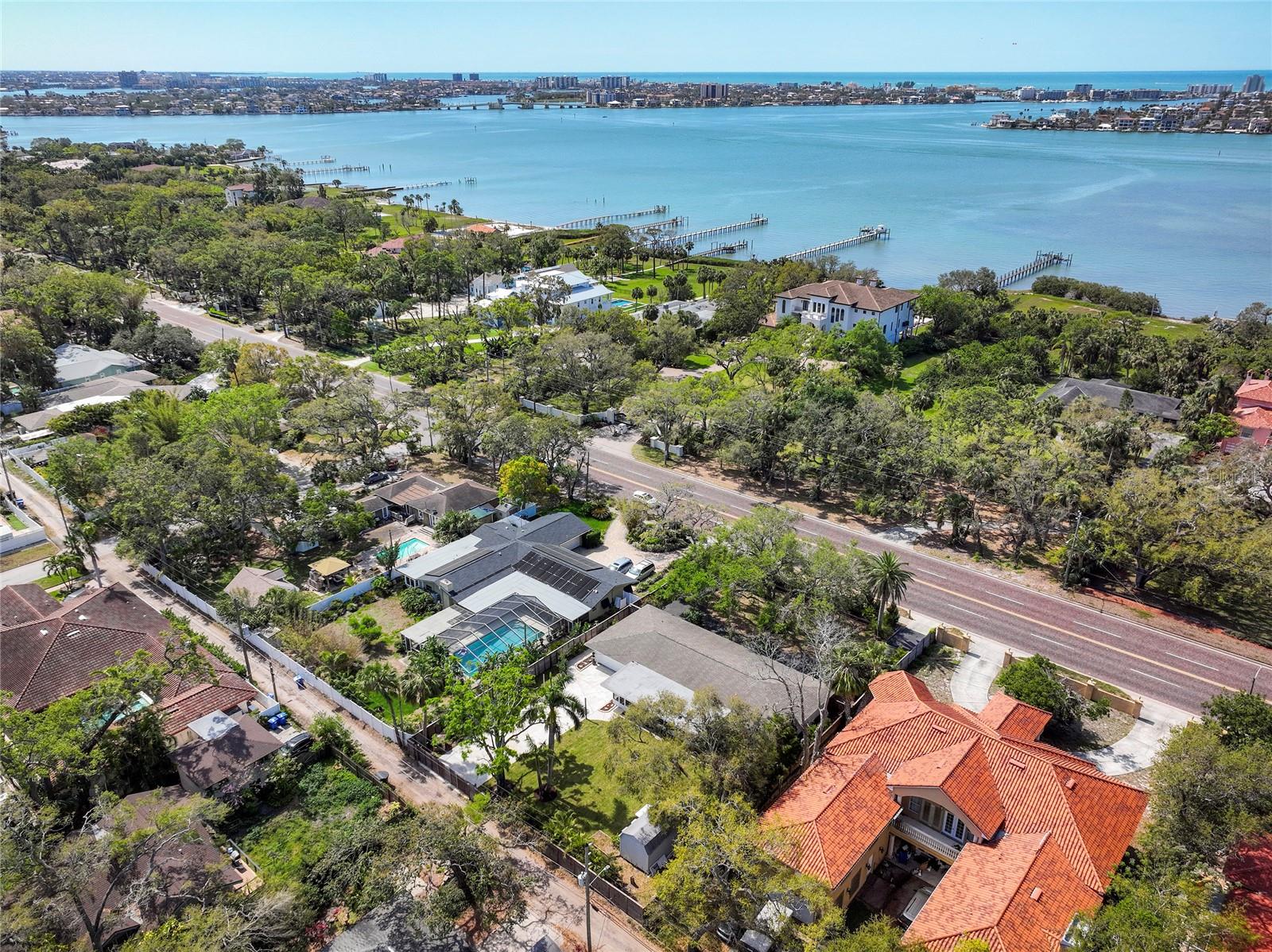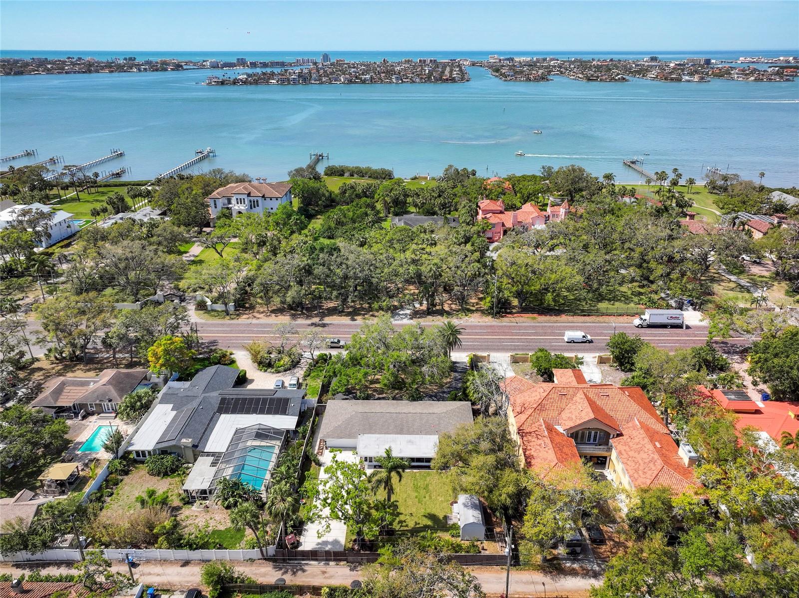 STUNNING UPDATED home in the highly sought-after “Jungle Prada” neighborhood, one mile North of the Treasure Island Causeway to GULF BEACHES with over 3,000 sf of indoor and outdoor living space. Privacy abounds in this exquisite home, situated on almost half an acre on a brick-paved street with mature landscape that adds privacy. Entering from the rear alley through your private gate, which opens with just a push of a remote into the custom 6 ½” high fenced yard, which leads to the rear-facing 2-car garage & long wide concrete driveway, or enter from Park St to the front circular driveway. The electric gated alleyway entrance has been newly updated to be electric within the last two years; the electric parts are warranted and can be accessed with the keypad, app, or remotes. Ample space for parking an RV or boat. The updated kitchen is a chef’s delight & boasts a gas range, new quartz countertops, a new sink, and some newly added cabinets & a new disposal. NEW Luxury vinyl wood flooring & fresh paint throughout. The great room open floor plan includes living room & dining room areas, an open kitchen & French doors leading to the 429-sf screened patio with serene views of the lush private backyard & is perfect for gatherings, featuring a cozy electric fireplace. The owner’s suite is a serene retreat, offering a spacious walk-in closet updated ensuite bathroom with a luxurious free-standing soaking tub, and a separate shower with herringbone white marble. The Primary & Guest baths have marble flooring, marble countertops & high-end Kohler Purist line polished-nickel finishes, and Pottery Barn cabinetry. The large, fenced backyard has new grass and a storage shed that would make a perfect workshop for a she/he shed or to store all of your bicycles, kayaks, surf/paddle boards & the yard has room for a pool. NEW electrical panel. New doors (except back porch French doors), new plumbing fixtures, security system with 5 cameras, Nest doorbell, crown molding in most spaces except the guest bathroom, and coved ceiling in the living room. New inside laundry closet with new front loader washer & Dryer. New light fixtures throughout everywhere except back porch fans, including Serena and Lilly in the primary bedroom & Anthropologie guest room. Two electric fireplaces with remotes in the living room & primary bedroom, which have heat and color options. Updated irrigation system pump, valves, and sprinkler heads. coved (curved) ceilings in the large living room. Best of all… not in a high-risk flood zone (zone X500). Easy access to the Pinellas Trail, downtown St. Petersburg, Tampa, and Clearwater.
