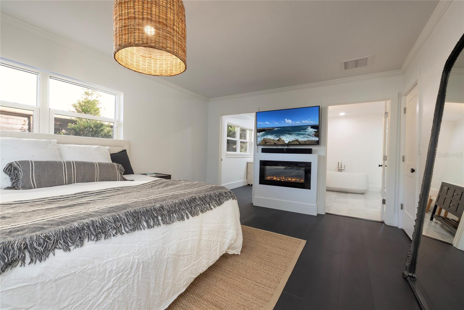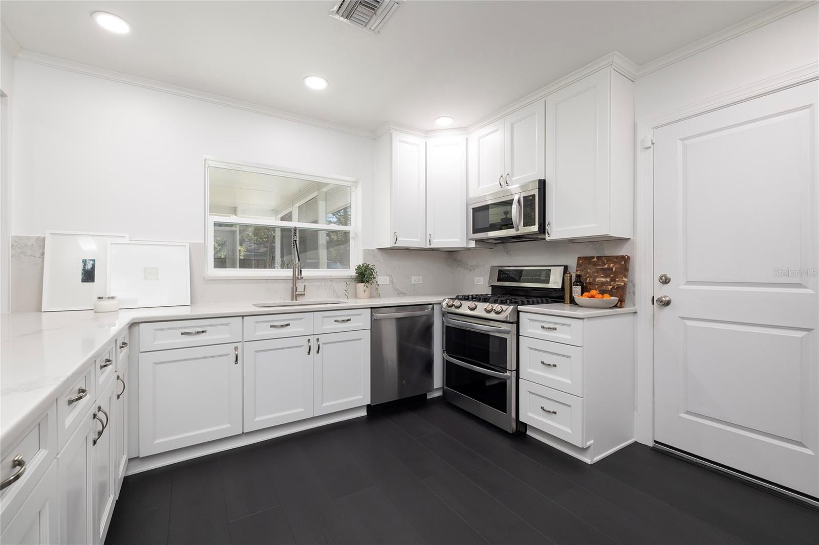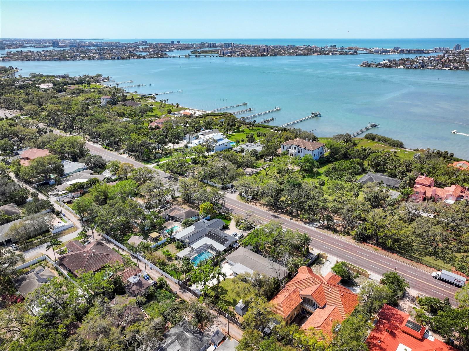 STUNNING UPDATED home in the highly sought-after “Jungle Prada” neighborhood, one mile North of the Treasure Island Causeway to GULF BEACHES with over 3,000 sf of indoor and outdoor living space. Privacy abounds in this exquisite home, situated on almost half an acre on a brick-paved street with mature landscape that adds privacy. Entering from the rear alley through your private gate, which opens with just a push of a remote into the custom 6 ½” high fenced yard, which leads to the rear-facing 2-car garage & long wide concrete driveway, or enter from Park St to the front circular driveway. The electric gated alleyway entrance has been newly updated to be electric within the last two years; the electric parts are warranted and can be accessed with the keypad, app, or remotes. Ample space for parking an RV or boat. The updated kitchen is a chef’s delight & boasts a gas range, new quartz countertops, a new sink, and some newly added cabinets & a new disposal. NEW Luxury vinyl wood flooring & fresh paint throughout. The great room open floor plan includes living room & dining room areas, an open kitchen & French doors leading to the 429-sf screened patio with serene views of the lush private backyard & is perfect for gatherings, featuring a cozy electric fireplace. The owner’s suite is a serene retreat, offering a spacious walk-in closet updated ensuite bathroom with a luxurious free-standing soaking tub, and a separate shower with herringbone white marble. The Primary & Guest baths have marble flooring, marble countertops & high-end Kohler Purist line polished-nickel finishes, and Pottery Barn cabinetry. The large, fenced backyard has new grass and a storage shed that would make a perfect workshop for a she/he shed or to store all of your bicycles, kayaks, surf/paddle boards & the yard has room for a pool. NEW electrical panel. New doors (except back porch French doors), new plumbing fixtures, security system with 5 cameras, Nest doorbell, crown molding in most spaces except the guest bathroom, and coved ceiling in the living room. New inside laundry closet with new front loader washer & Dryer. New light fixtures throughout everywhere except back porch fans, including Serena and Lilly in the primary bedroom & Anthropologie guest room. Two electric fireplaces with remotes in the living room & primary bedroom, which have heat and color options. Updated irrigation system pump, valves, and sprinkler heads. coved (curved) ceilings in the large living room. Best of all… not in a high-risk flood zone (zone X500). Easy access to the Pinellas Trail, downtown St. Petersburg, Tampa, and Clearwater.