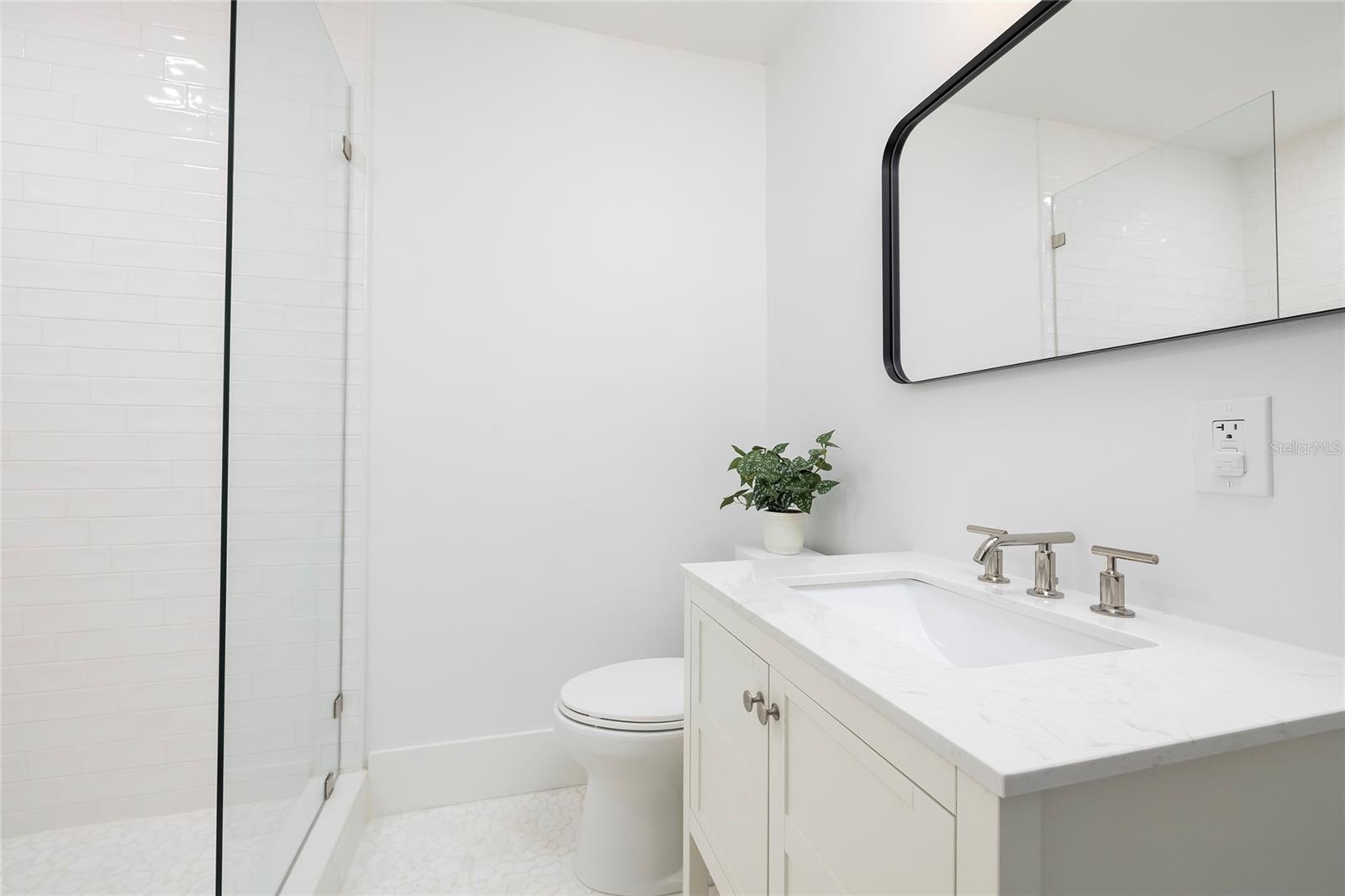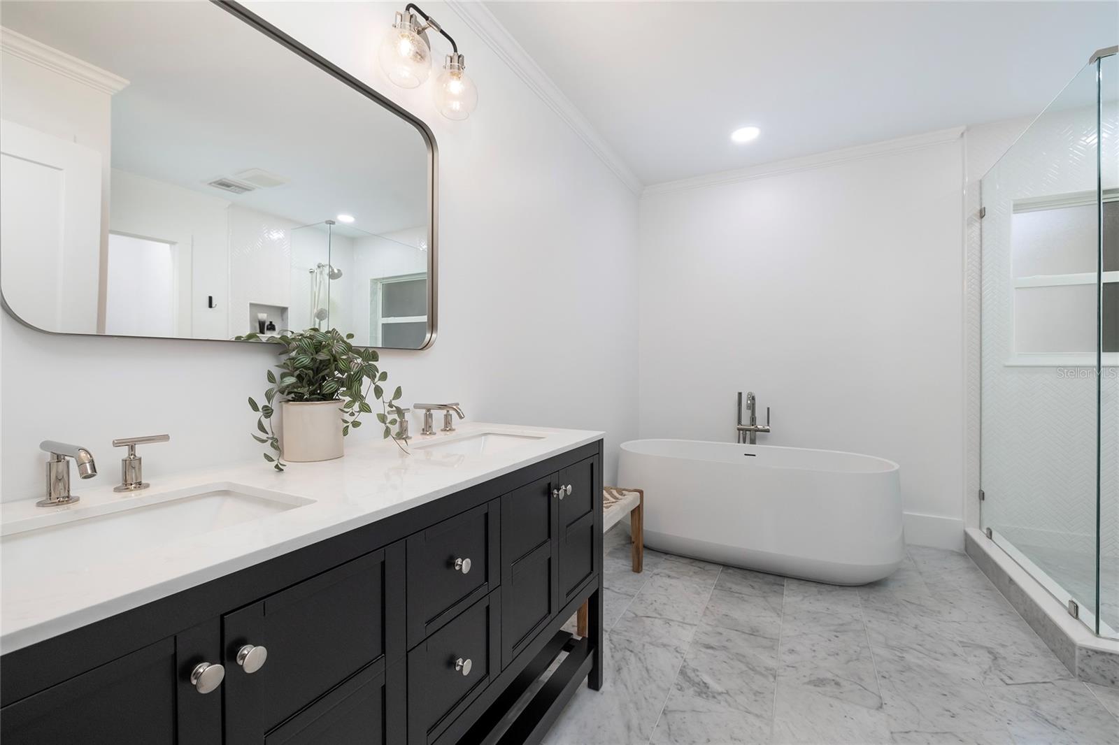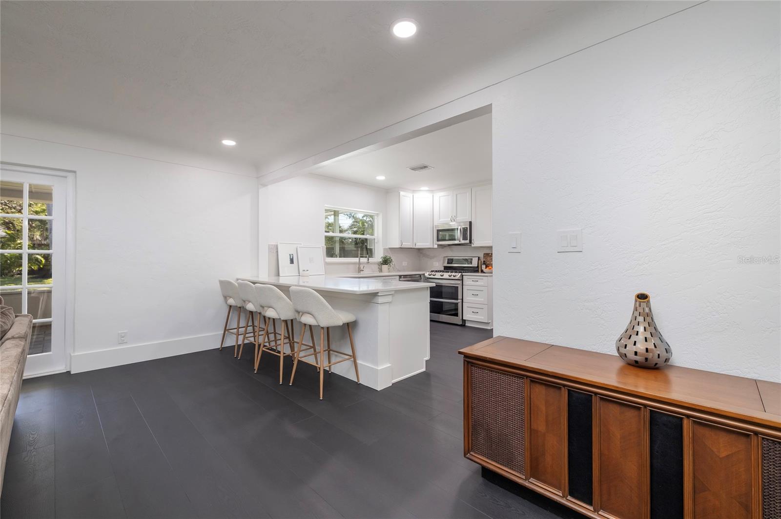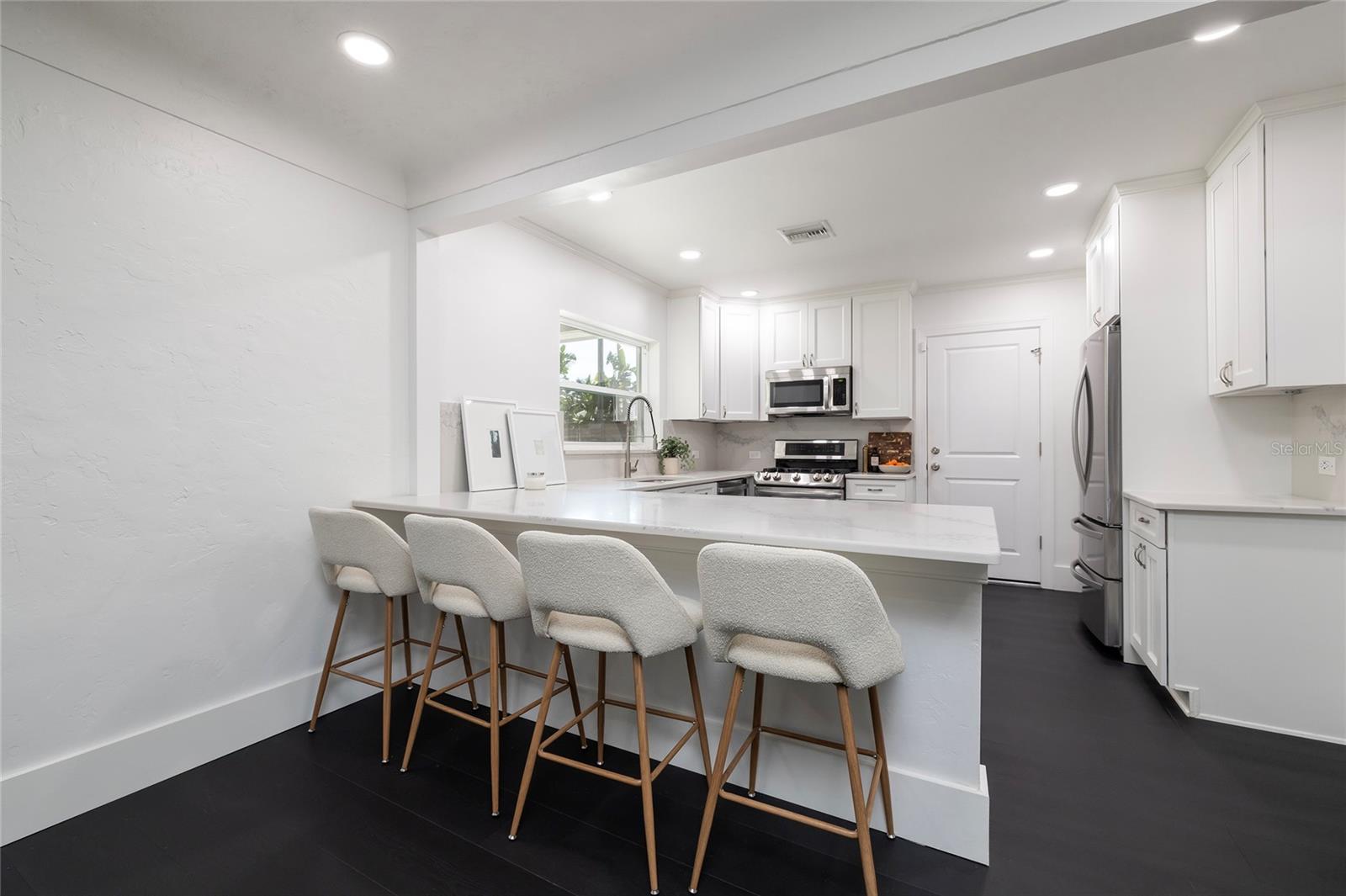 STUNNING UPDATED home in the highly sought-after “Jungle Prada” neighborhood, one mile North of the Treasure Island Causeway to GULF BEACHES with over 3,000 sf of indoor and outdoor living space. Privacy abounds in this exquisite home, situated on almost half an acre on a brick-paved street with mature landscape that adds privacy. Entering from the rear alley through your private gate, which opens with just a push of a remote into the custom 6 ½” high fenced yard, which leads to the rear-facing 2-car garage & long wide concrete driveway, or enter from Park St to the front circular driveway. The electric gated alleyway entrance has been newly updated to be electric within the last two years; the electric parts are warranted and can be accessed with the keypad, app, or remotes. Ample space for parking an RV or boat. The updated kitchen is a chef’s delight & boasts a gas range, new quartz countertops, a new sink, and some newly added cabinets & a new disposal. NEW Luxury vinyl wood flooring & fresh paint throughout. The great room open floor plan includes living room & dining room areas, an open kitchen & French doors leading to the 429-sf screened patio with serene views of the lush private backyard & is perfect for gatherings, featuring a cozy electric fireplace. The owner’s suite is a serene retreat, offering a spacious walk-in closet updated ensuite bathroom with a luxurious free-standing soaking tub, and a separate shower with herringbone white marble. The Primary & Guest baths have marble flooring, marble countertops & high-end Kohler Purist line polished-nickel finishes, and Pottery Barn cabinetry. The large, fenced backyard has new grass and a storage shed that would make a perfect workshop for a she/he shed or to store all of your bicycles, kayaks, surf/paddle boards & the yard has room for a pool. NEW electrical panel. New doors (except back porch French doors), new plumbing fixtures, security system with 5 cameras, Nest doorbell, crown molding in most spaces except the guest bathroom, and coved ceiling in the living room. New inside laundry closet with new front loader washer & Dryer. New light fixtures throughout everywhere except back porch fans, including Serena and Lilly in the primary bedroom & Anthropologie guest room. Two electric fireplaces with remotes in the living room & primary bedroom, which have heat and color options. Updated irrigation system pump, valves, and sprinkler heads. coved (curved) ceilings in the large living room. Best of all… not in a high-risk flood zone (zone X500). Easy access to the Pinellas Trail, downtown St. Petersburg, Tampa, and Clearwater.