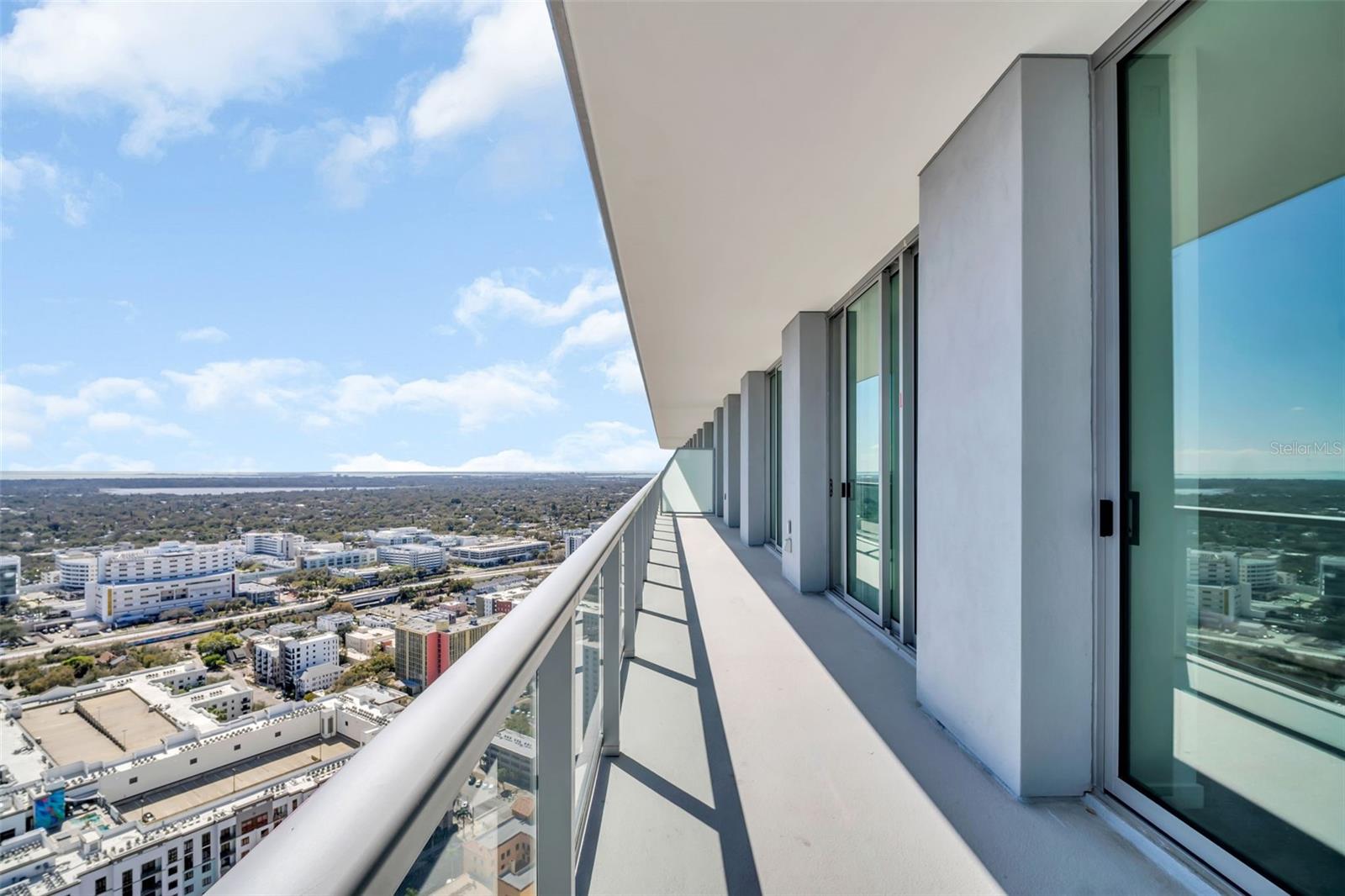 Rising from the 36th floor of the iconic 400 Central, Residence 3606 captures sweeping southeast views of Tampa Bay and the downtown skyline from one of the tower’s most elevated vantage points. From sunrise over open water to shimmering evening city lights, this three-bedroom, three-bath residence offers a rare opportunity to live high above the vibrant heart of downtown St. Petersburg while immersed in panoramic coastal vistas. Encompassing approximately 1,948 square feet of refined interior living space, the home is complemented by an extraordinary 413-square-foot full-length terrace that spans the width of the residence — creating a seamless indoor-outdoor lifestyle rarely found in a downtown tower. Floor-to-ceiling glass and expansive sliding doors flood the open-concept living and dining areas with natural light while framing uninterrupted water and skyline views. The thoughtfully designed split-bedroom floor plan offers both privacy and functionality. The spacious owner’s suite enjoys direct terrace access, a generous walk-in closet, and a spa-inspired bath featuring dual vanities, a soaking tub, and a separate glass-enclosed shower. Each guest bedroom is well proportioned and positioned for comfort, making this layout ideal for full-time living or hosting with ease. The chef’s kitchen anchors the great room and is designed for both everyday living and entertaining, offering sleek cabinetry, premium appliances, and an oversized island that maintains open sightlines to the water beyond. A dedicated parking space, valet service, and a private climate-controlled storage unit add a level of convenience and security rarely available in a premier downtown high-rise. With 2,361 total square feet including terrace space, Residence 3606 delivers scale, flow, and dramatic views at a level rarely available. 400 Central redefines luxury condominium living in downtown St. Petersburg, offering resort-style amenities including a rooftop pool and spa deck, private cabanas, state-of-the-art fitness center, residents’ lounge, concierge services, and secure access — all just steps from Central Avenue’s dining, museums, waterfront parks, and the St. Pete Pier. Elevated. Refined. Unmistakably iconic.