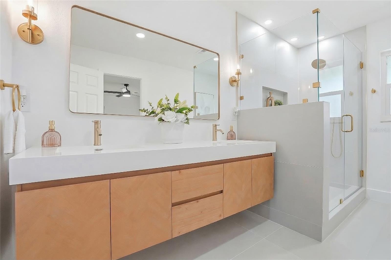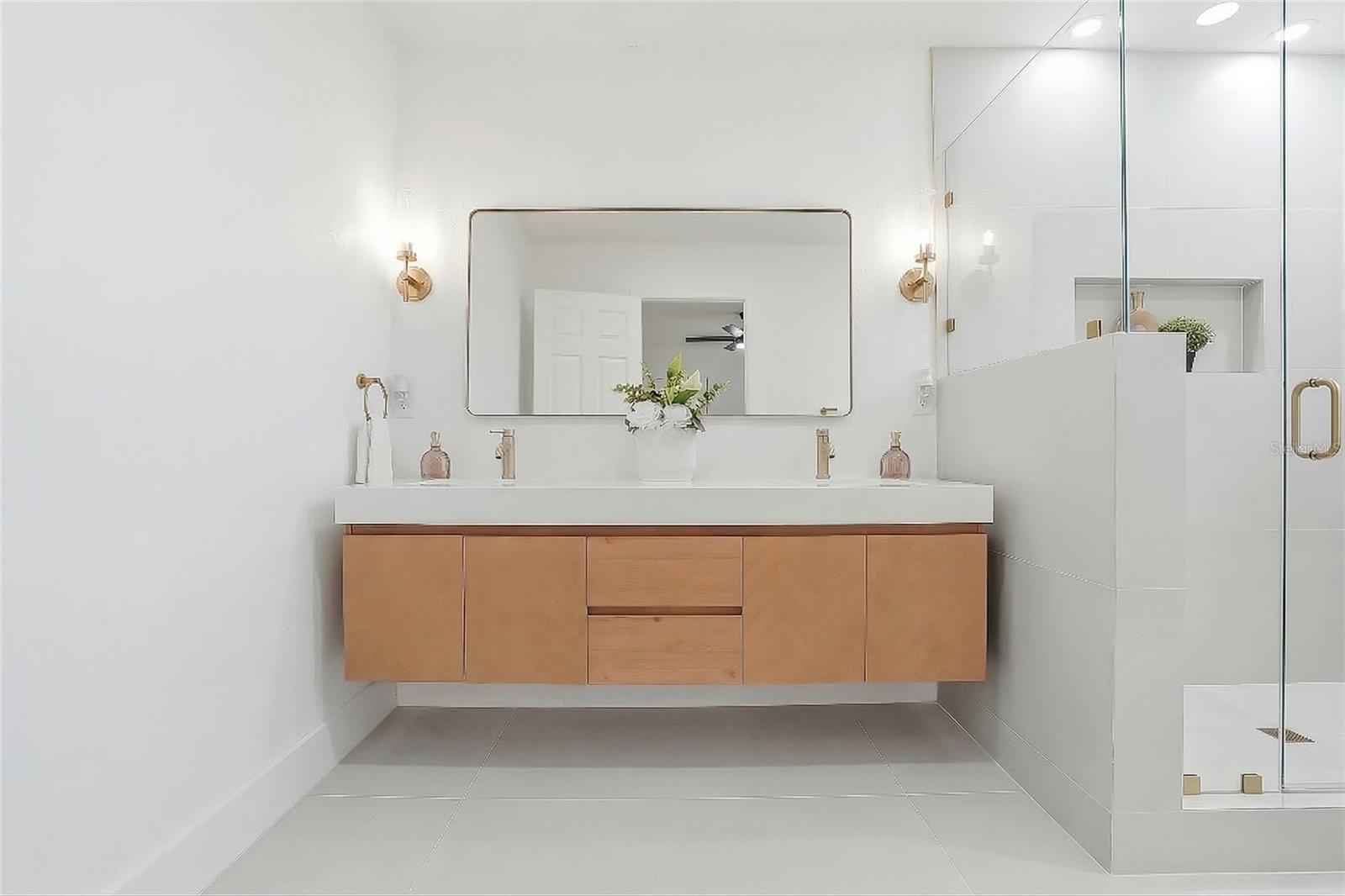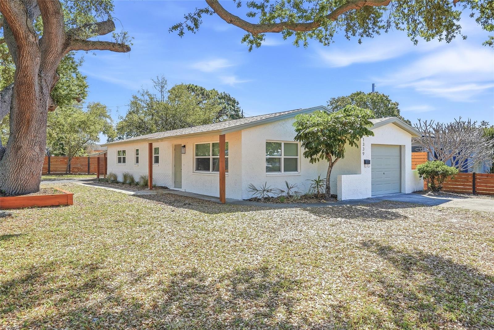 Welcome to this beautiful 3-bedroom, 2-bathroom home situated on an oversized corner lot featuring a two-car carport and a brand-new wooden privacy fence. As you arrive, the home’s decorative wooden beams along the front exterior add charm and character to the curb appeal. Step inside to an open floor plan where the living room showcases a stylish accent wall and flows seamlessly into the kitchen, creating a comfortable and functional living space. The kitchen has been fully updated with brand-new stainless steel appliances, white oak soft-close cabinetry, quartz countertops, and a convenient breakfast bar, perfect for everyday dining or entertaining. New luxury vinyl flooring runs throughout the home, providing both durability and a modern look. The primary suite offers a beautifully designed en-suite bathroom featuring dual sinks and contemporary finishes. Down the hall are two additional guest bedrooms and a sleek, modern guest bathroom. The home also includes a spacious laundry room for added convenience. For peace of mind, the roof was replaced in 2022 and the windows are brand new. This home is ideally located just minutes from Tyrone Square Mall, Central Avenue dining and entertainment, and Downtown St. Petersburg’s waterfront. Outdoor enthusiasts will appreciate nearby parks including Walter Fuller Park, Northwest Park, and Abercrombie Park, offering trails, recreation, and green space. Treasure Island and St. Pete Beach are approximately 10–15 minutes away, providing easy access to Gulf beaches, boating, and waterfront dining.