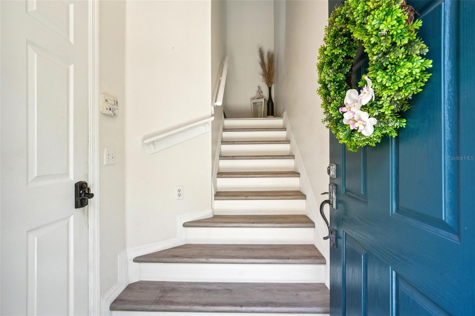 Welcome to Bay Breeze Cove, where comfort, convenience, and low-maintenance living come together in this beautifully updated end-unit townhome. Situated above a one-car garage with both a private formal entry and keyless coded access, this turnkey two-bedroom, two-bath home offers privacy and ease from the moment you arrive. Step inside and head upstairs to a bright, open living space featuring soaring cathedral ceilings and an abundance of natural light. Luxury vinyl plank flooring, replaced in 2022, flows seamlessly throughout, complemented by updated light fixtures that add a fresh, modern touch. The open-concept layout effortlessly connects the living and dining areas, creating an inviting space perfect for both everyday living and entertaining. The kitchen offers a timeless design with granite countertops, solid wood cabinetry, stainless steel appliances, a closet pantry, and a convenient built-in desk and bar seating. The split bedroom floorplan provides ideal privacy, with the spacious owner’s suite featuring a private en-suite bathroom complete with dual sinks, an updated vanity, a soaking tub and shower combination, and a separate water closet. The second bedroom is thoughtfully positioned near the guest bathroom and indoor laundry room. Recent updates include a brand new roof and gutters (2025), a new water heater (2023), fresh exterior paint (2025), and added storage shelving in the garage, providing both peace of mind and functionality. Affordable HOA fees cover exterior maintenance, building insurance, roof, lawn care, pest control, property management, and access to the community pool. Residents also enjoy a welcoming, pet-friendly environment with a gated dog park and a spacious outdoor pool area perfect for relaxing or gathering with neighbors. This is one of St. Pete's most connected locations, just minutes from 4th Street's dining scene, downtown St. Petersburg, Gulf Coast beaches, and Tampa International Airport. With quick access to I-275, Gandy Boulevard, and downtown St. Petersburg, this home places you right in the heart of it all while still offering a quiet, community feel. This is the perfect opportunity to enjoy a move-in ready home with style, updates, and an unbeatable location.