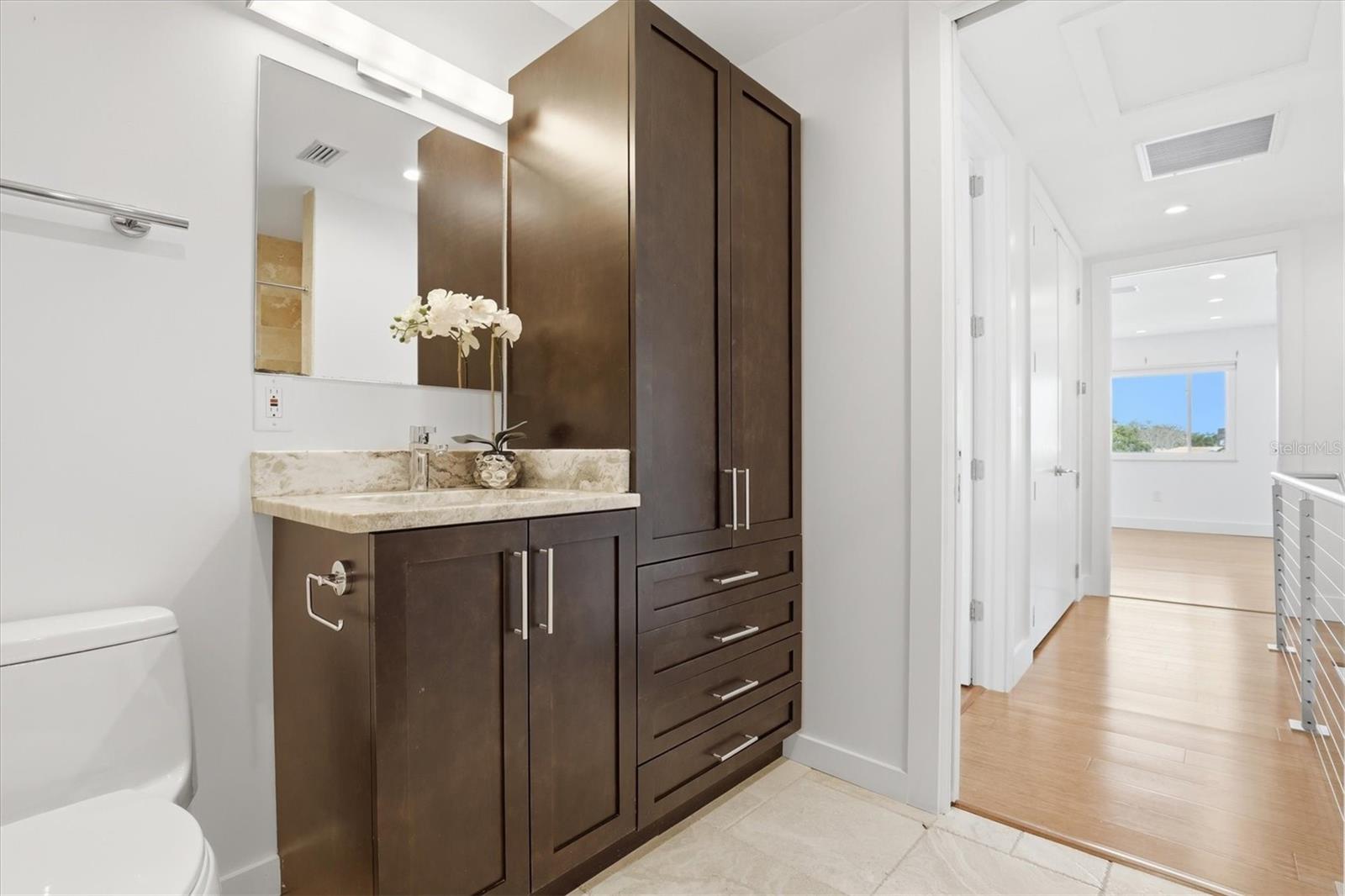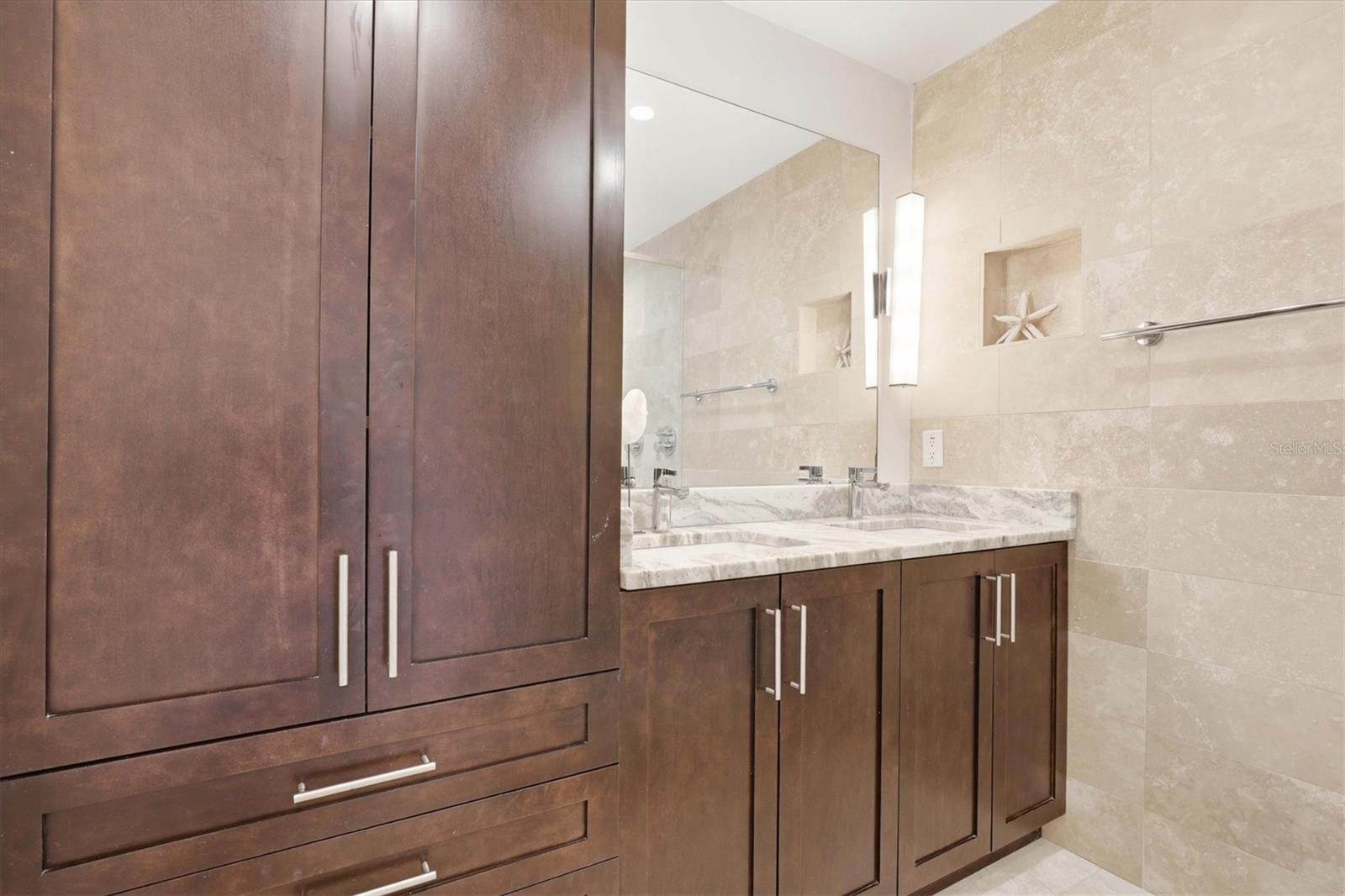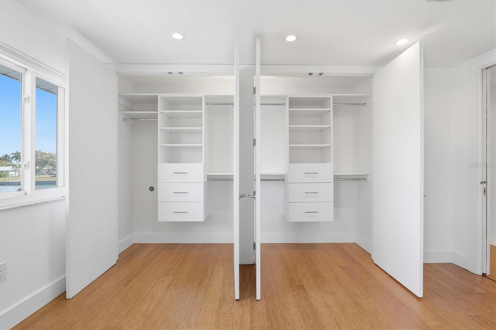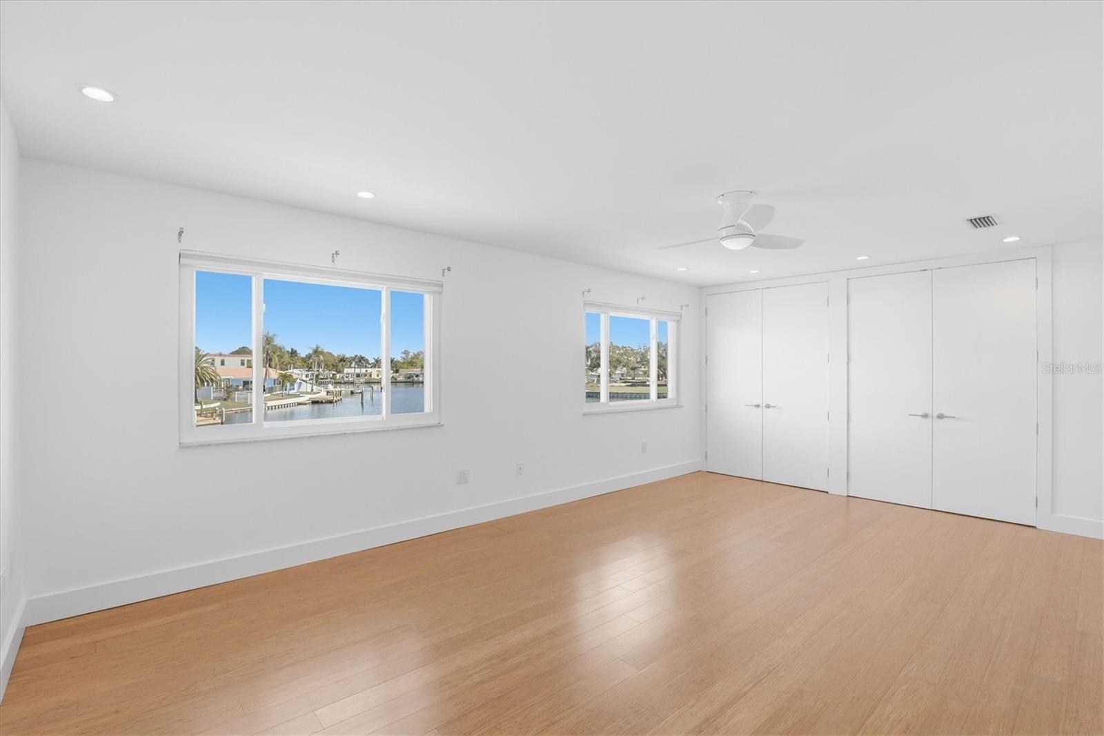 One or more photo(s) has been virtually staged. View! View! View! Direct Waterfront Living in St. Petersburg! Sit back, relax, and enjoy breathtaking direct water views from most every room in this beautifully redesigned and updated waterfront townhome. Enter through your private gated courtyard featuring custom pavers—perfect for entertaining, grilling, or simply relaxing with a good book—before stepping into this upscale waterfront townhome. From the moment you walk through the front door, you are welcomed by stunning water views, elegant travertine flooring, and a striking marina-inspired stainless steel cable staircase. The open floor plan seamlessly connects the spacious kitchen, living, and dining areas, all designed to capture the incredible waterfront setting. Just beyond the living area is a custom enclosed lanai (not included in the square footage) featuring windows and its own portable A/C, creating the perfect space to unwind while enjoying daily sightings of dolphins, manatees, jumping fish, and passing boats right from your own waterfront lanai. This home has been thoughtfully updated and is truly move-in ready, featuring new appliances, washer and dryer, and beautifully updated custom cabinetry in both the kitchen and laundry area with convenient pull-out drawers for added functionality. Upstairs, the primary retreat offers a generous bedroom with bamboo flooring, dual custom closets with pull-outs, shelving, and abundant storage—plus mesmerizing direct water views that greet you each morning. The primary bath suite showcases travertine floors and a beautifully designed glass shower with seat, rain showerhead, dual controls, handheld shower, and built-in storage niches with tiled walls from floor to ceiling. The space also features dual vanities and custom built-in cabinetry offering generous linen and additional storage. The guest bedroom, also featuring bamboo floors and a generous closet, is separated by a convenient linen/storage closet and offers flexibility as a second bedroom, home office, or both. The guest bath includes tiled walls, a tub-shower combination with built-in storage shelves, a custom vanity with additional storage, and travertine flooring. Recent improvements include A/C (2019), tankless water heater (2022), lanai enclosure with solar protective window tint (2023), and new custom kitchen and laundry cabinetry with pull-out drawers, along with refrigerator, stove, dishwasher, washer, and dryer (2025). Ideally located just minutes to Downtown St. Petersburg and the St. Pete Pier, along with Mangrove Bay and Cypress Links Golf Courses, Walter Fuller Park and Sports Complex, Speer YMCA, the Historic Kenwood District, Tropicana Field, Vinoy Golf Club, and more. Mariner’s Pass is a waterfront community offering two pools and a mix of waterfront and non-waterfront homes with an HOA that covers water, sewer, trash, cable, internet, exterior building insurance, building flood insurance, roof, exterior painting, lawn care, and landscaping. Whether you are looking for a full-time waterfront residence or a weekend retreat, this one is truly ready to enjoy. Your Waterfront Lifestyle Awaits!